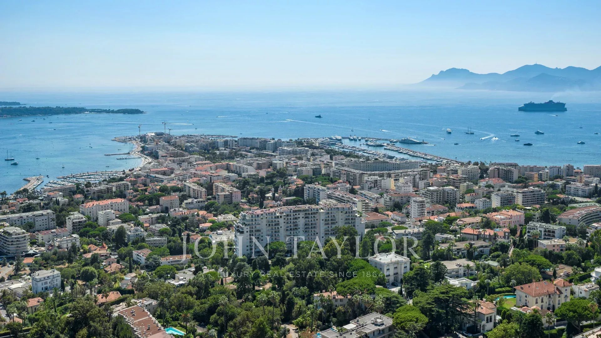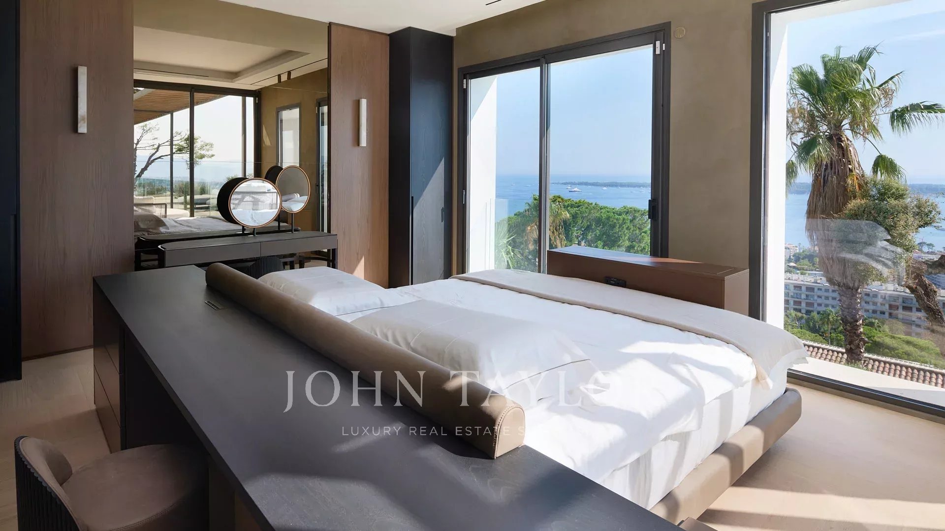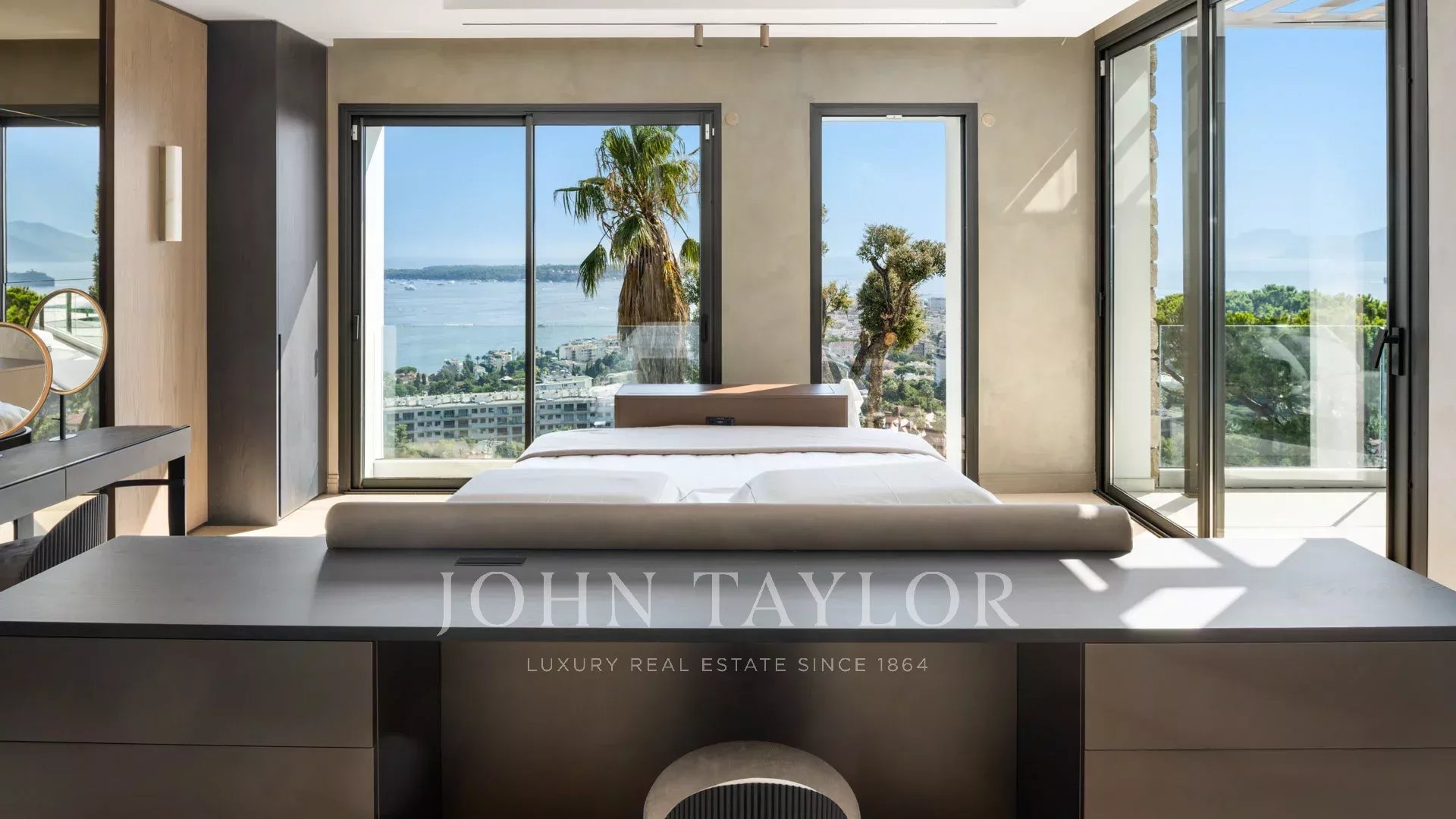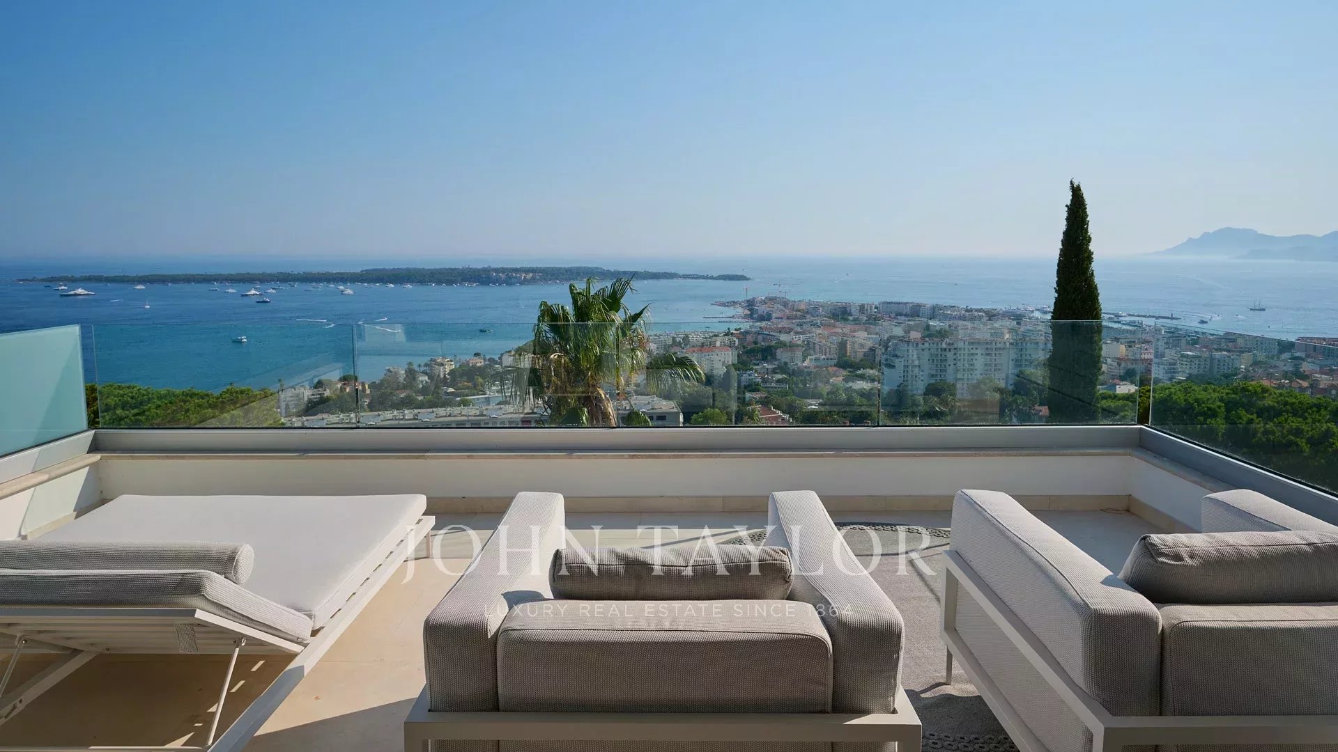 Vila s obytnou plochou 550 m² se může pochlubit sofistikovaným interiérem a nerušeným výhledem na Canneský záliv a Lérinské ostrovy, který zaručuje úchvatná panoramata.