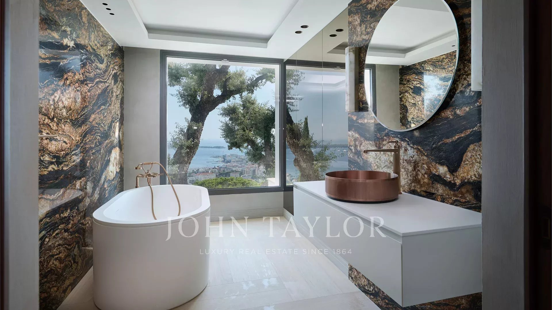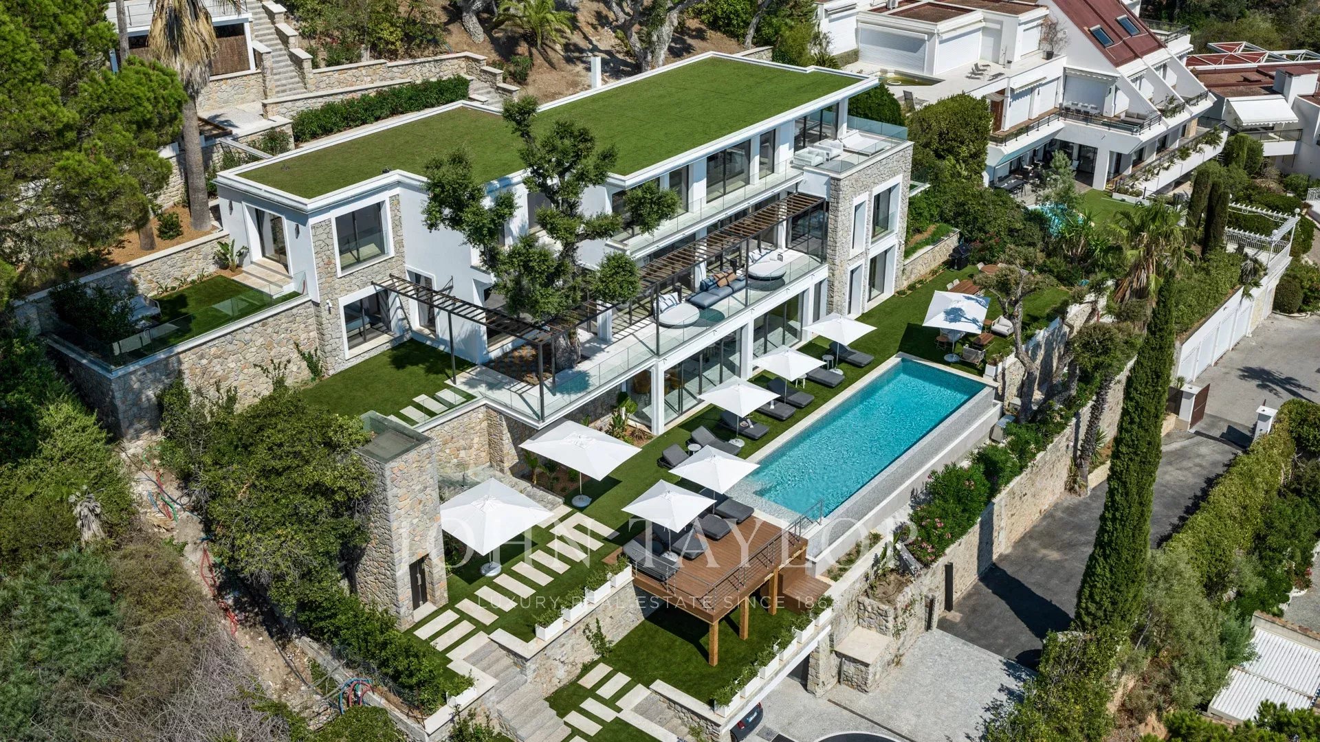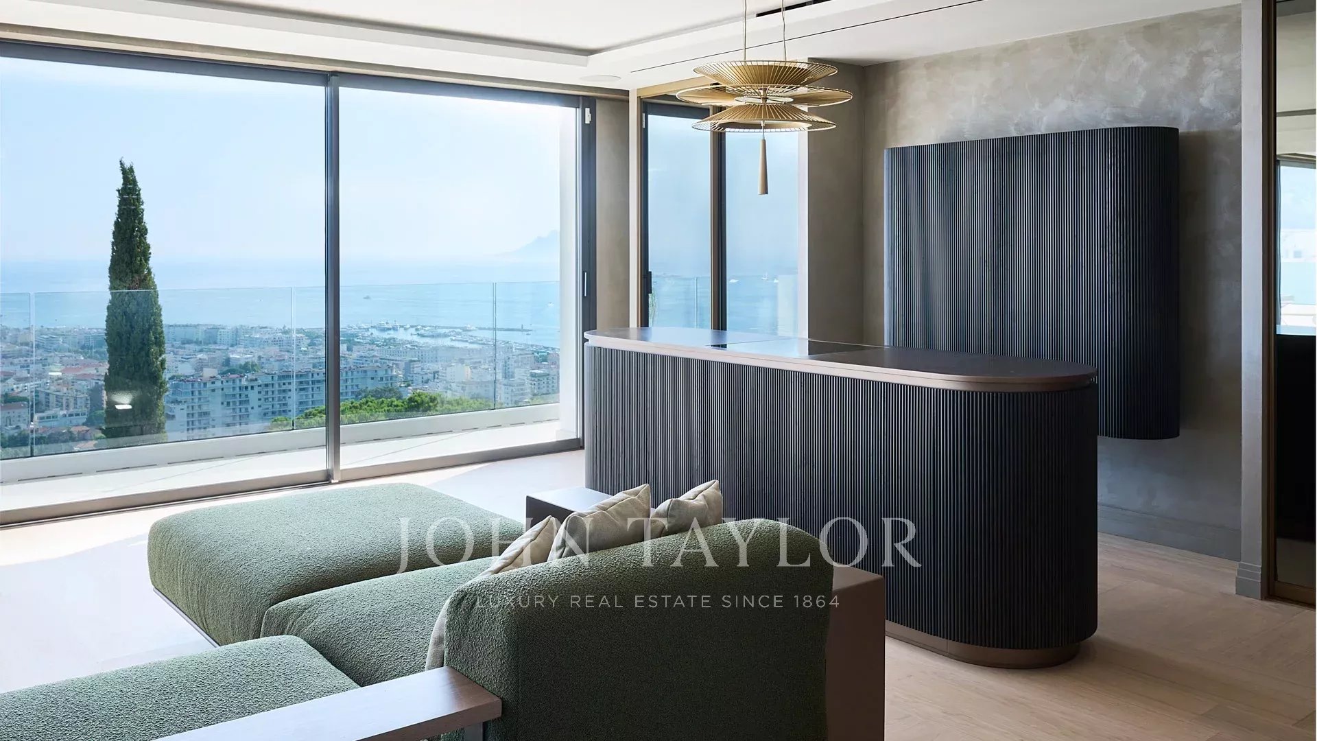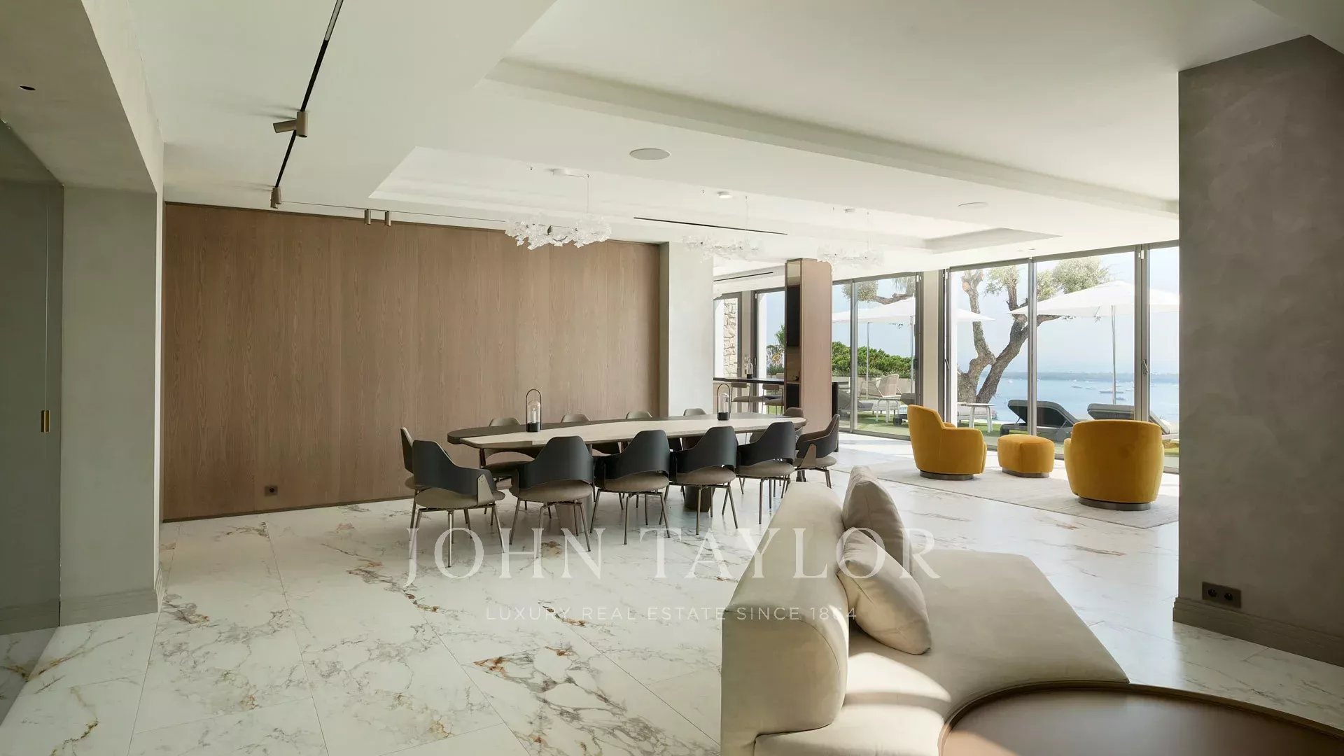 Vila s obytnou plochou 550 m² se může pochlubit sofistikovaným interiérem a nerušeným výhledem na Canneský záliv a Lérinské ostrovy, který zaručuje úchvatná panoramata.