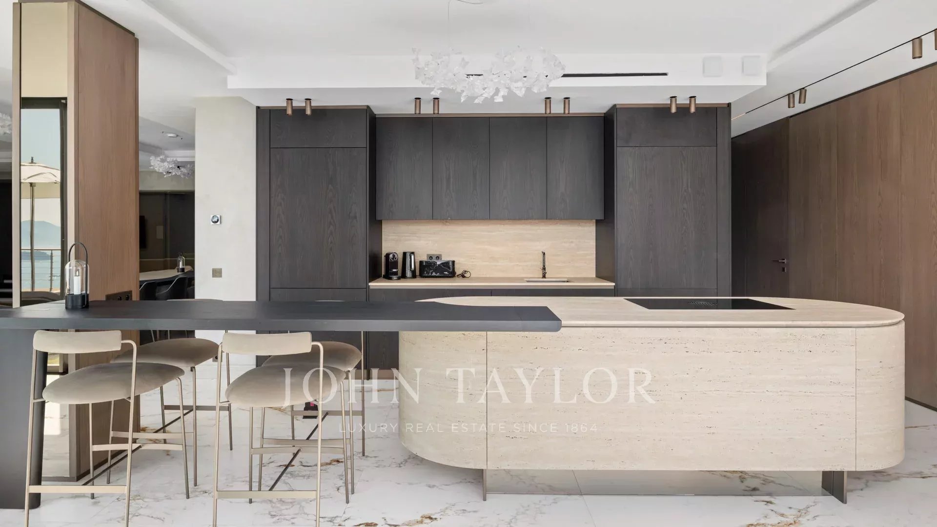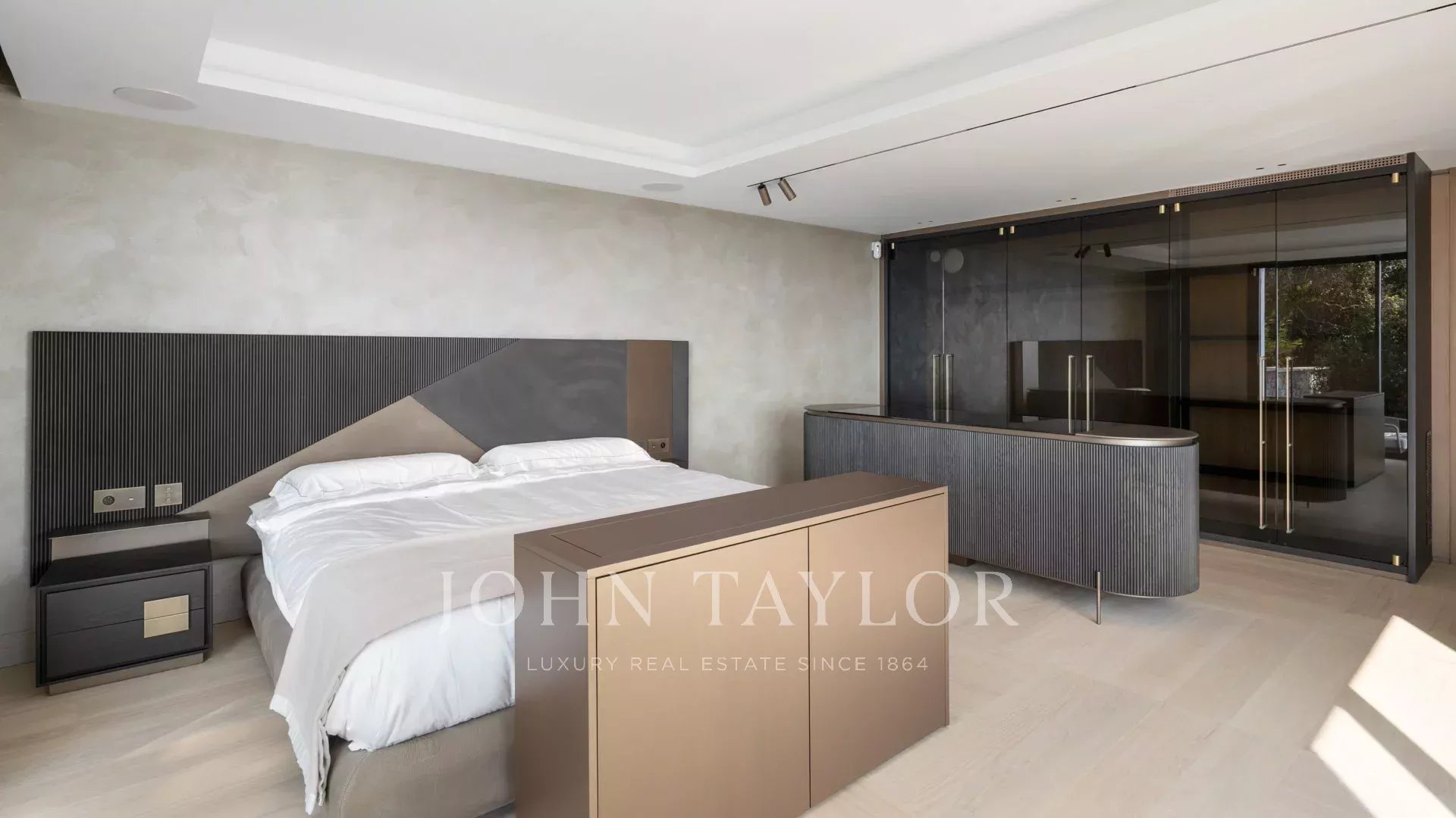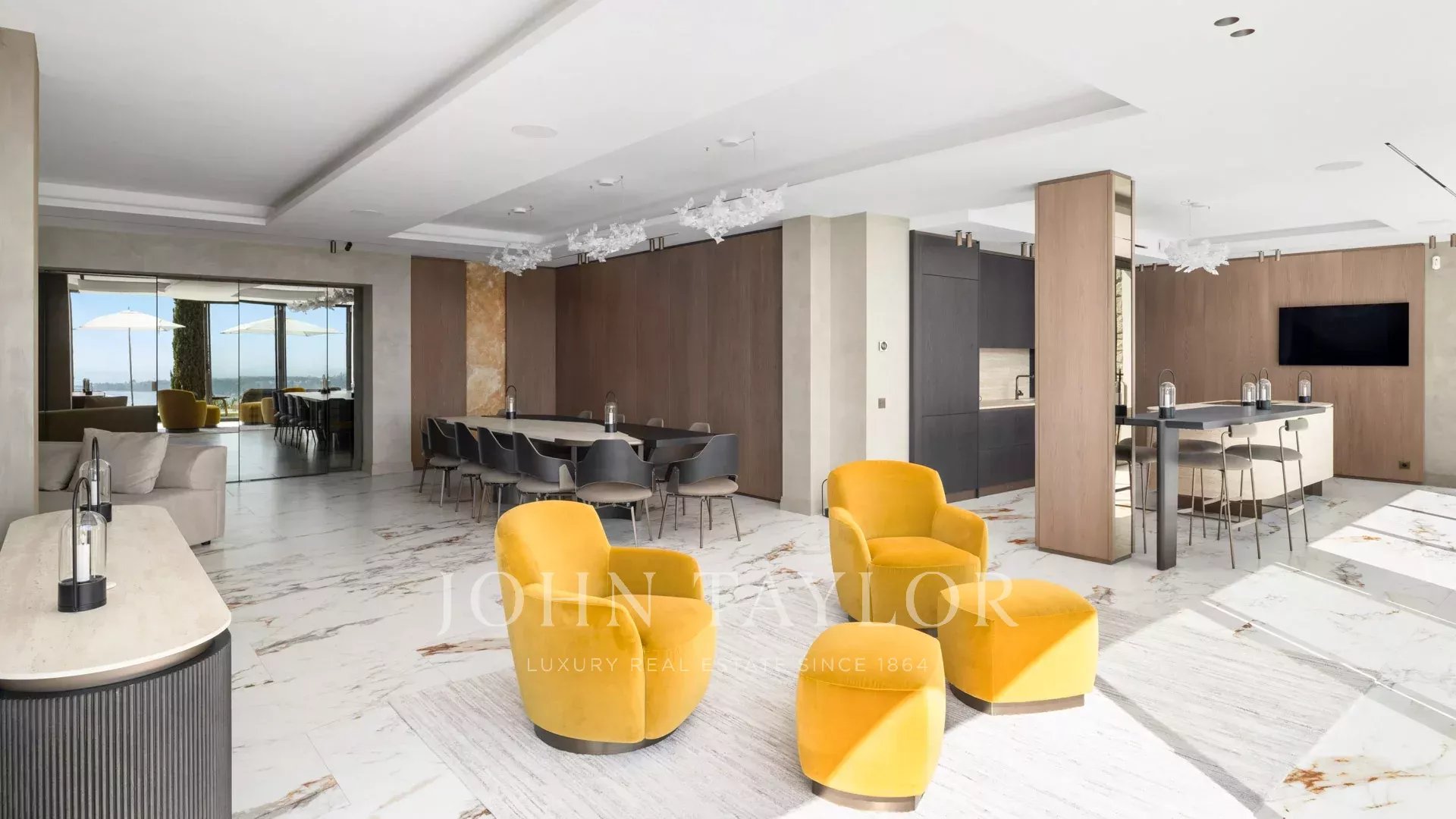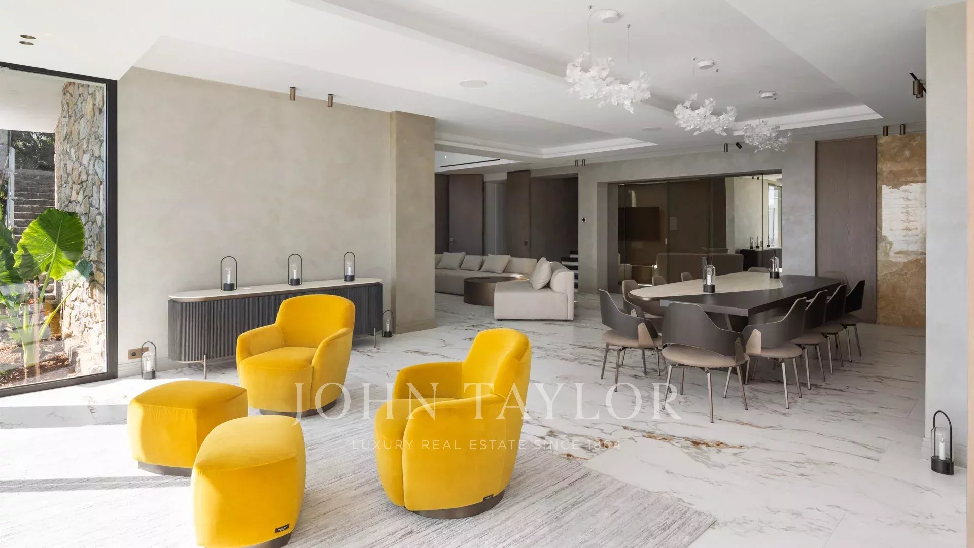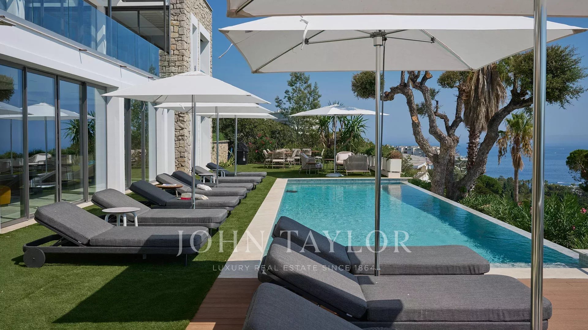 Vila s obytnou plochou 550 m² se může pochlubit sofistikovaným interiérem a nerušeným výhledem na Canneský záliv a Lérinské ostrovy, který zaručuje úchvatná panoramata.