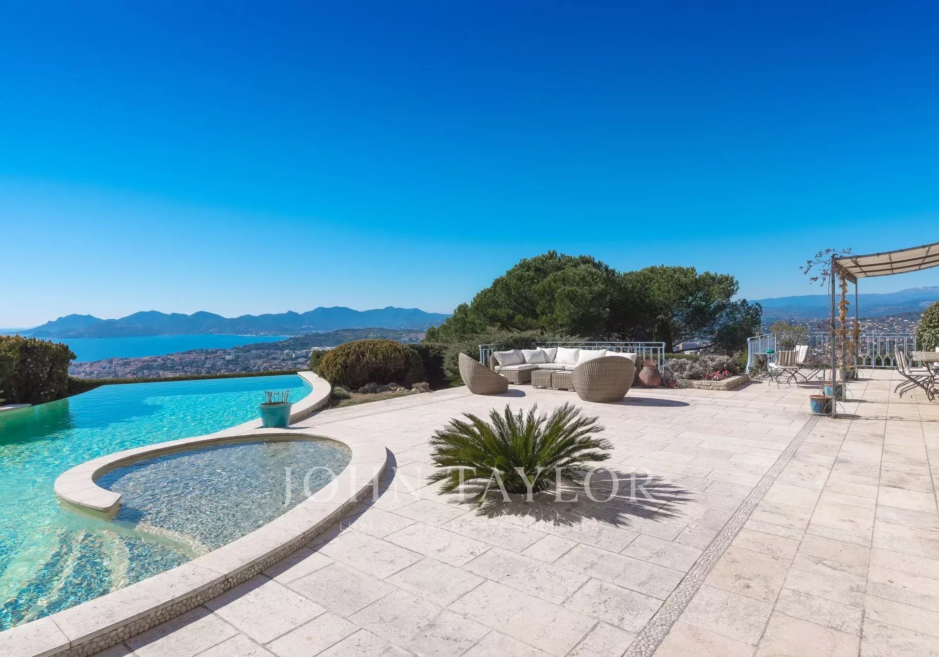 Krásná, velká, klimatizovaná vila s obytnou plochou 350 m2 na pozemku o rozloze 2 000 m2 s panoramatickým výhledem na Canneský záliv a masiv Esterel.