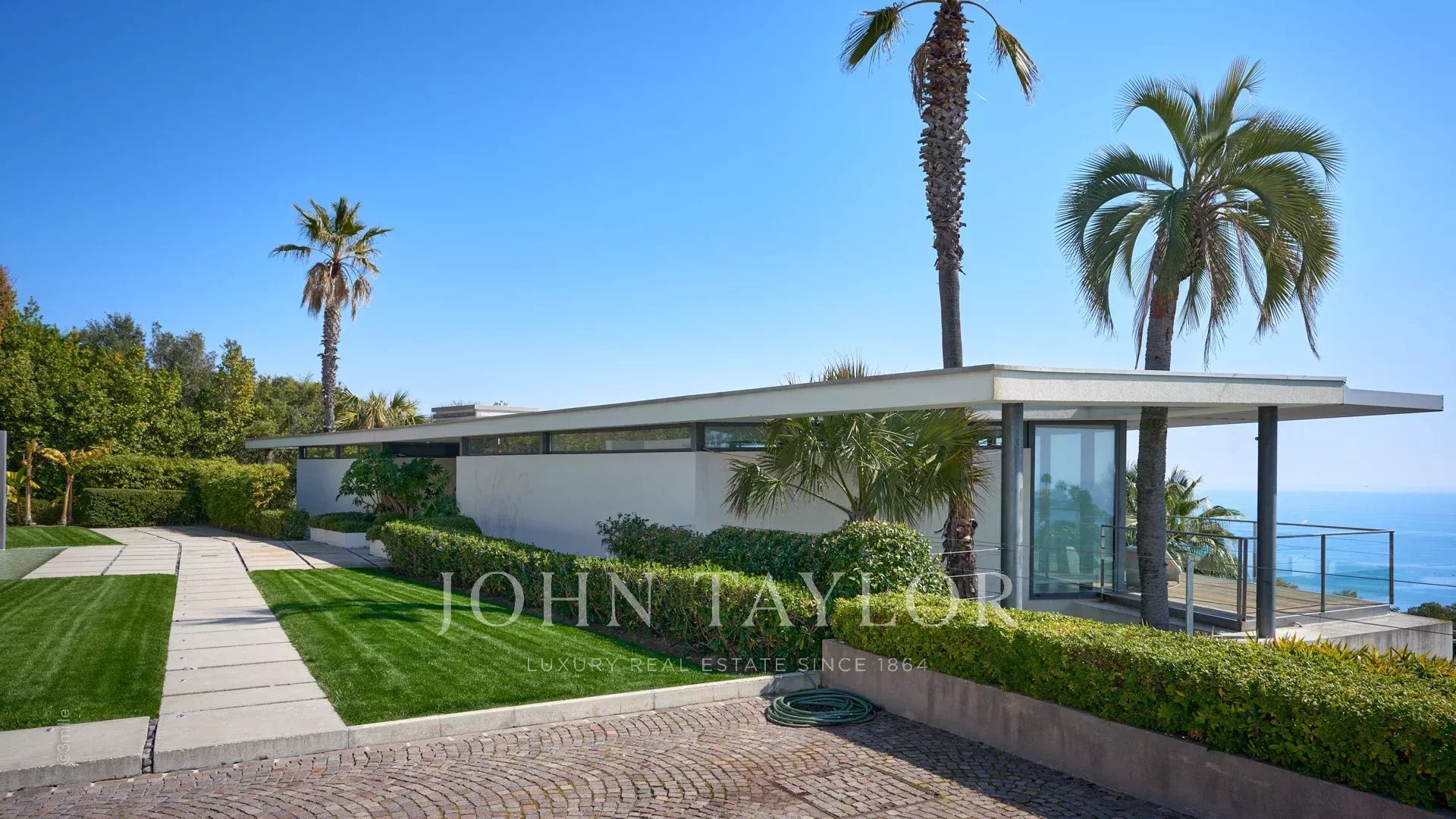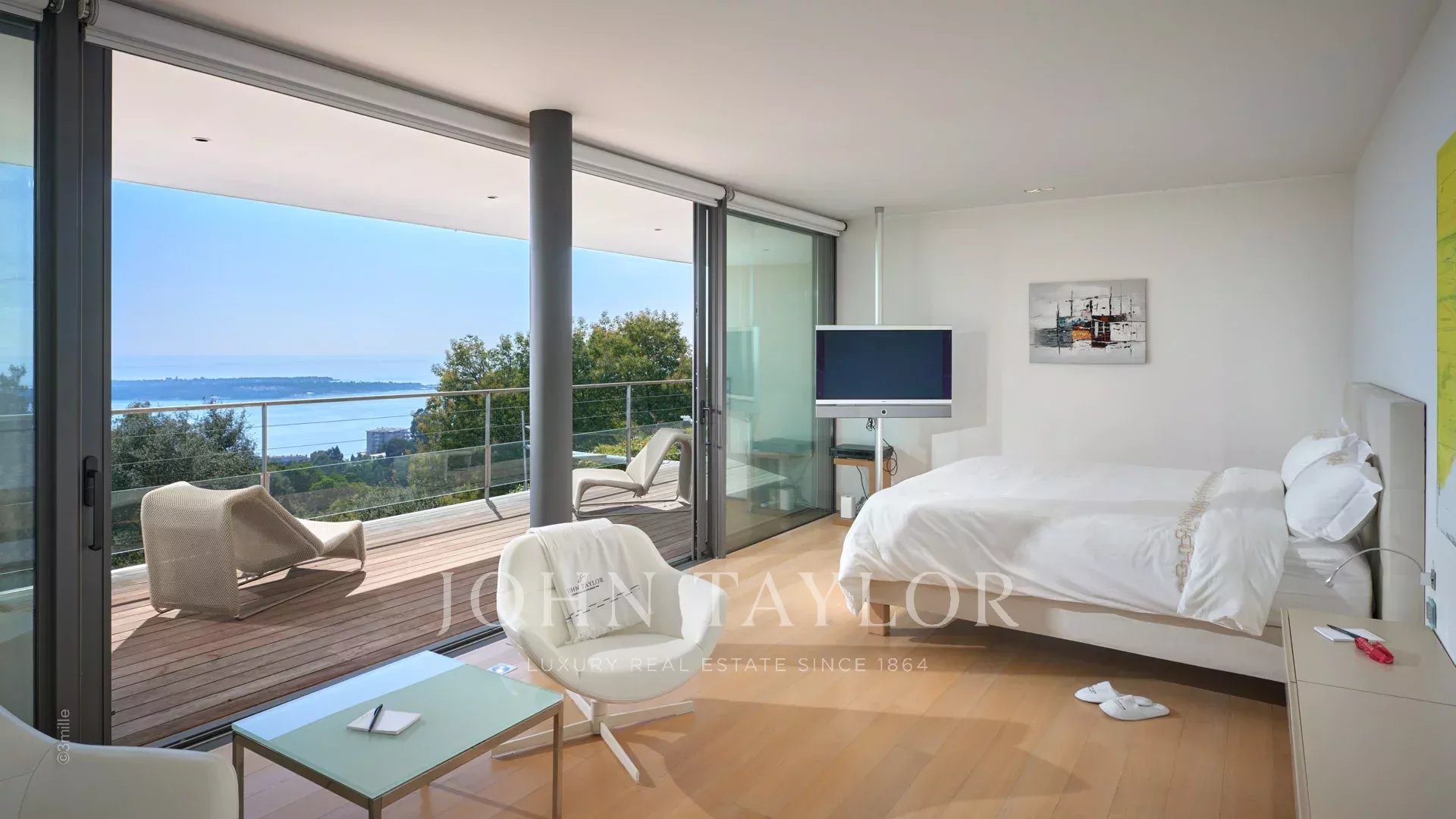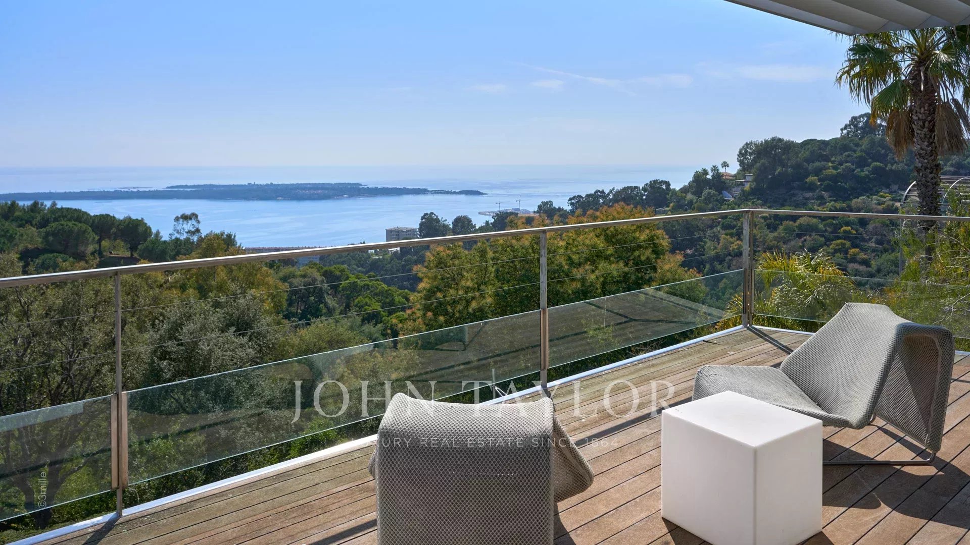 Vítejte v této vynikající moderní vile, moderní oáze o rozloze 800 m2, která se rozkládá na 4 podlažích, s výtahem, v srdci rozsáhlého pozemku o rozloze 6 000 m2. Tato klimatizovaná rezidence nabízí luxusní zážitek s úchvatným panoramatickým výhledem na moře, který se táhne od Lérinských ostrovů až po majestátní Cap d'Antibes.