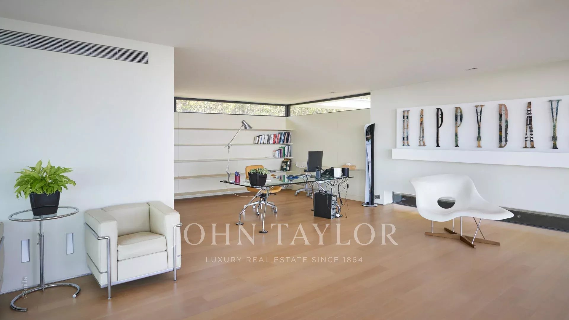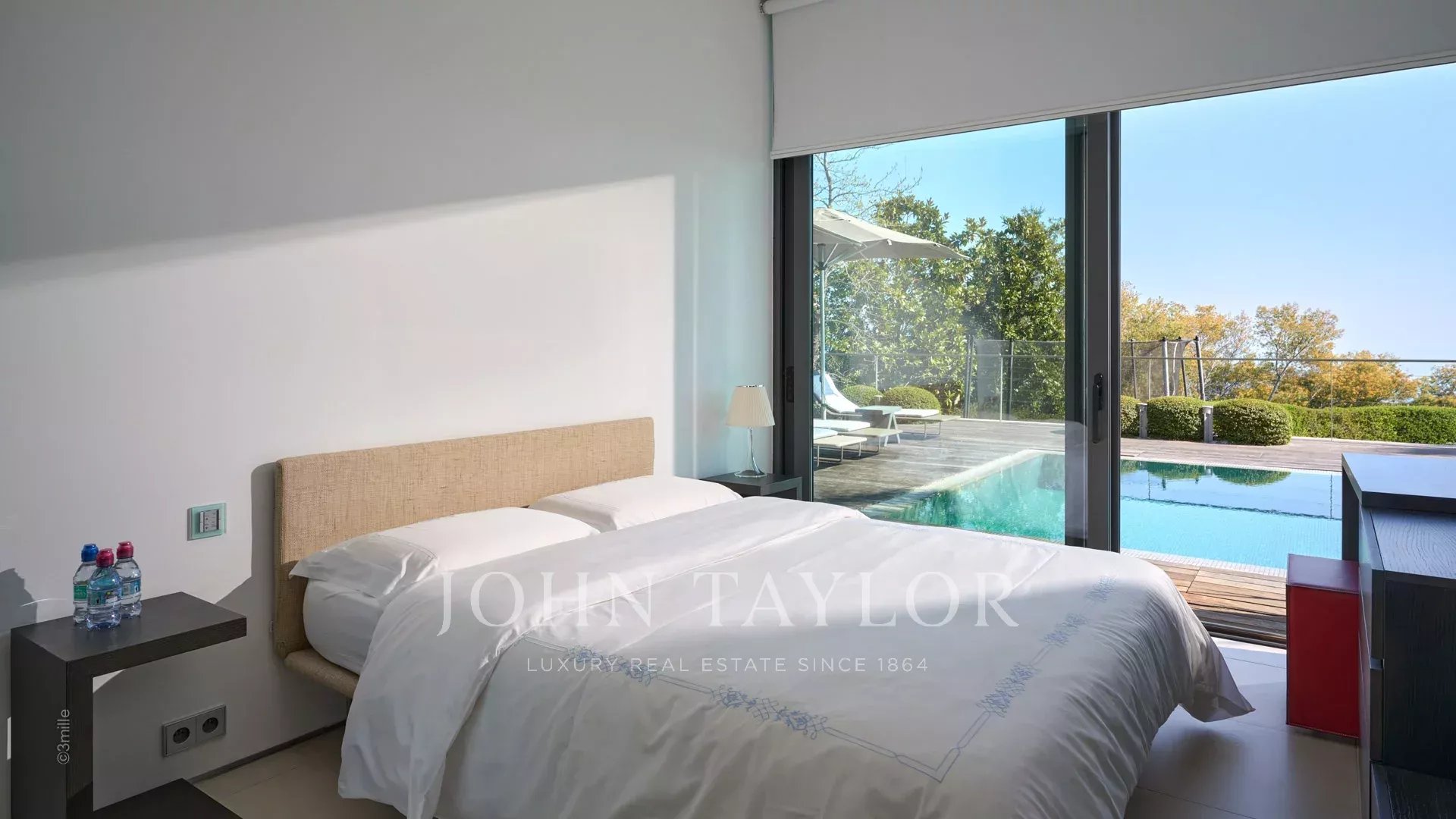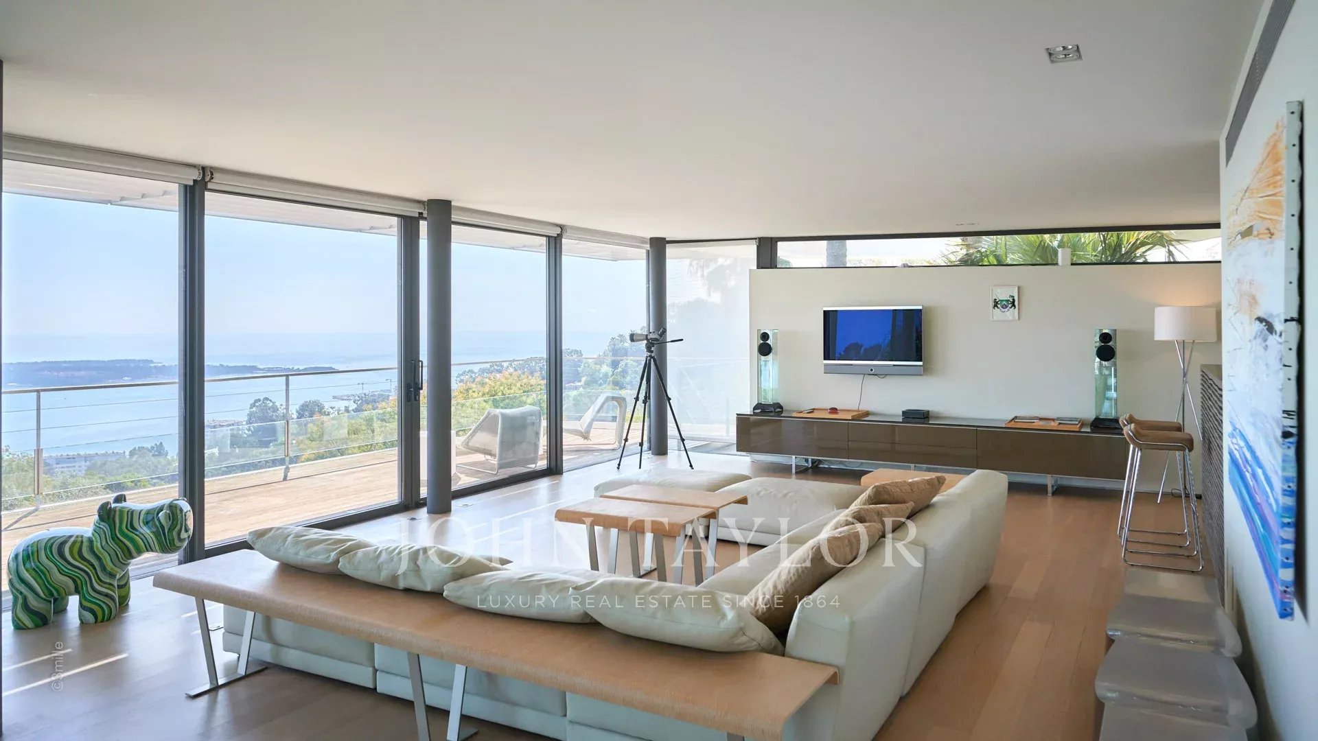Vítejte v této vynikající moderní vile, moderní oáze o rozloze 800 m2, která se rozkládá na 4 podlažích, s výtahem, v srdci rozsáhlého pozemku o rozloze 6 000 m2. Tato klimatizovaná rezidence nabízí luxusní zážitek s úchvatným panoramatickým výhledem na moře, který se táhne od Lérinských ostrovů až po majestátní Cap d'Antibes.