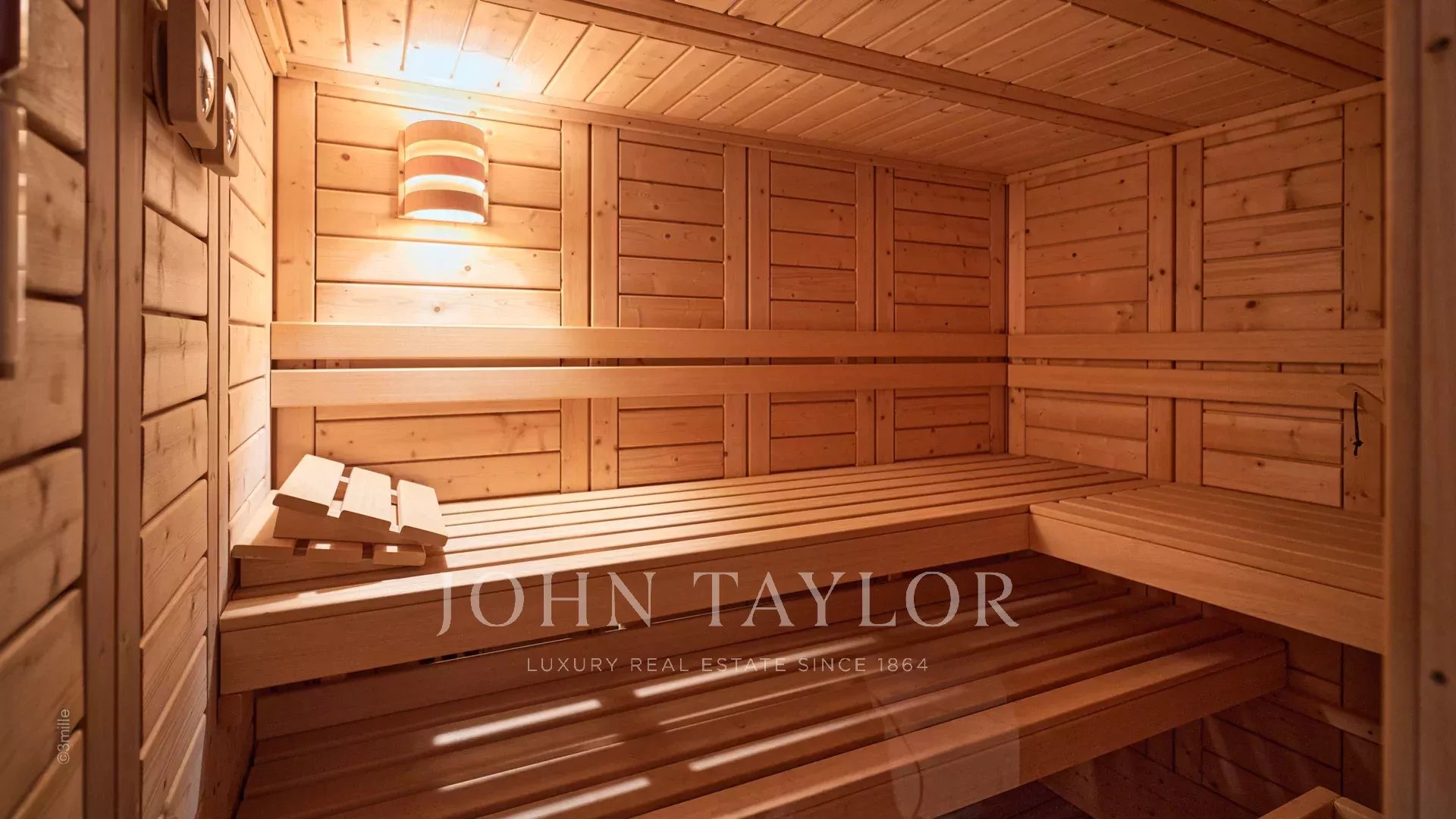 Další úroveň vyhrazuje sportovní místnost se stolním fotbalem a barem, dvě sprchy, saunu, toalety, kinosál, prádelnu vybavenou 2 pračkami a 2 sušičkami, dále sprchu a toalety pro personál.