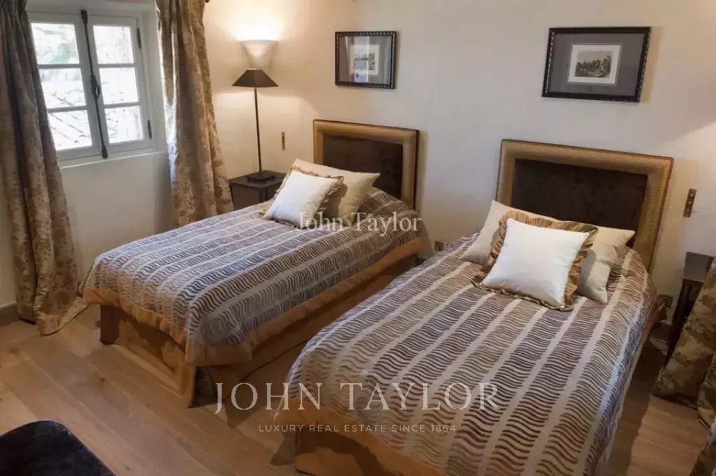 Toto nádherné sídlo se nachází na 30 hektarech parku osázeného olivovníky a levandulí, pouhých 20 minut od Croisette, 10 minut od letiště Cannes Mandelieu a 30 minut od mezinárodního letiště Nice Côte d'Azur. Objekt je dostupný vrtulníkem a je ideální pro dovolenou v naprostém soukromí. Oáza klidu v zeleni.