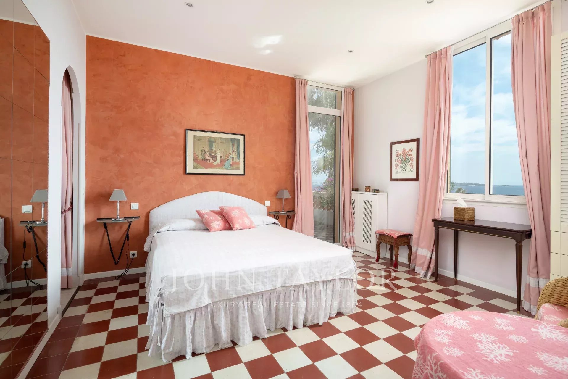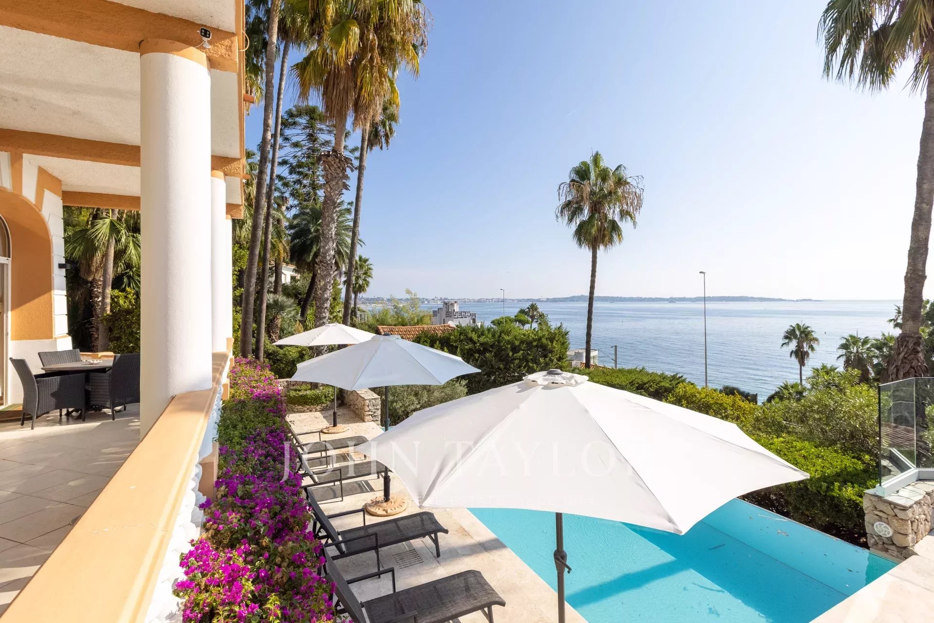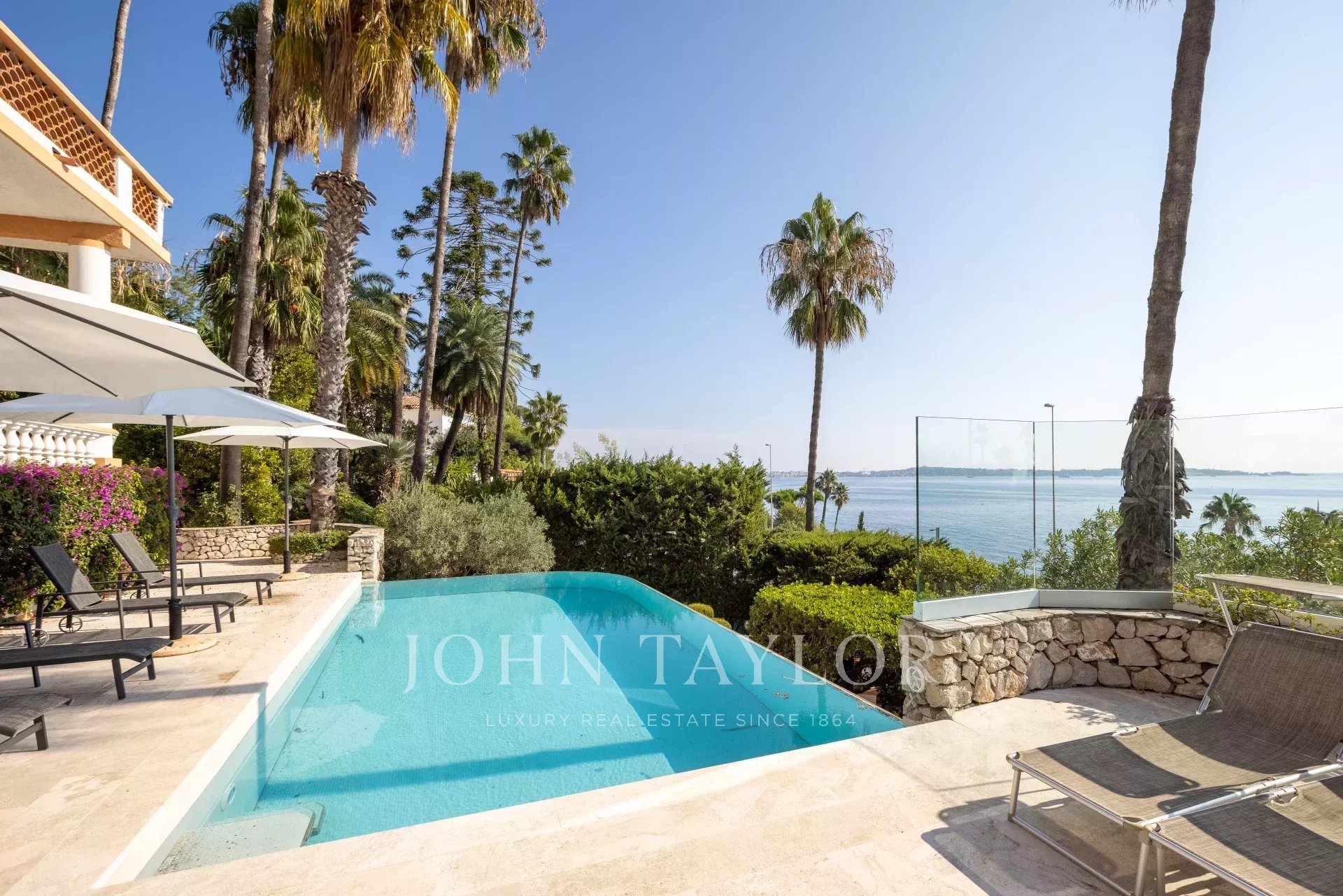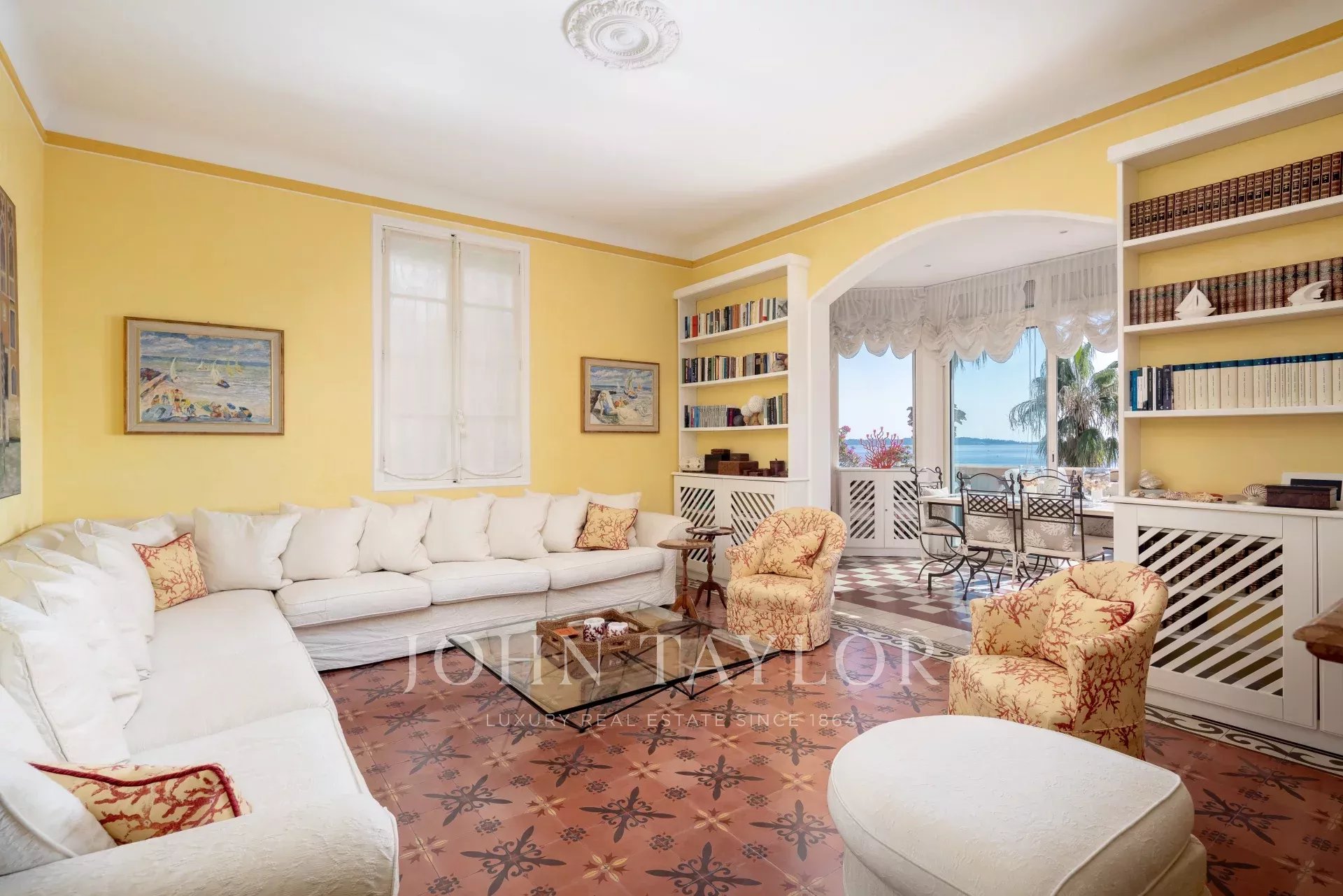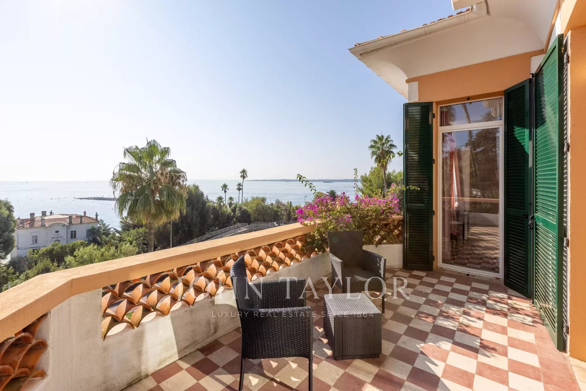 Vila z období Belle Epoque v blízkosti Cannes a na ideálním místě na nábřeží, na upraveném pozemku o rozloze cca 1 000 m². Vynikající výhled na moře a Cap d'Antibes.