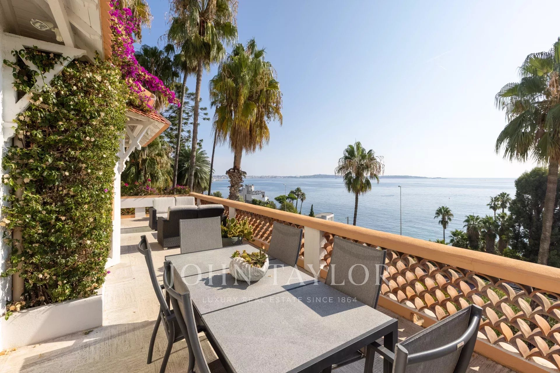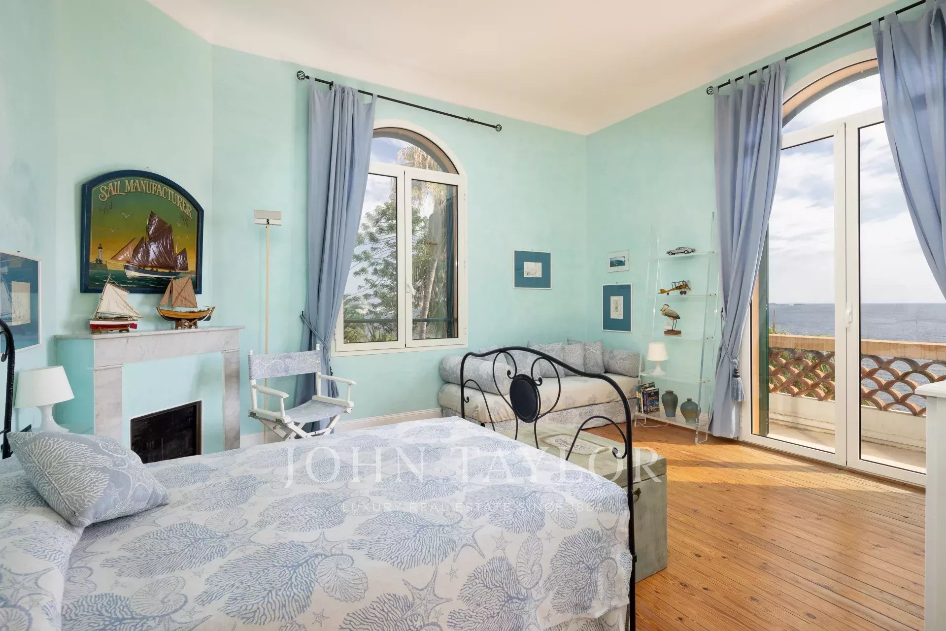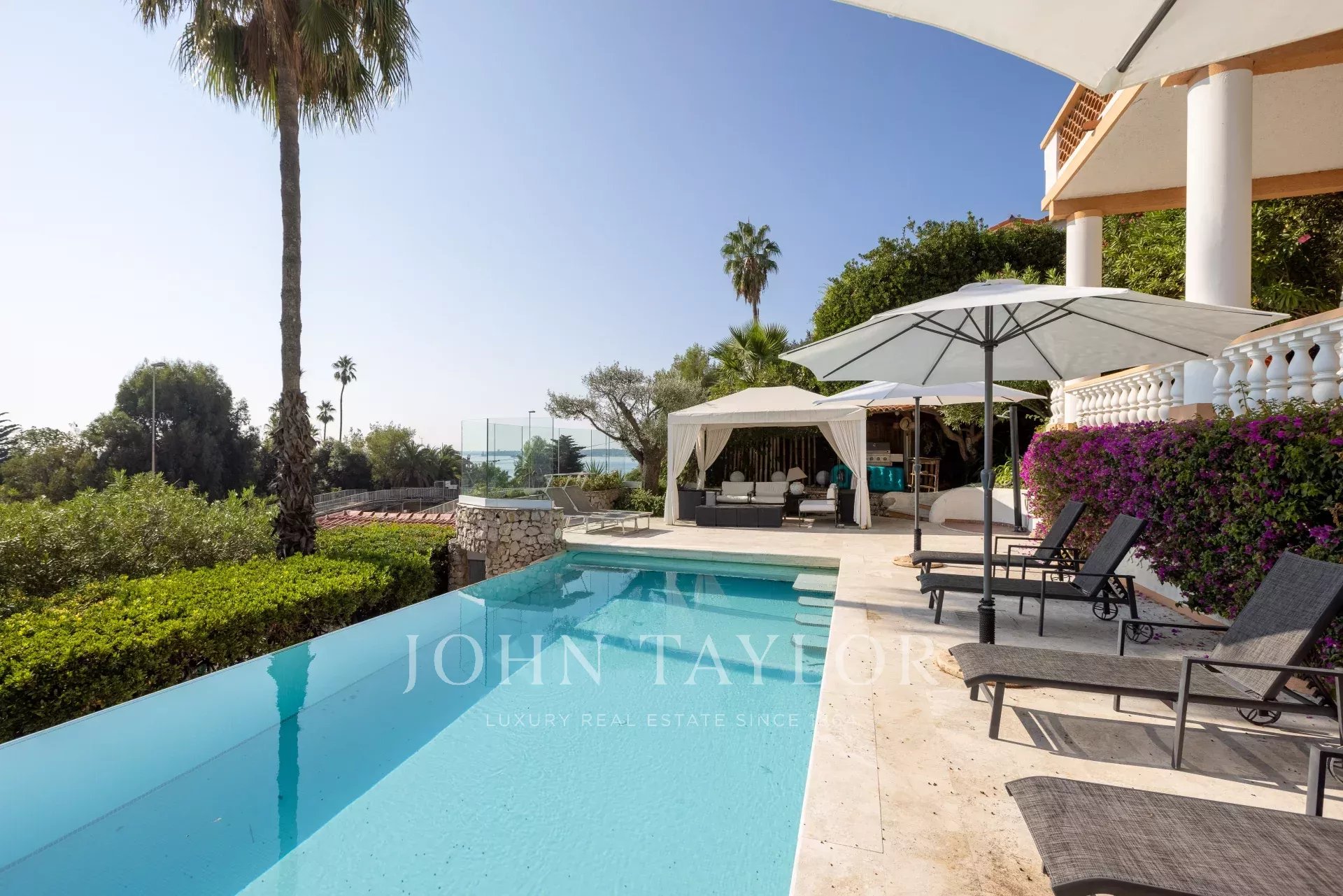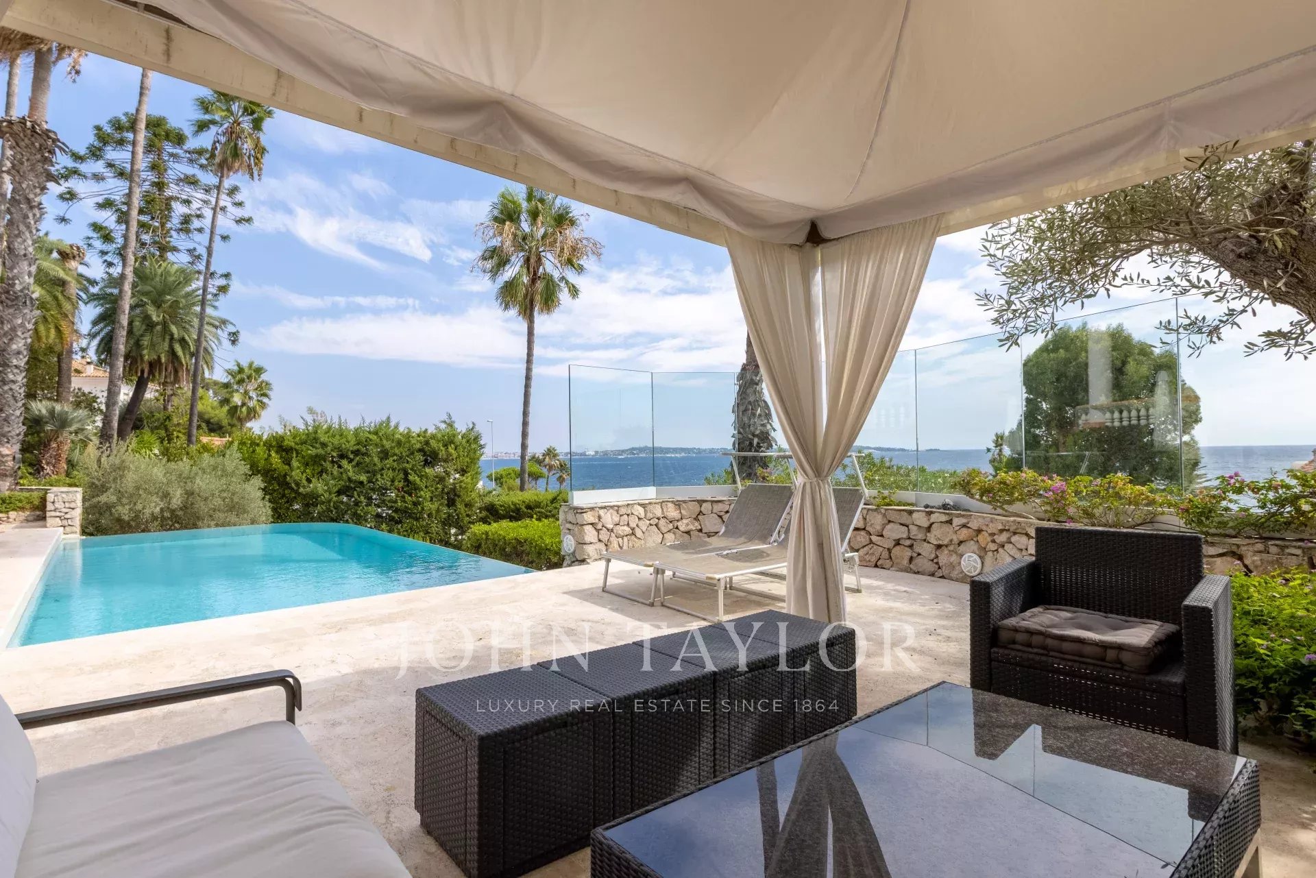 Vila z období Belle Epoque v blízkosti Cannes a na ideálním místě na nábřeží, na upraveném pozemku o rozloze cca 1 000 m². Vynikající výhled na moře a Cap d'Antibes.