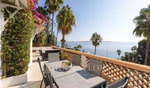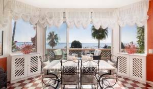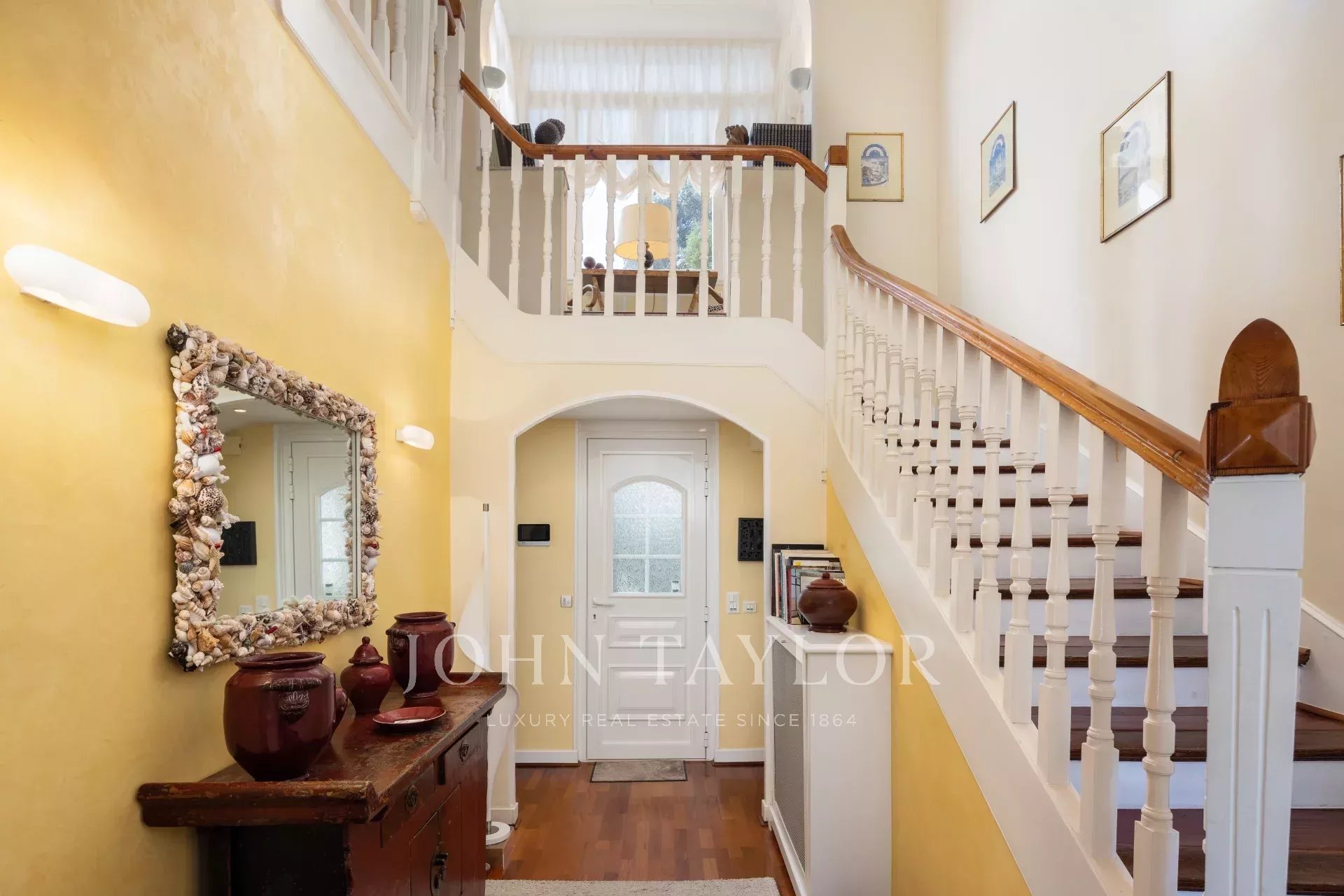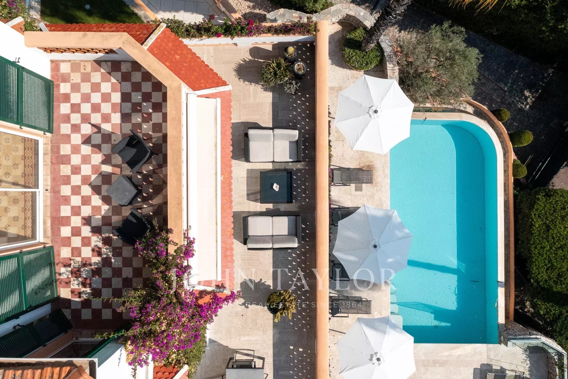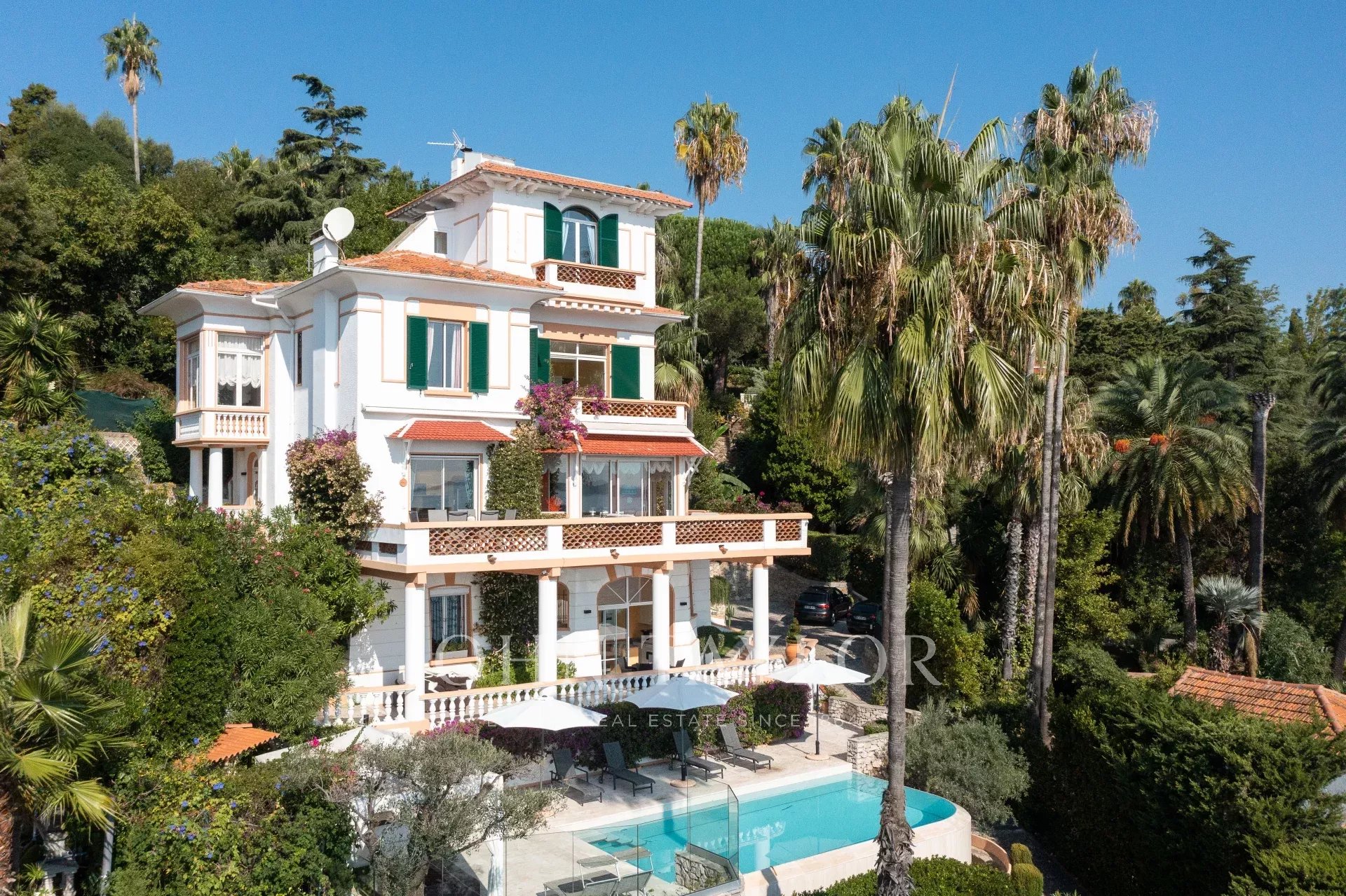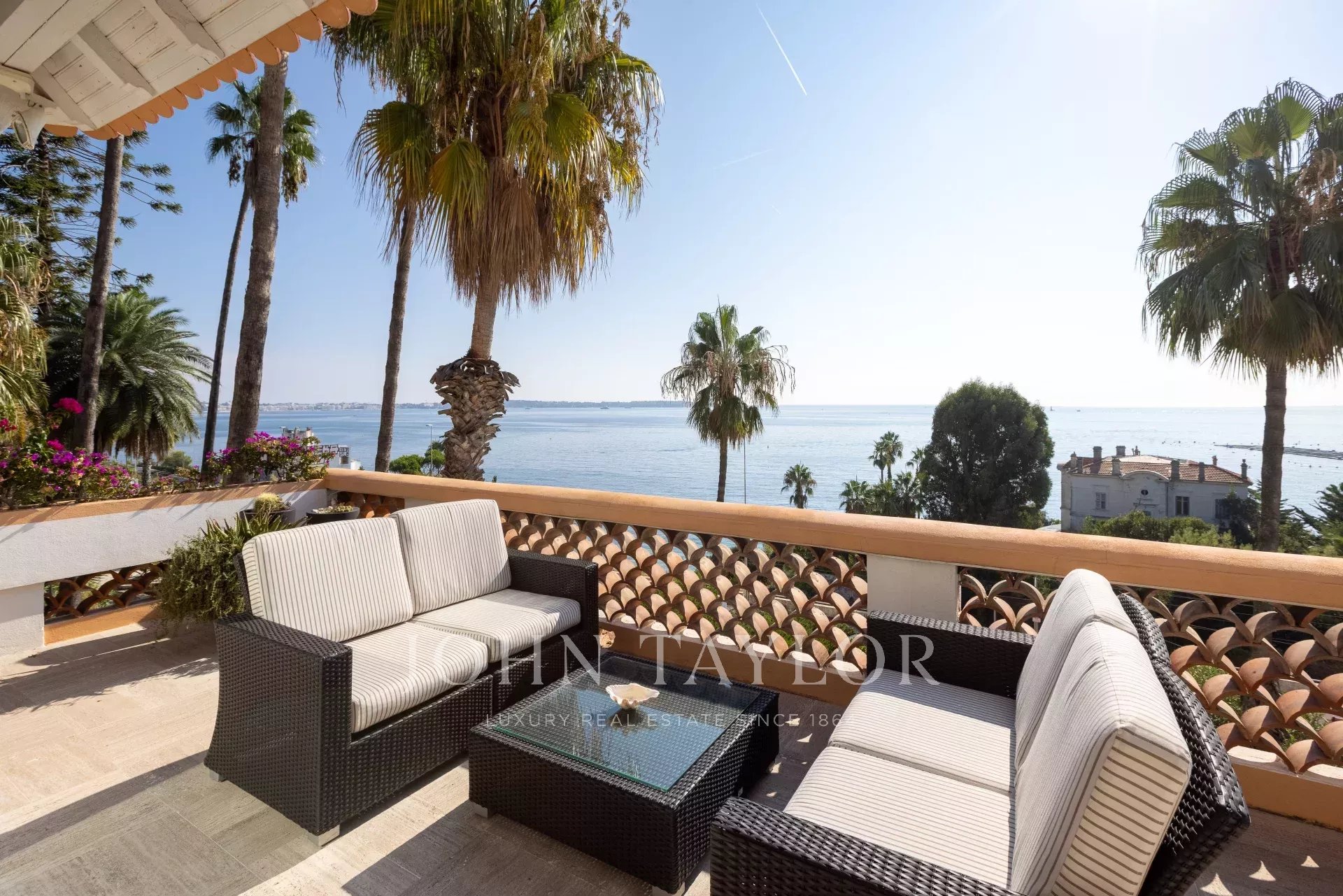 Vila z období Belle Epoque v blízkosti Cannes a na ideálním místě na nábřeží, na upraveném pozemku o rozloze cca 1 000 m². Vynikající výhled na moře a Cap d'Antibes.