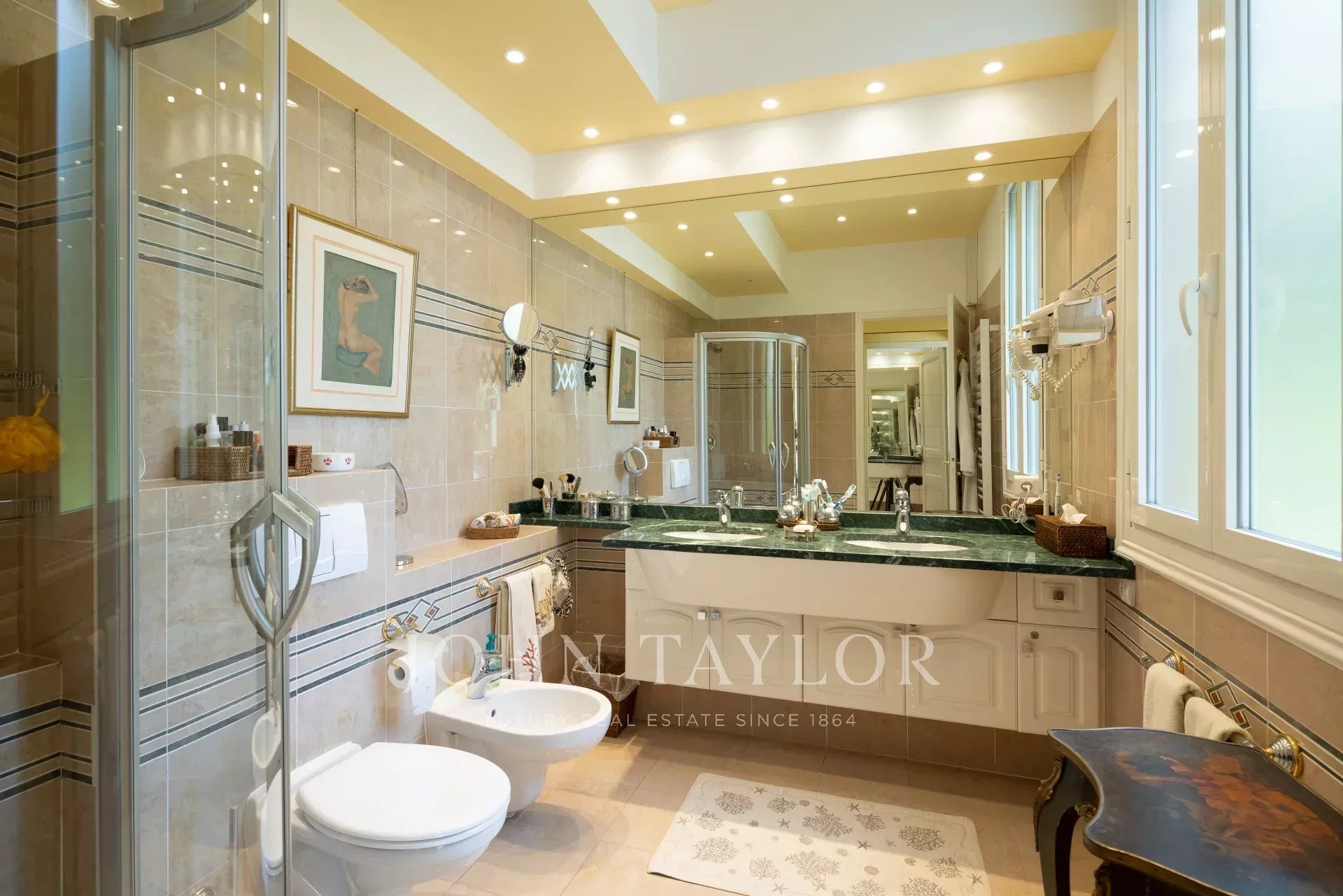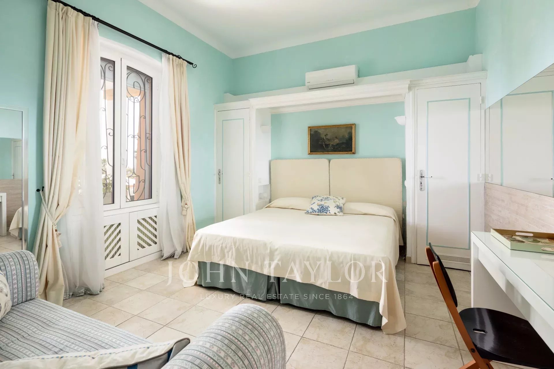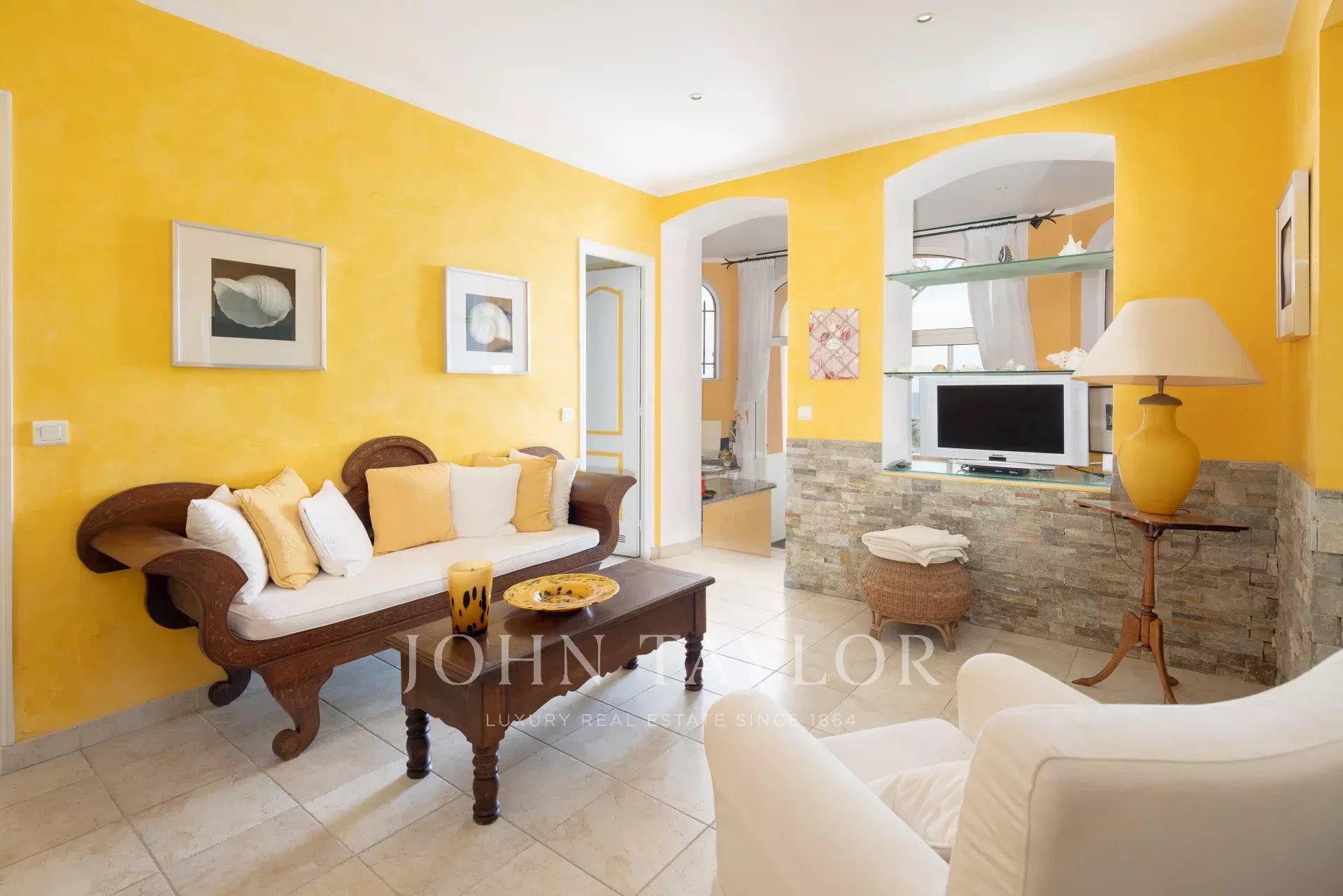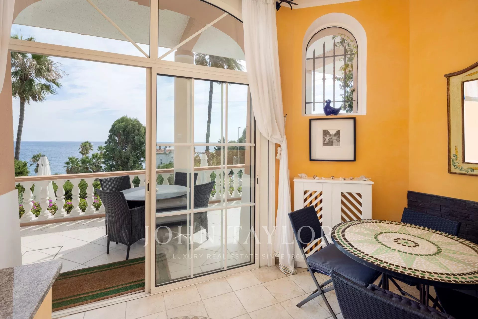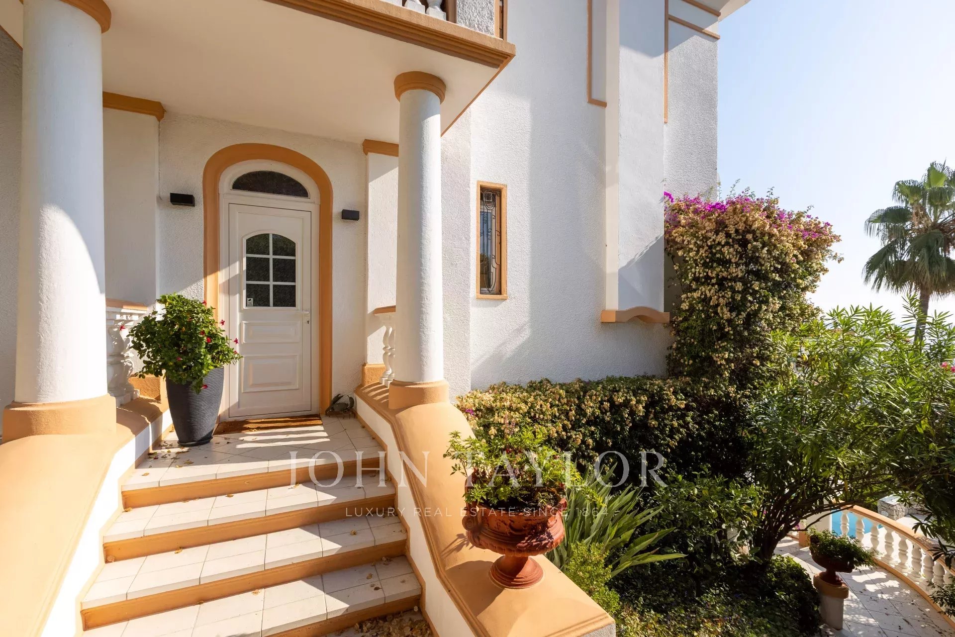 Vila z období Belle Epoque v blízkosti Cannes a na ideálním místě na nábřeží, na upraveném pozemku o rozloze cca 1 000 m². Vynikající výhled na moře a Cap d'Antibes.
