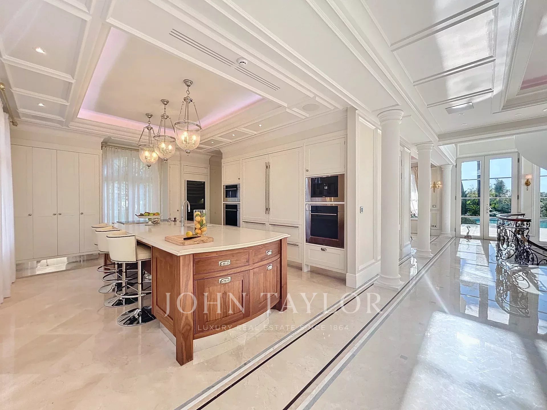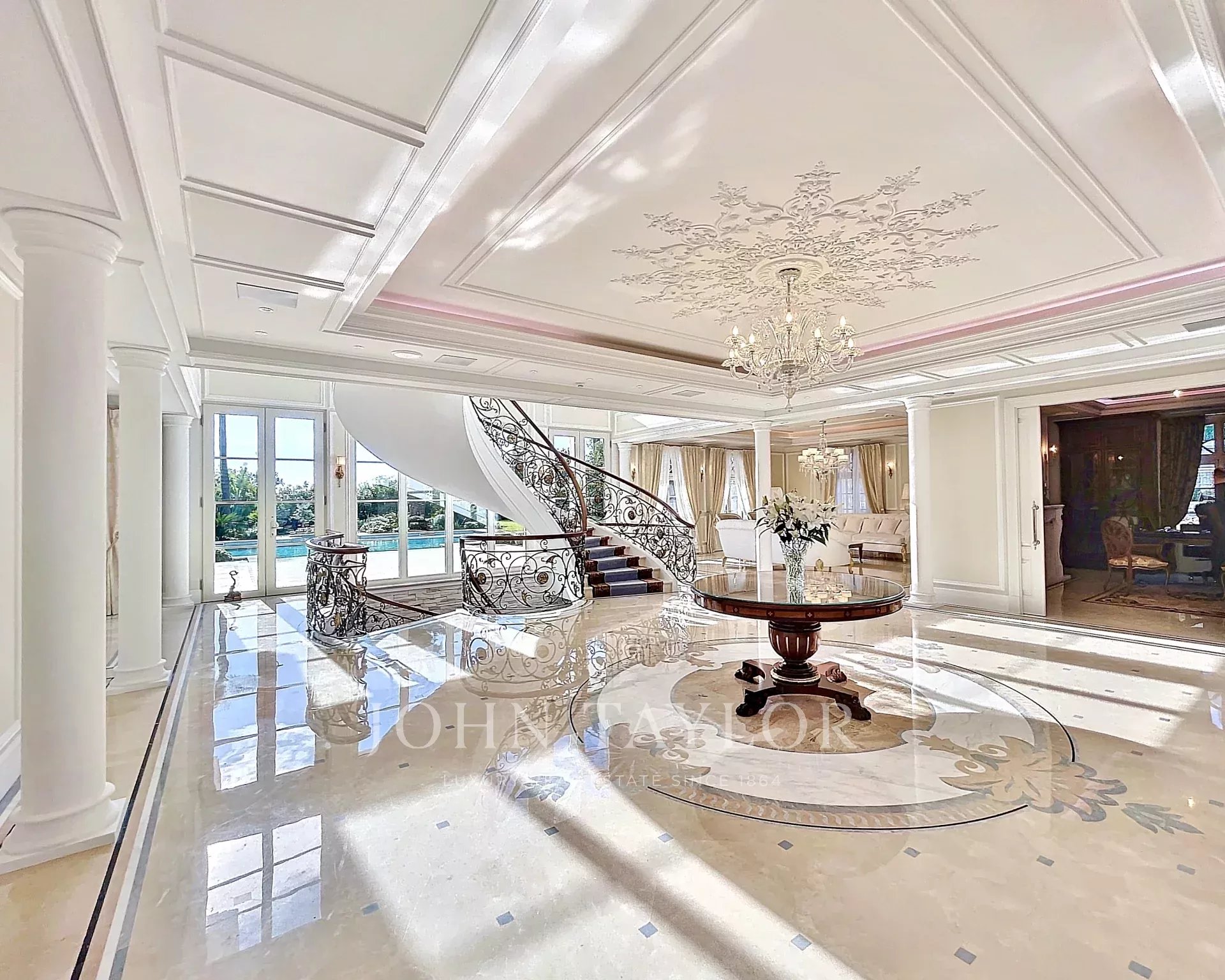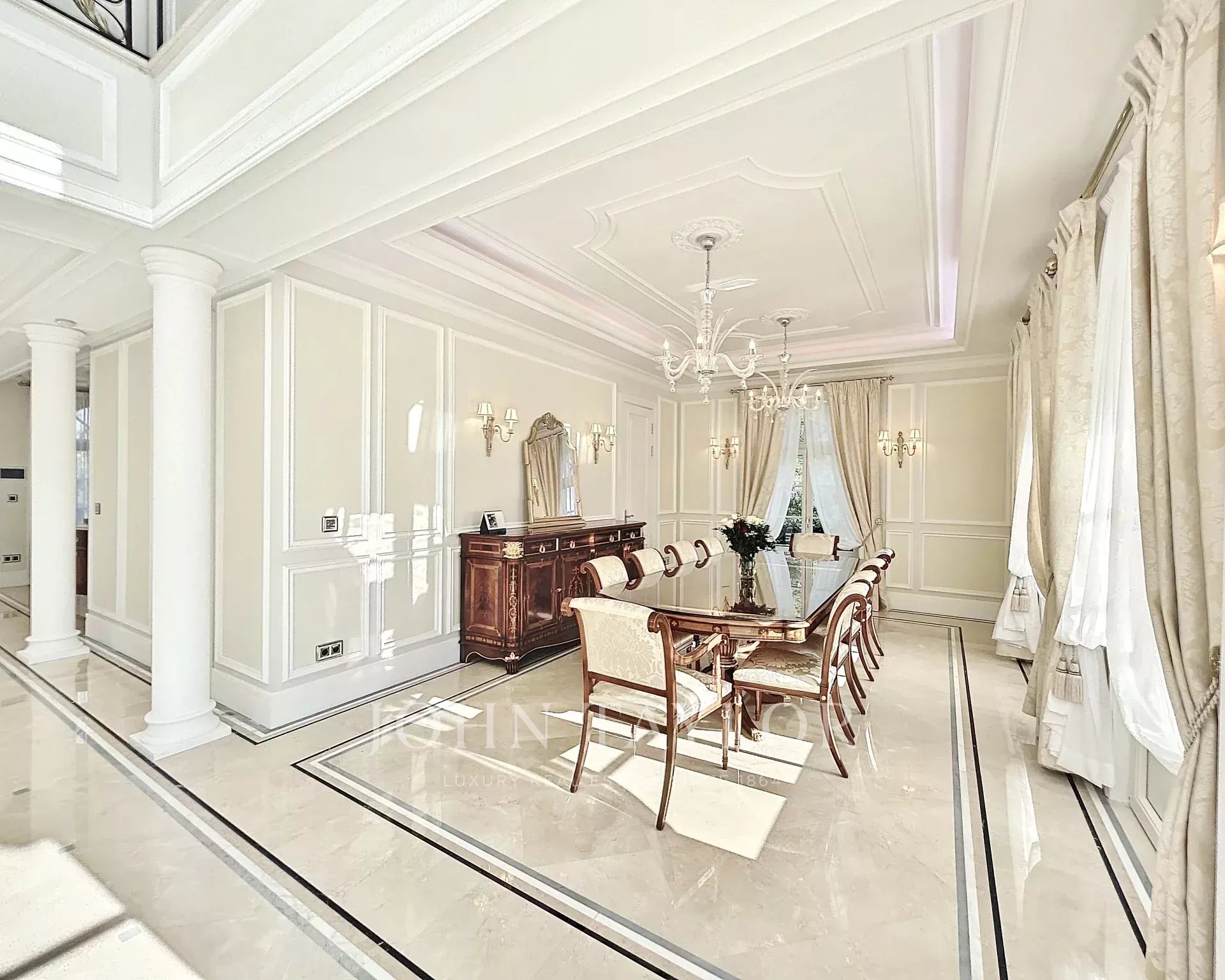 MAISON DE MAITRES s obytnou plochou přibližně 800 m2, plně klimatizovaný (podlahové vytápění), nabízí pozoruhodné dispoziční řešení: