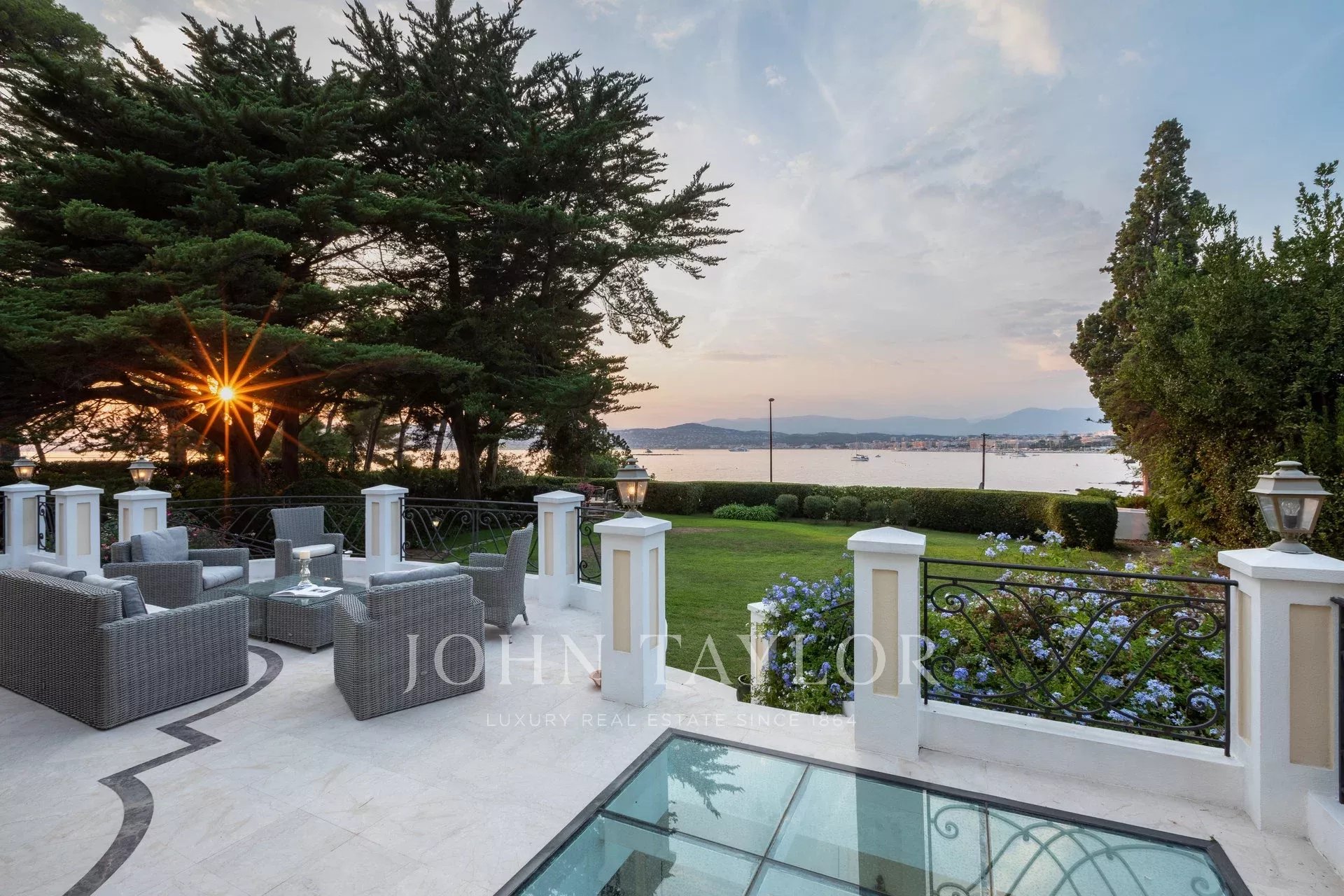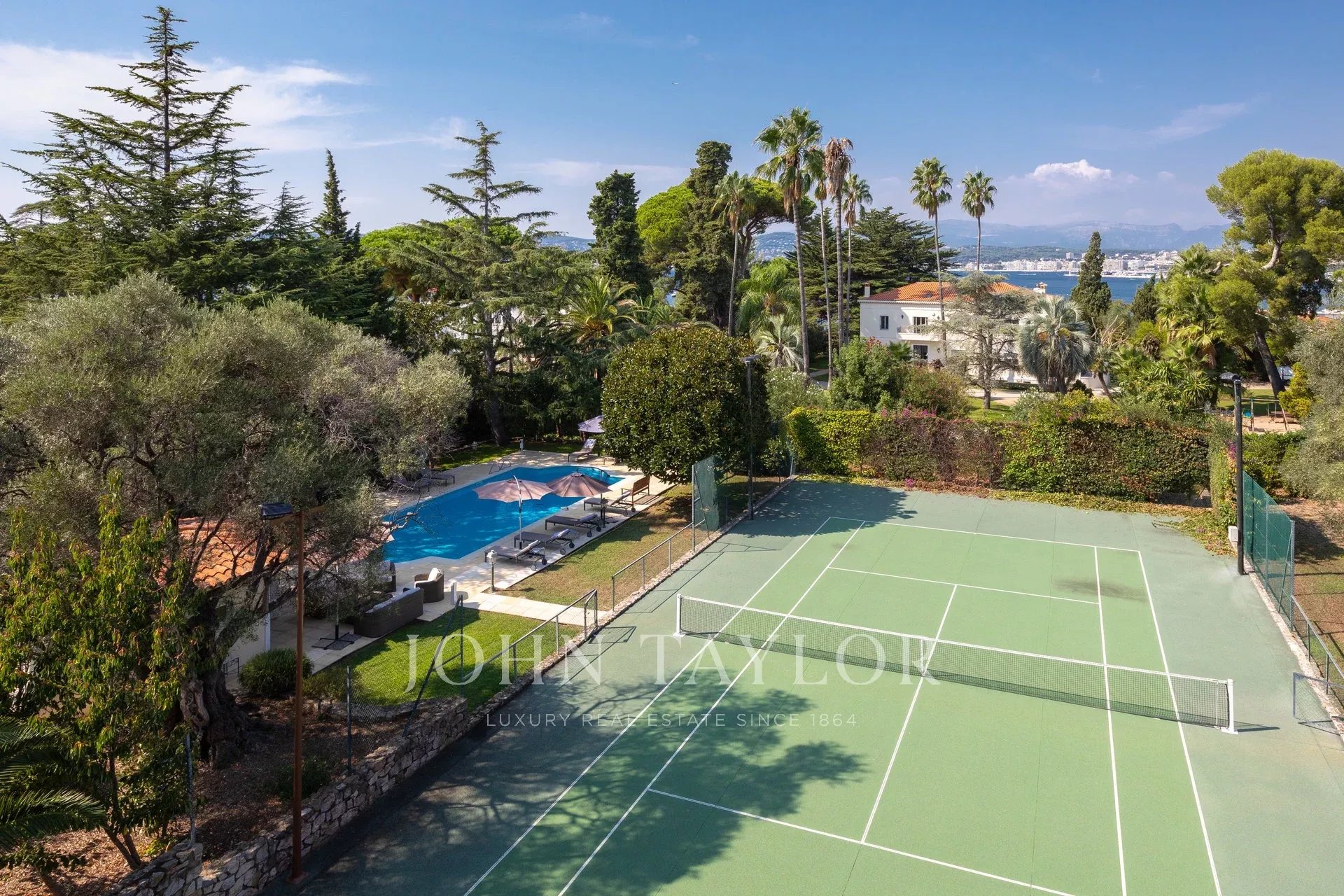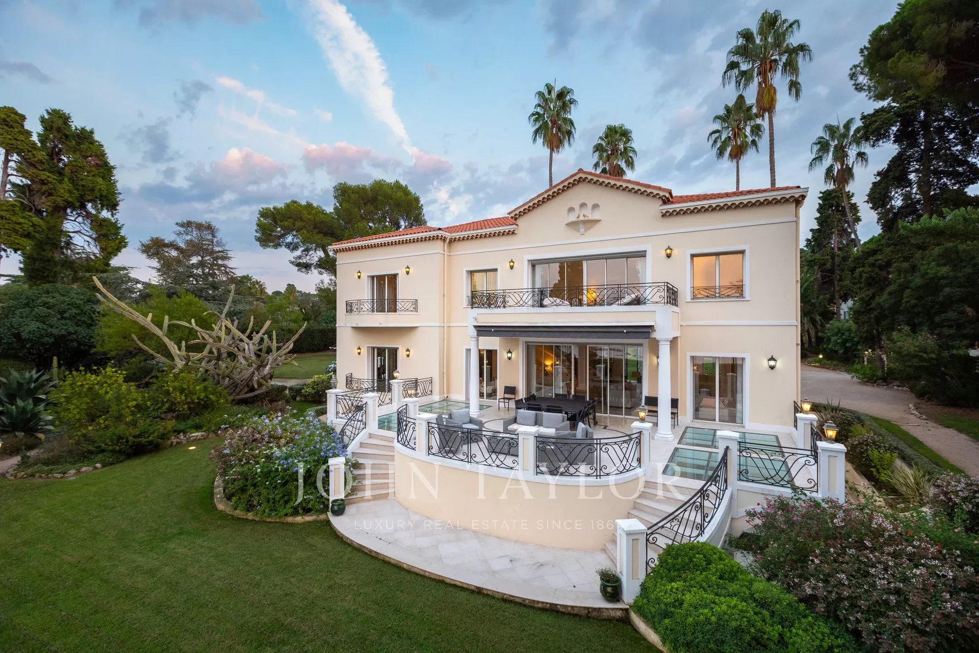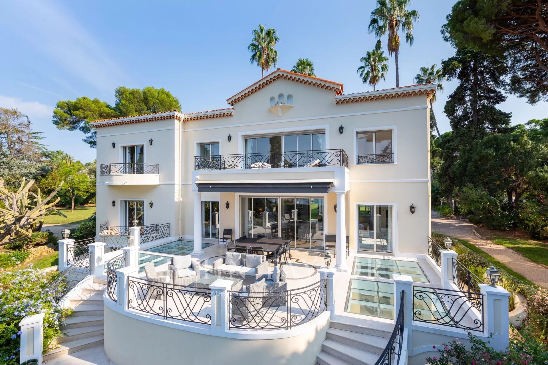 Nádherná třípodlažní nemovitost na bulváru Boulevard du Littoral. Nachází se jen několik minut chůze od hotelu Eden Roc a nabízí krásný výhled na záliv Juan Les Pins, ostrovy Lérins a Esterel. Kompletně zrekonstruovaný a klimatizovaný dům je obklopen 9 000 m2 dobře navrženého pozemku s trávníky, květinami a krásnými stromy.