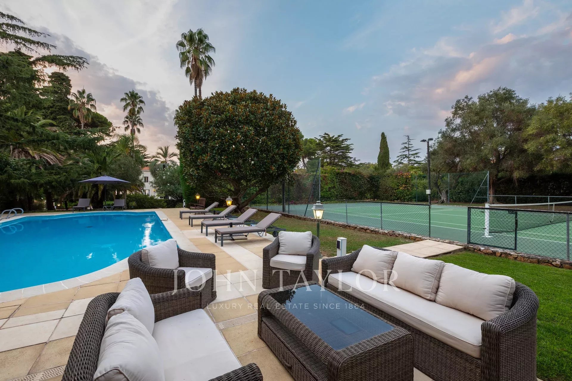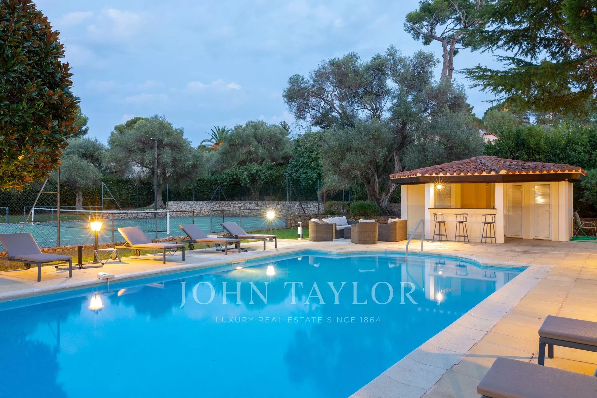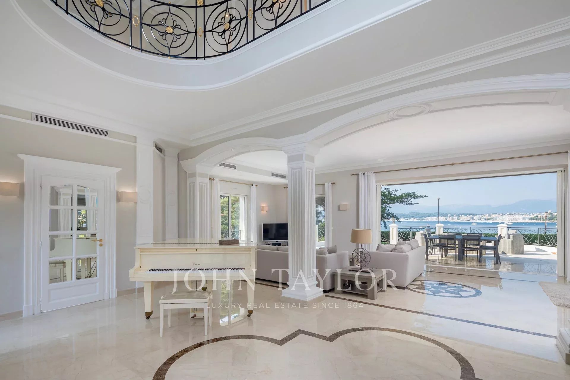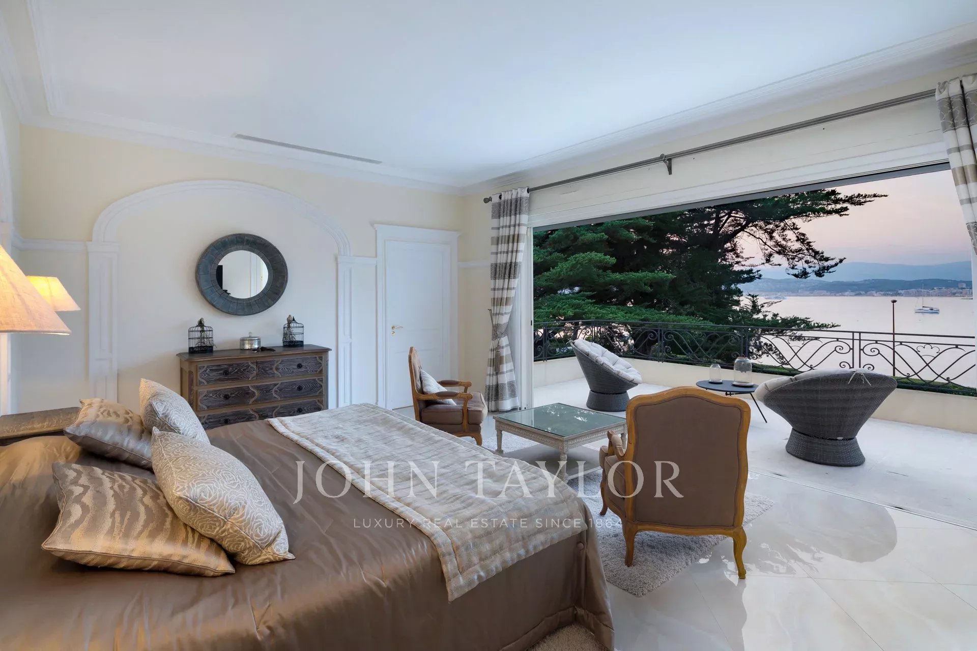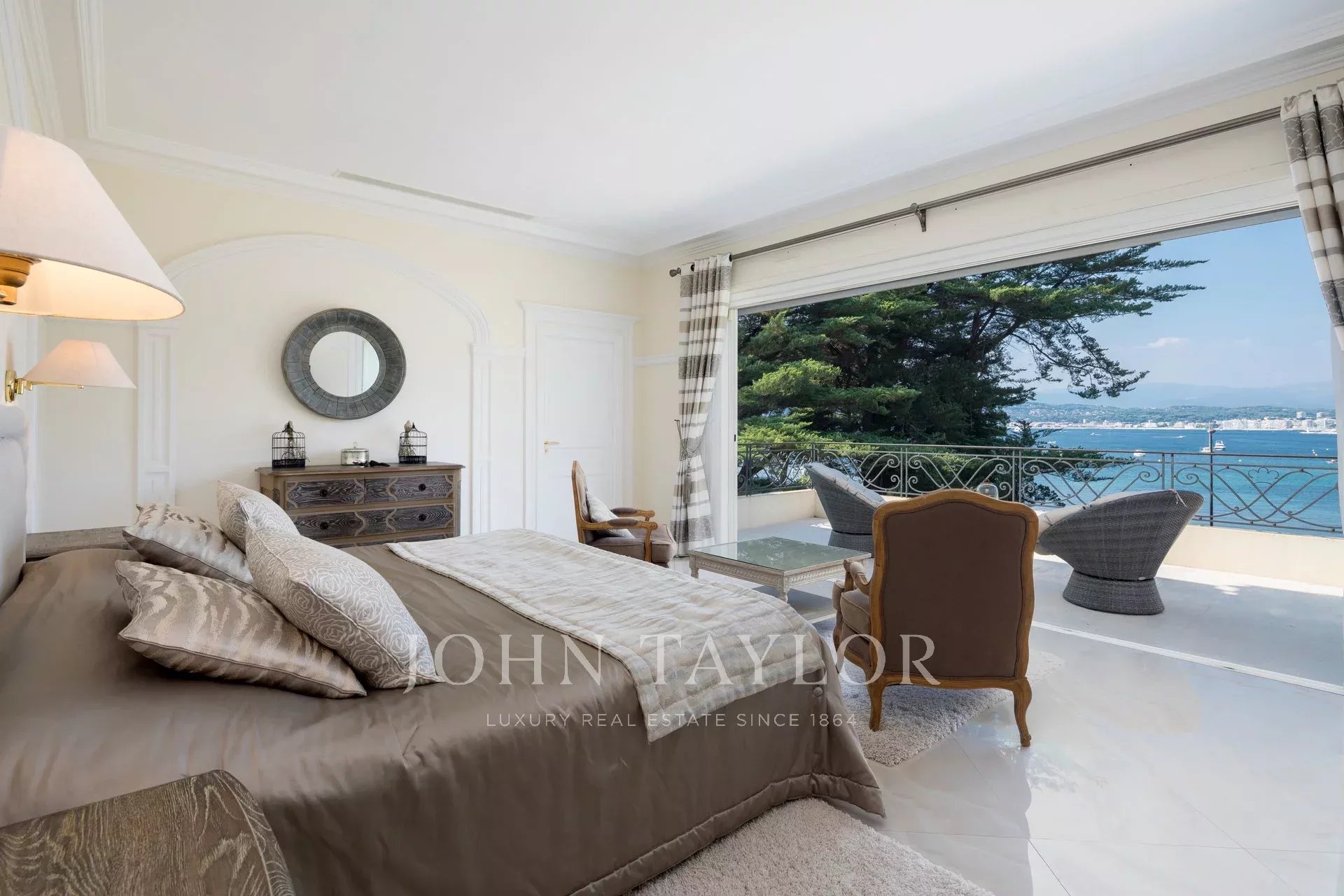 Nádherná třípodlažní nemovitost na bulváru Boulevard du Littoral. Nachází se jen několik minut chůze od hotelu Eden Roc a nabízí krásný výhled na záliv Juan Les Pins, ostrovy Lérins a Esterel. Kompletně zrekonstruovaný a klimatizovaný dům je obklopen 9 000 m2 dobře navrženého pozemku s trávníky, květinami a krásnými stromy.