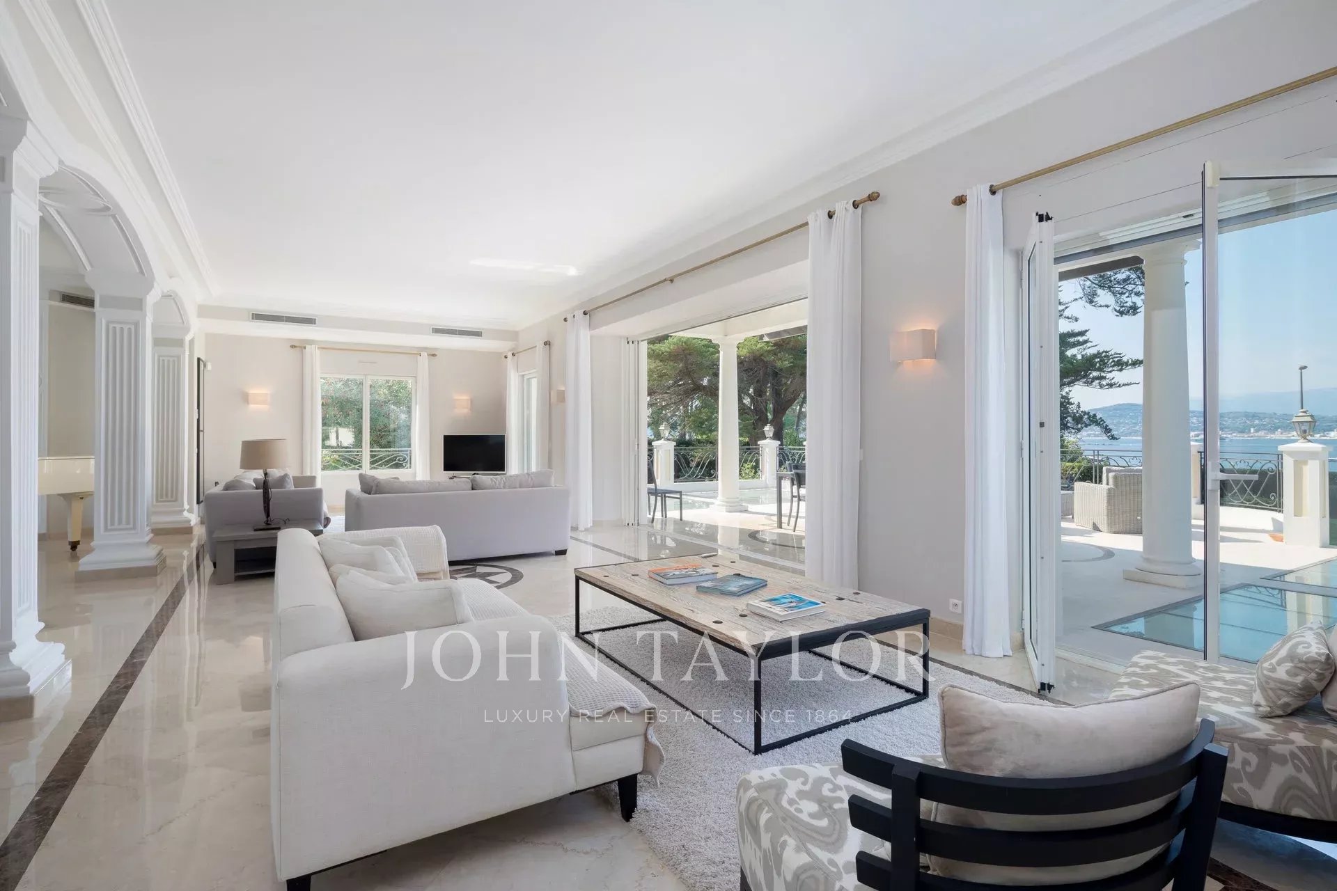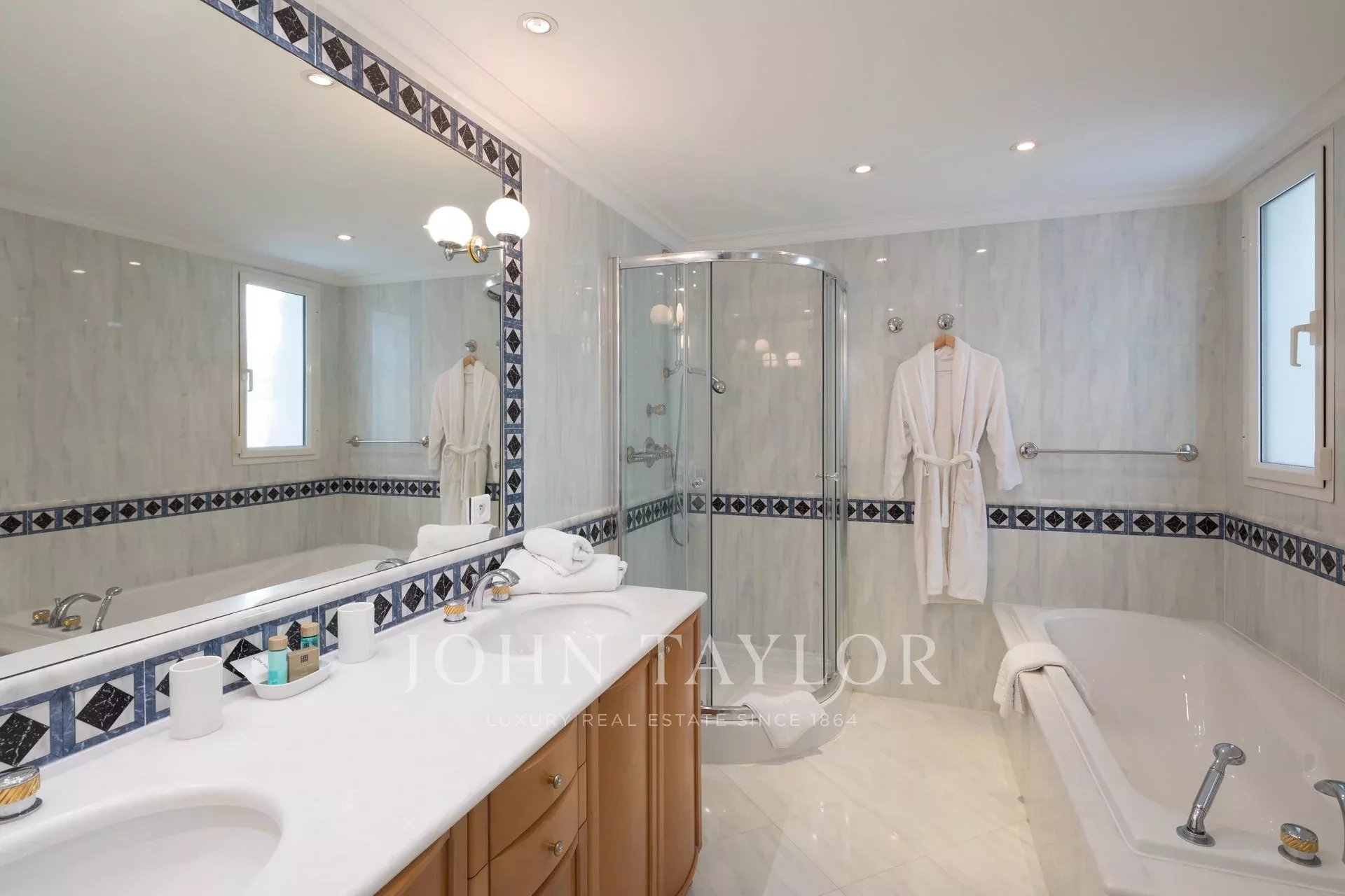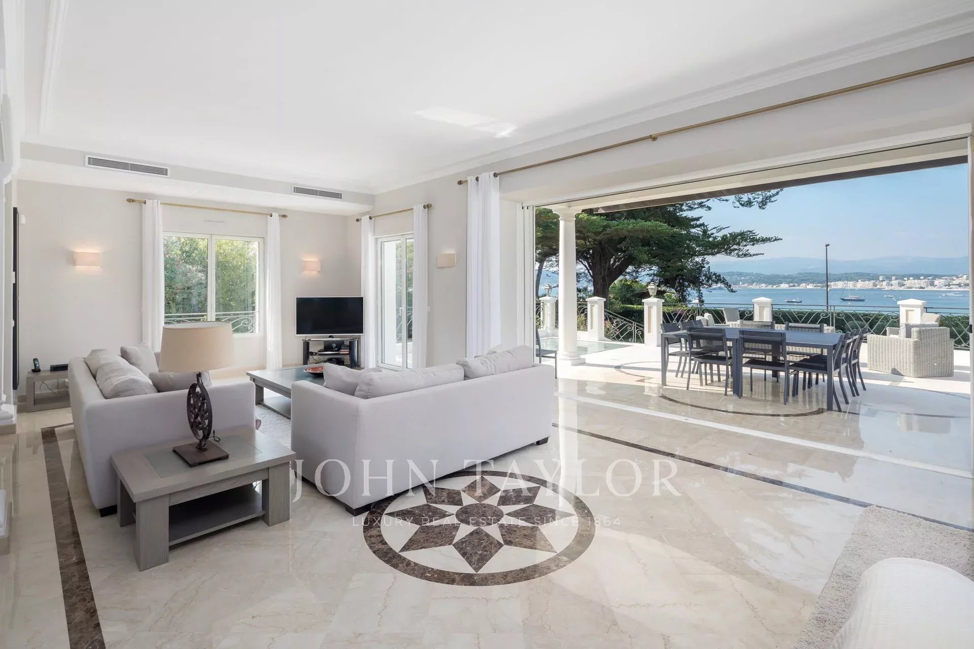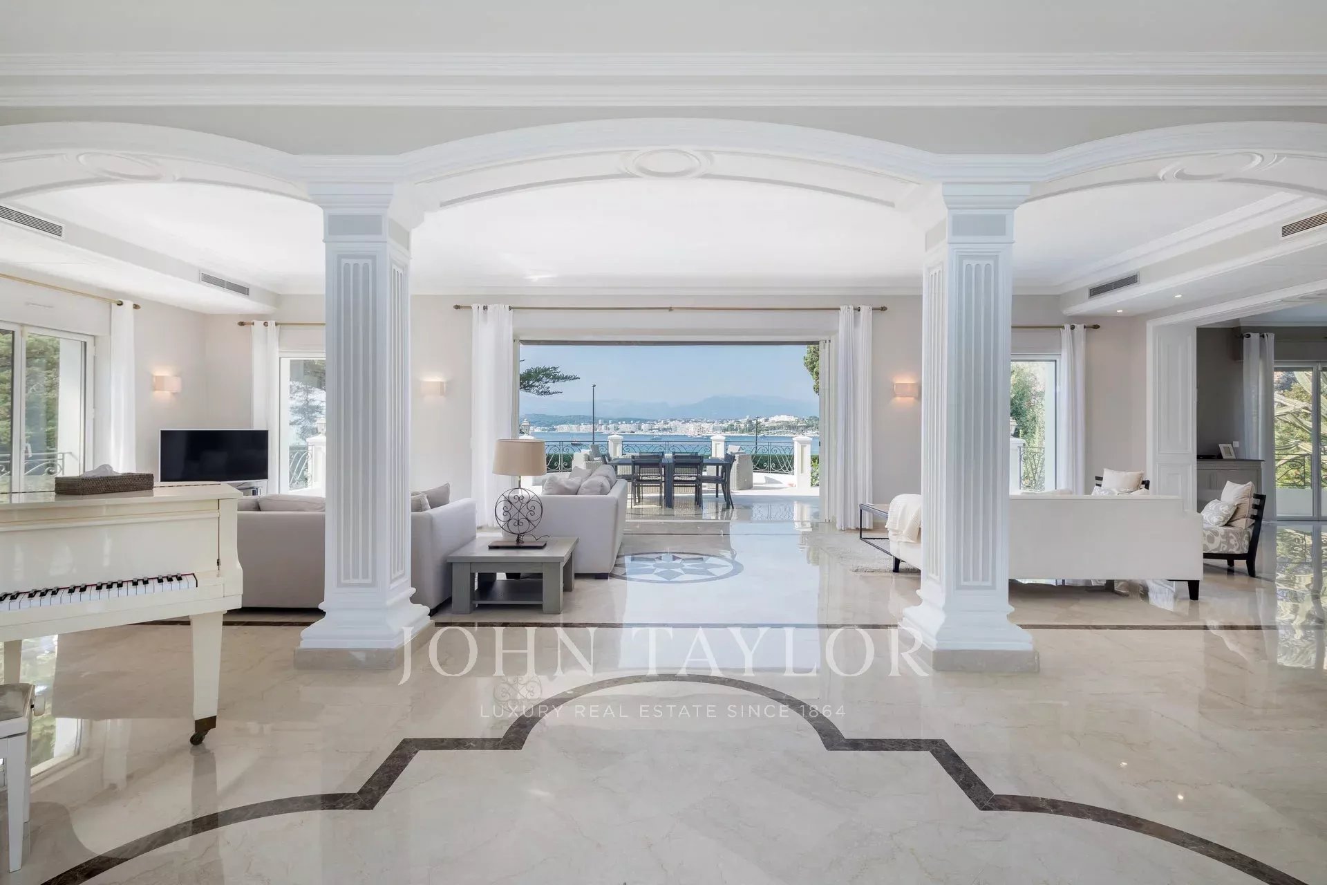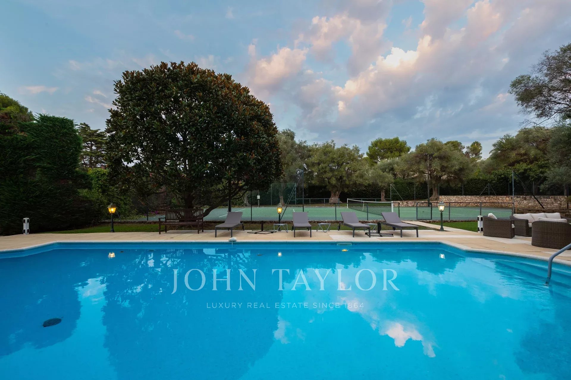 Nádherná třípodlažní nemovitost na bulváru Boulevard du Littoral. Nachází se jen několik minut chůze od hotelu Eden Roc a nabízí krásný výhled na záliv Juan Les Pins, ostrovy Lérins a Esterel. Kompletně zrekonstruovaný a klimatizovaný dům je obklopen 9 000 m2 dobře navrženého pozemku s trávníky, květinami a krásnými stromy.