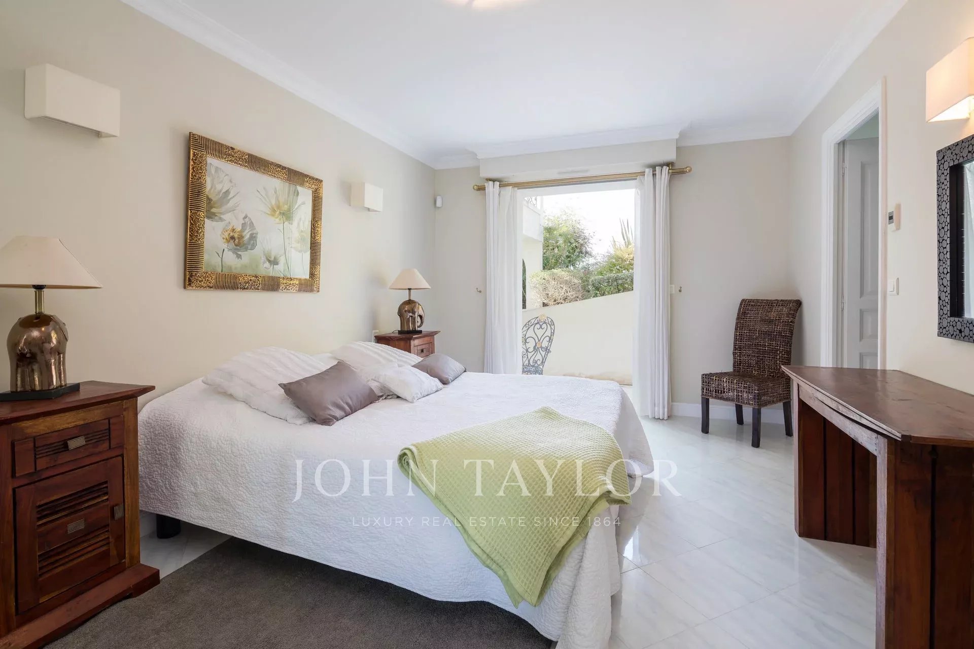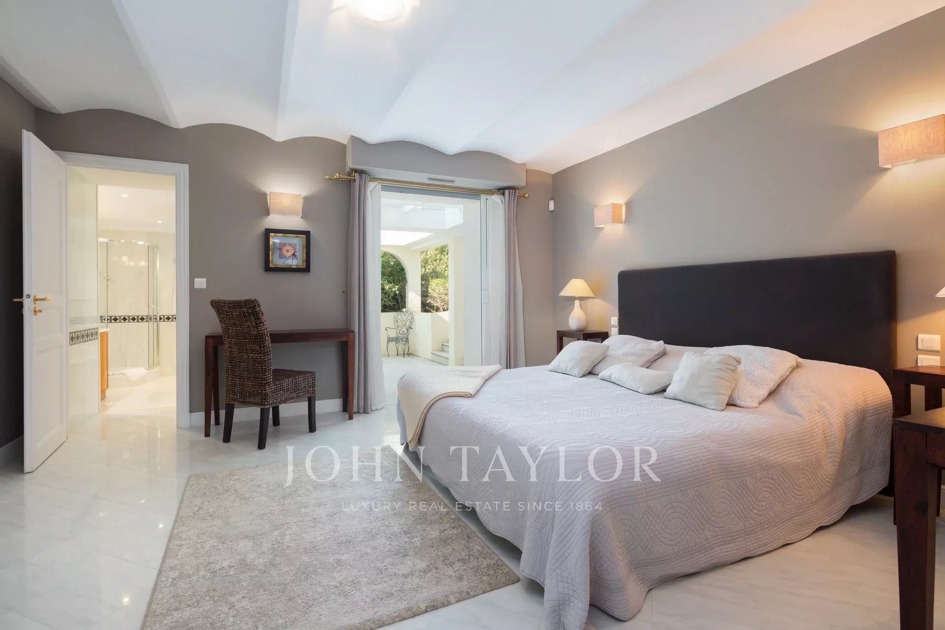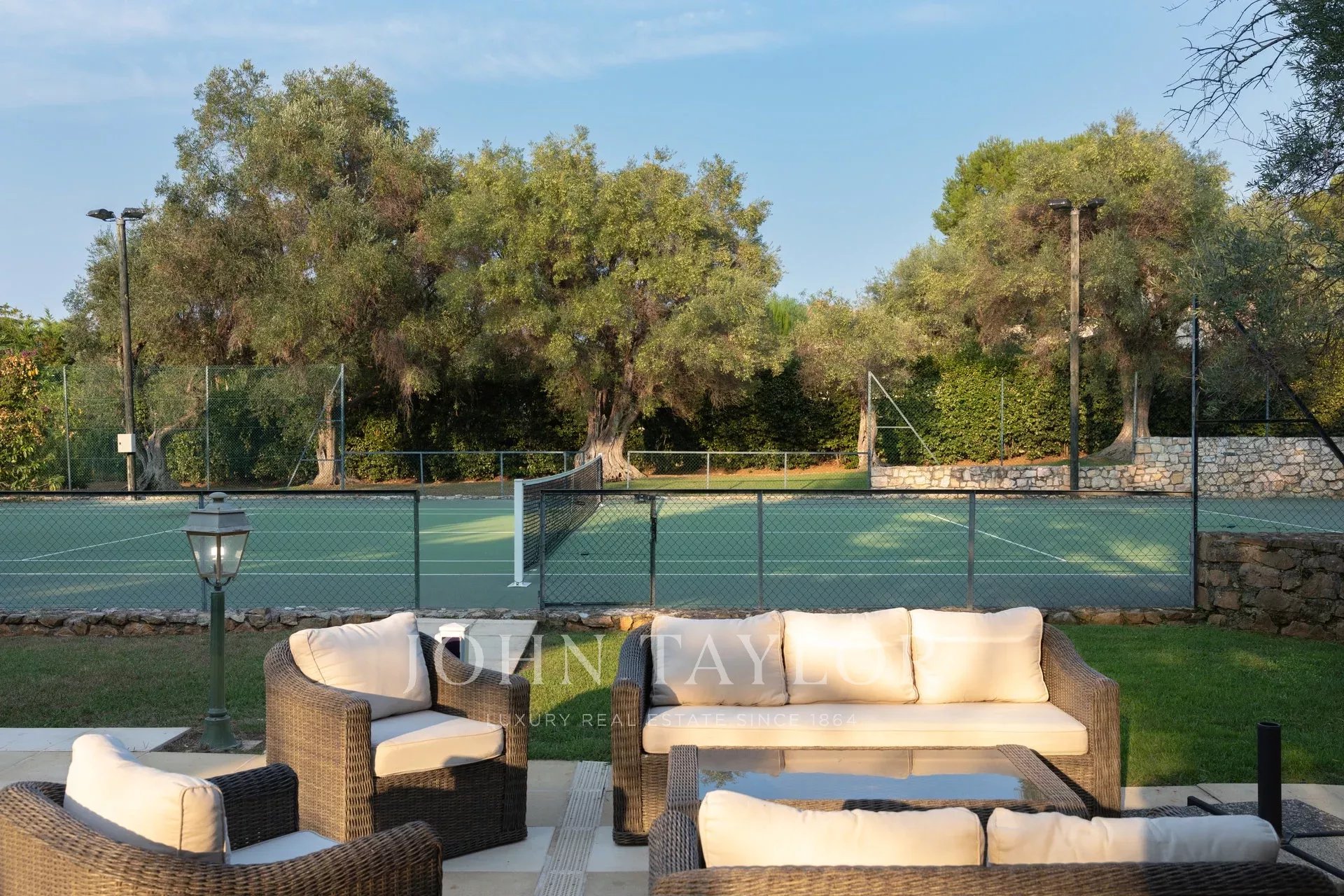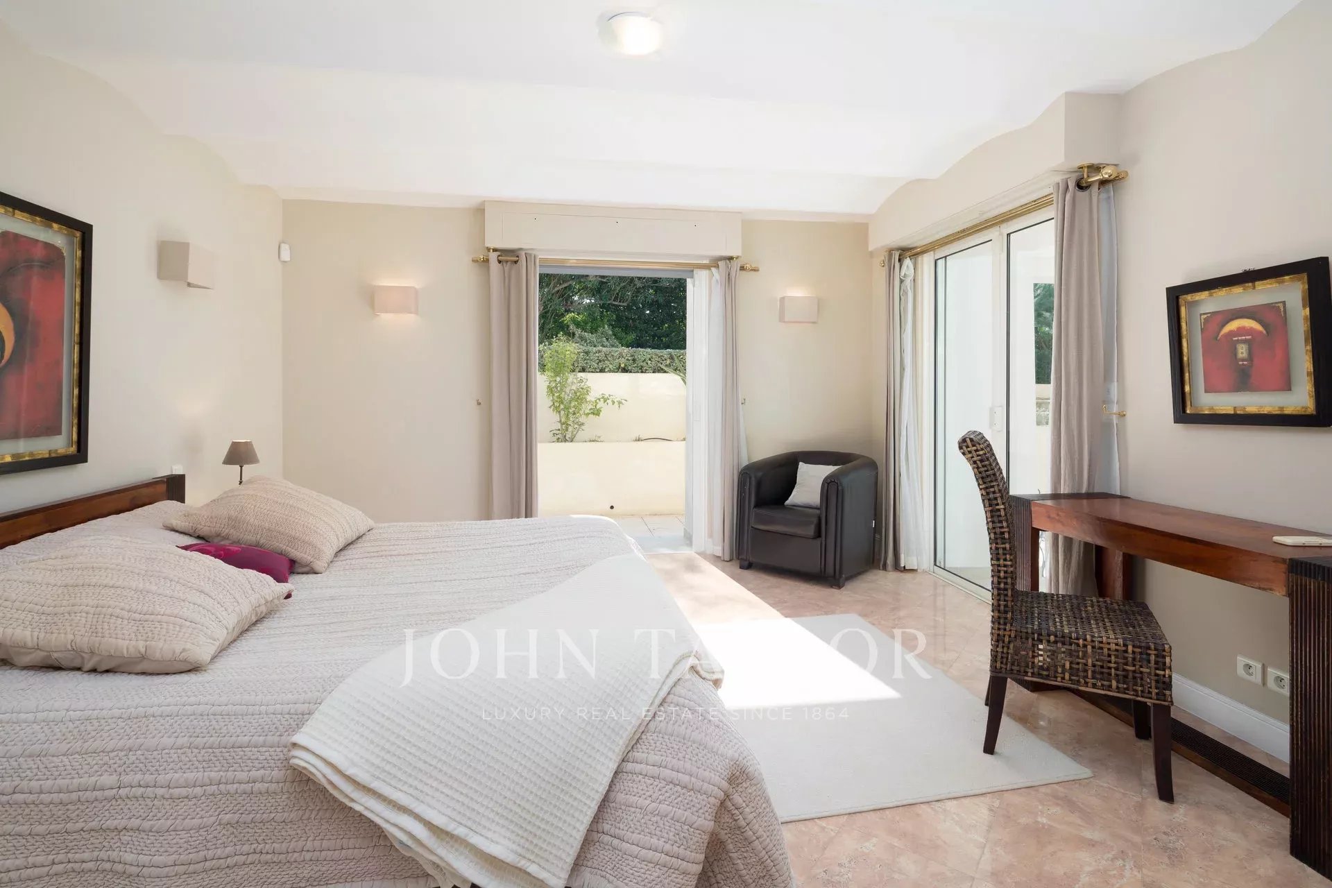 Nádherná třípodlažní nemovitost na bulváru Boulevard du Littoral. Nachází se jen několik minut chůze od hotelu Eden Roc a nabízí krásný výhled na záliv Juan Les Pins, ostrovy Lérins a Esterel. Kompletně zrekonstruovaný a klimatizovaný dům je obklopen 9 000 m2 dobře navrženého pozemku s trávníky, květinami a krásnými stromy.