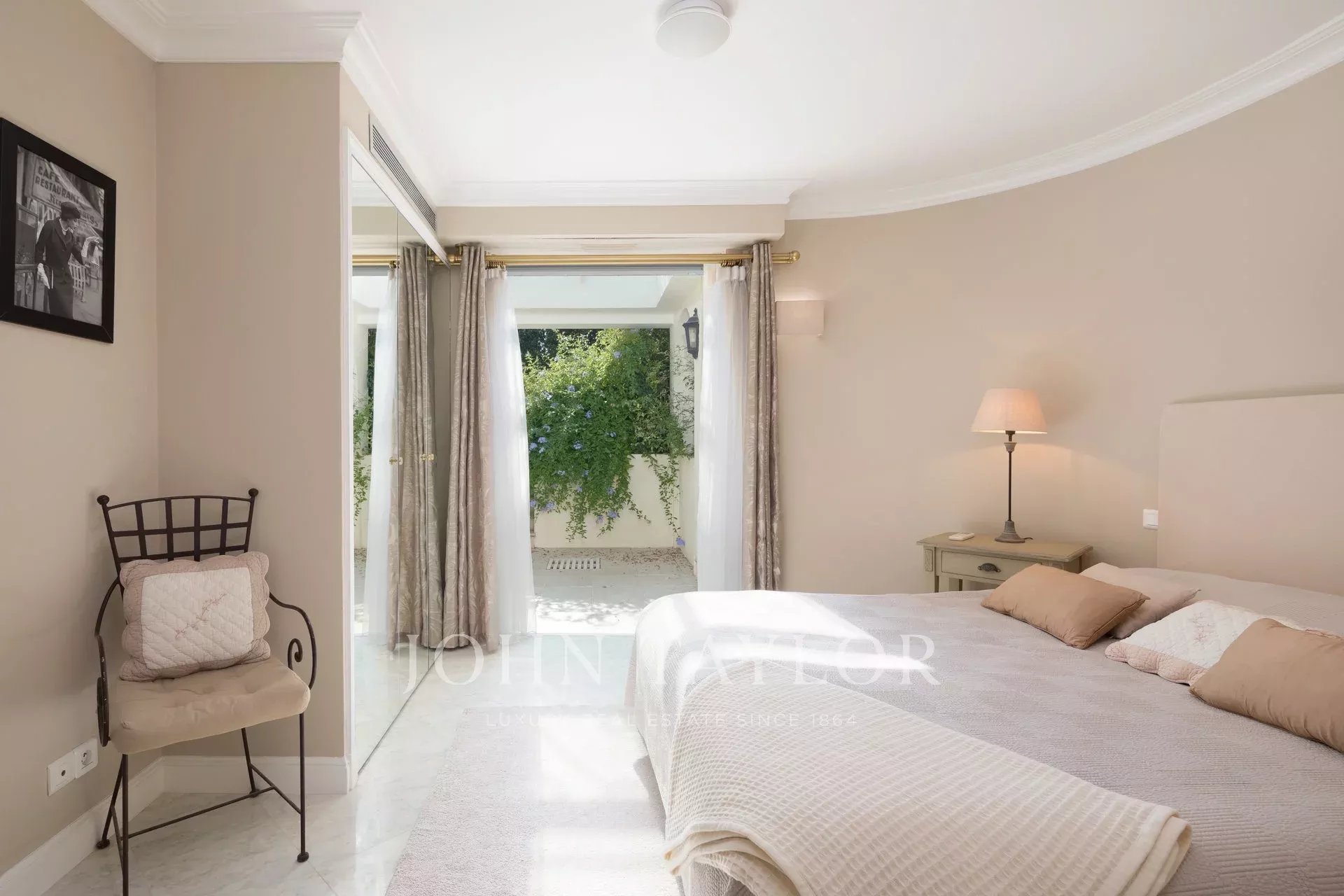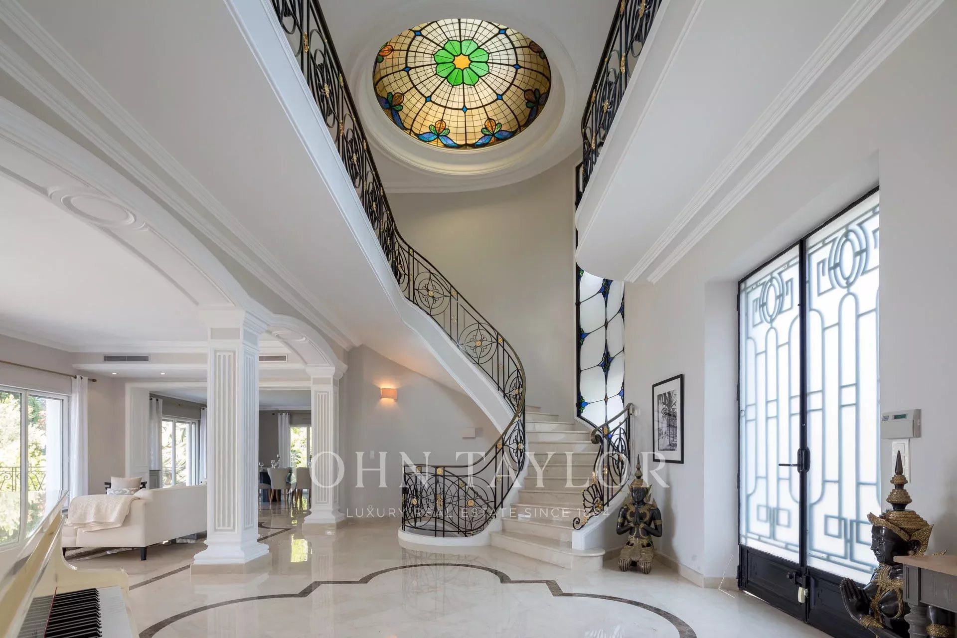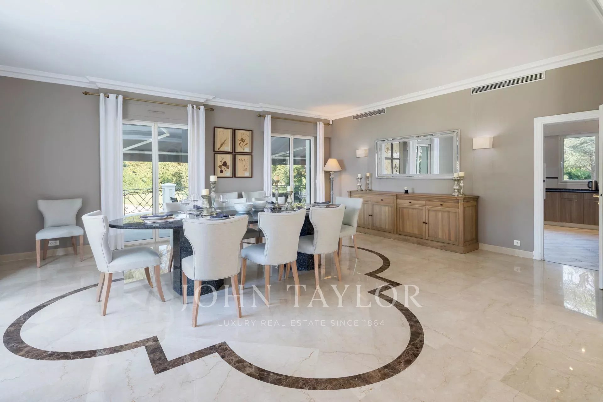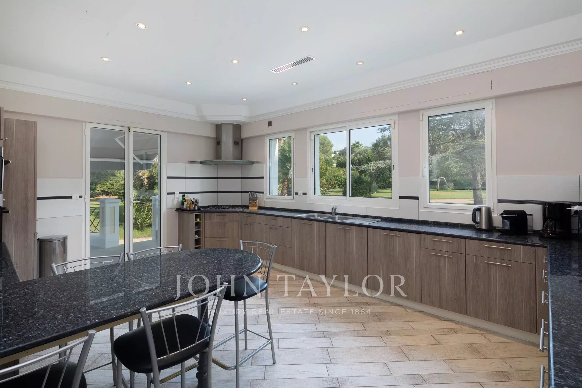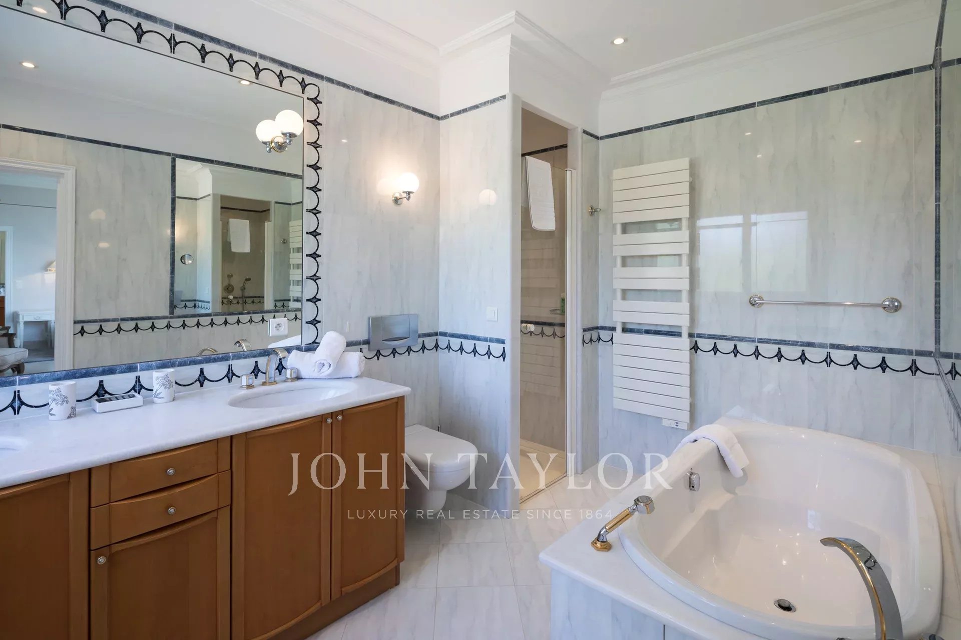 Nádherná třípodlažní nemovitost na bulváru Boulevard du Littoral. Nachází se jen několik minut chůze od hotelu Eden Roc a nabízí krásný výhled na záliv Juan Les Pins, ostrovy Lérins a Esterel. Kompletně zrekonstruovaný a klimatizovaný dům je obklopen 9 000 m2 dobře navrženého pozemku s trávníky, květinami a krásnými stromy.