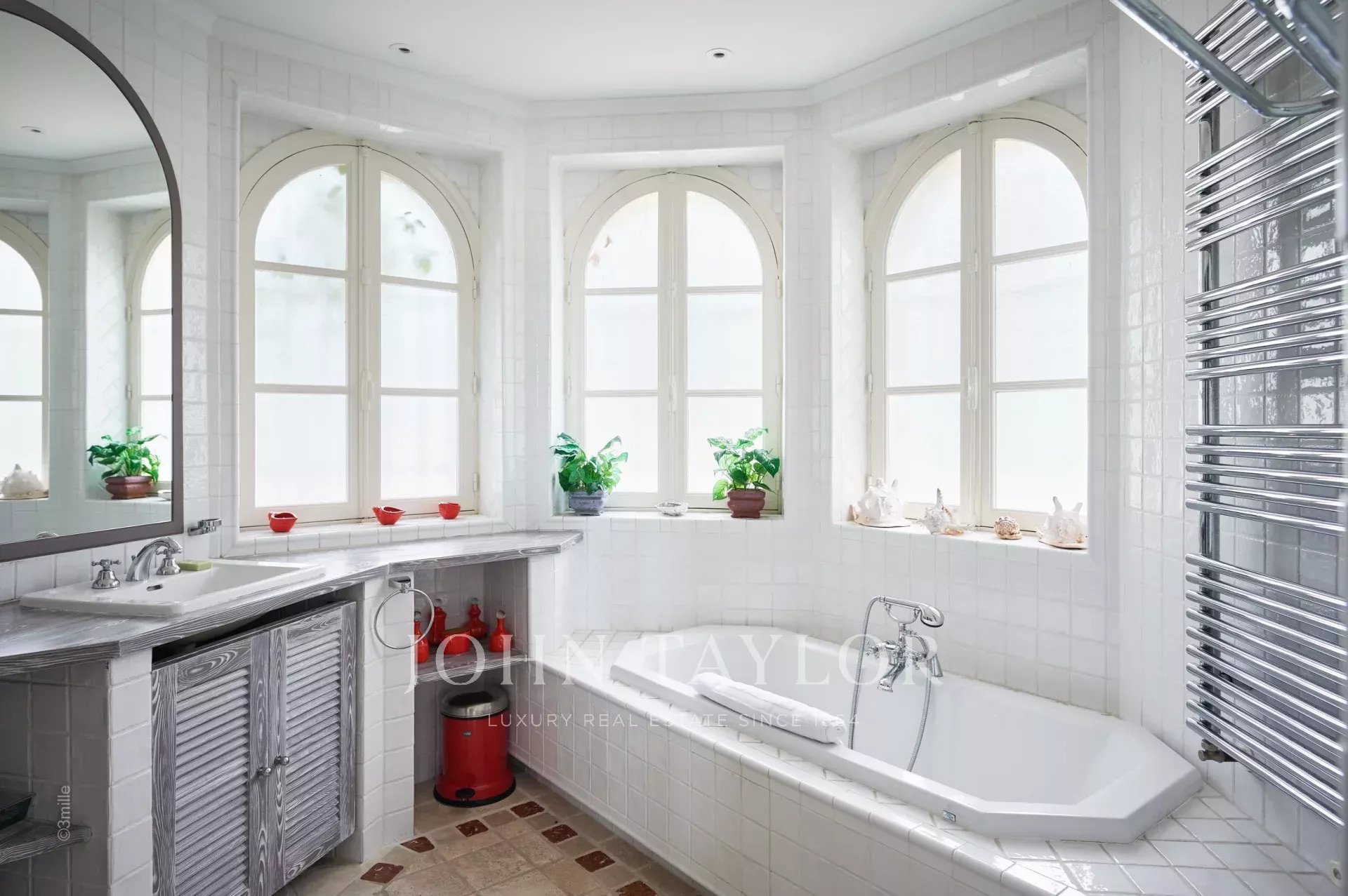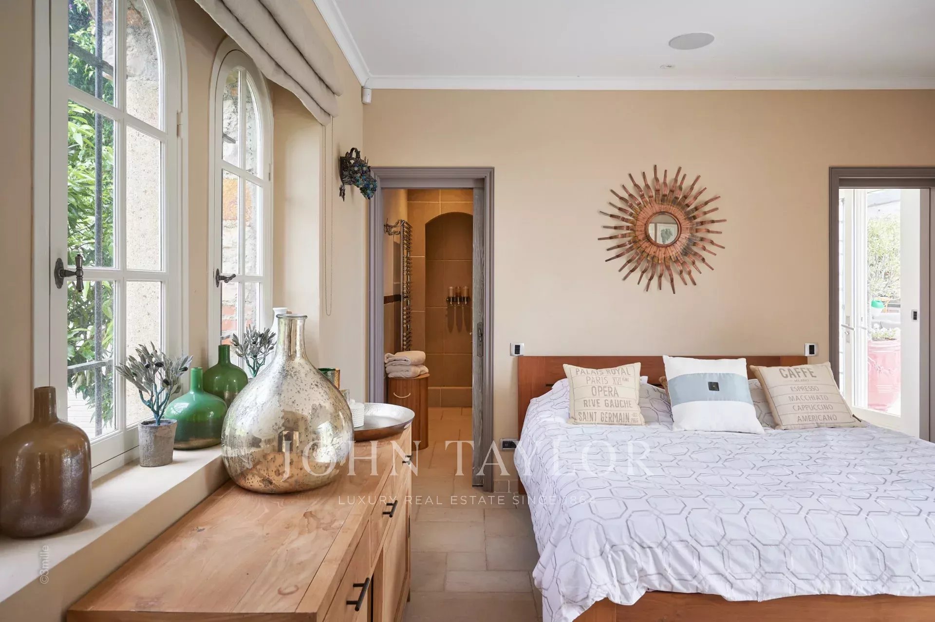 Nádherná bašta o rozloze 720 m2 se nachází v jedné z nejvyhledávanějších oblastí Cap d'Antibes, v blízkosti majáku Garoupe a jen několik minut jízdy od pláží Salis a přístavu Port de la Gallice. Tato plně klimatizovaná nemovitost, která je oázou klidu v srdci vynikajícího parku o rozloze 8 800 m2, se může pochlubit řadou jemných prvků a je zařízena podle nejvyšších standardů, takže je ideální pro intimní dovolenou na Azurovém pobřeží! Všechny pokoje jsou mimořádně světlé a otevřeny na terasy, které vilu obklopují.
