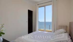 Ložnice (manželská postel), šatna, vstup na terasu, výhled na moře
