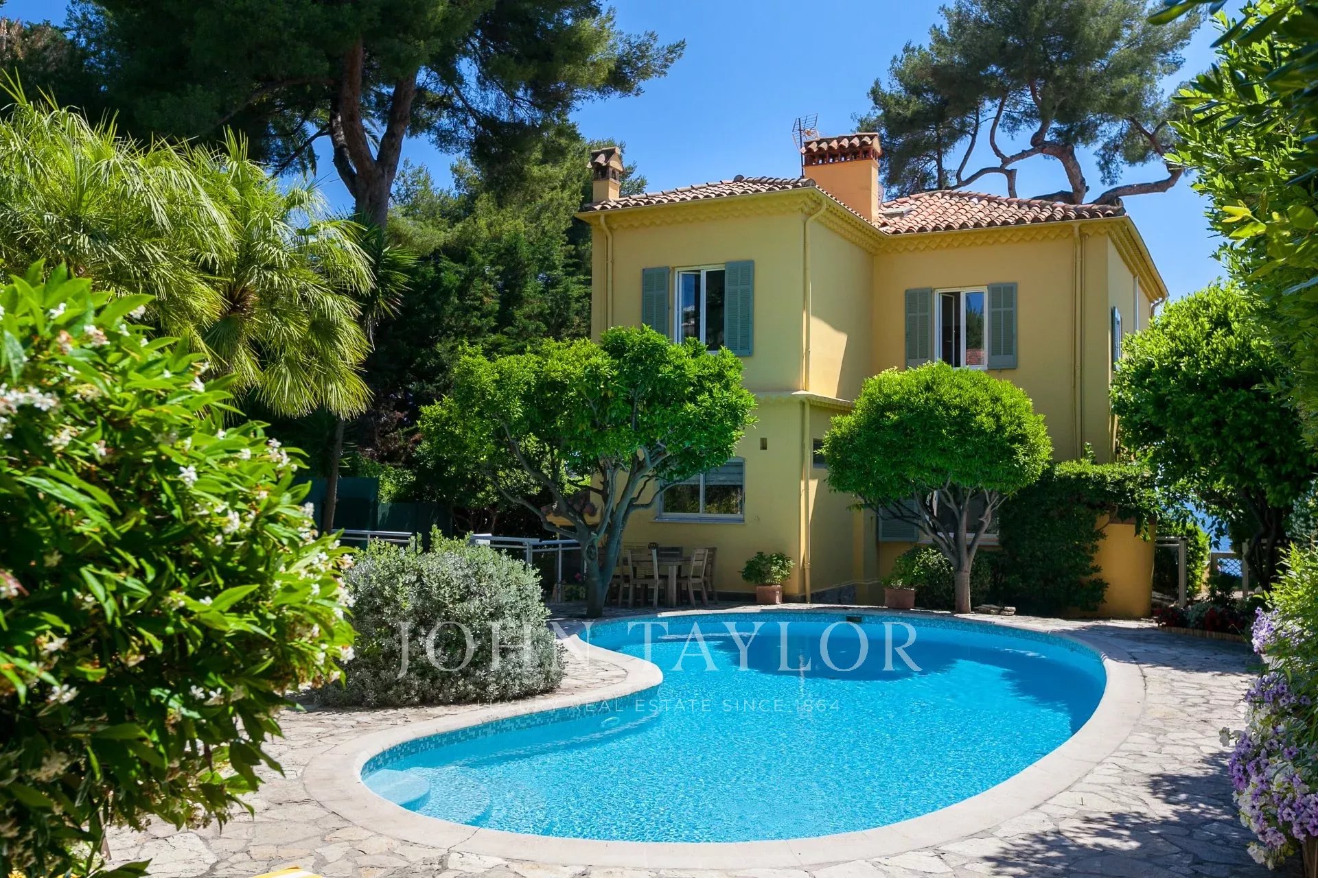 Komfortní dvoupatrový dům v provensálském stylu nedaleko města Juan-Les-Pins s výhledem na přístav Gallice a jeho pláže. Vynikající výhled na moře.