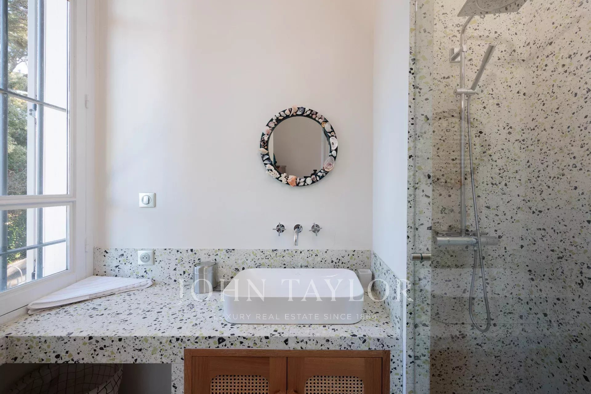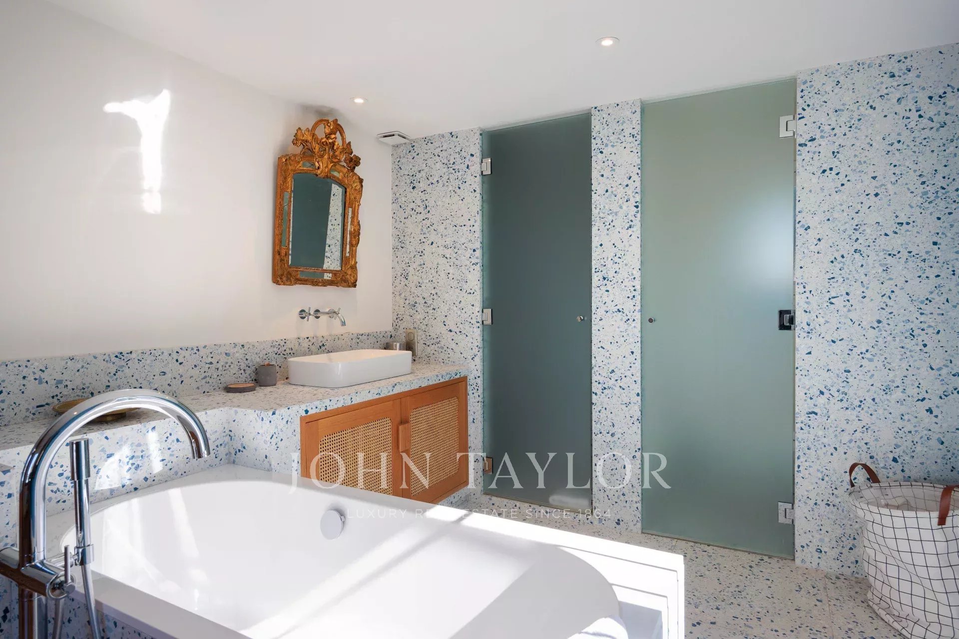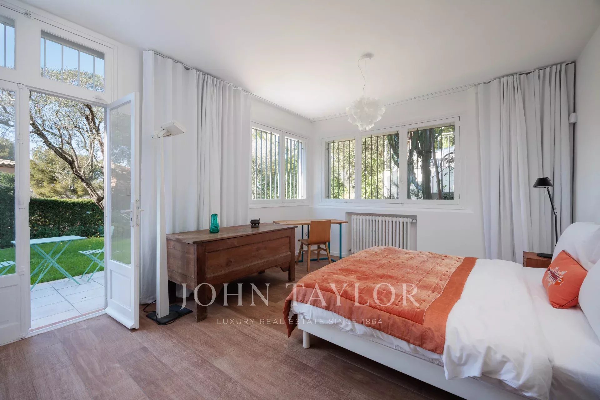 Tato vila z 30. let 20. století, která se nachází v blízkosti pláží La Garoupe a La Salis, byla v roce 2019 kompletně zrekonstruována v elegantním a moderním stylu, který respektuje stylistické prvky jejího původu, jako je freskový strop v obývacím pokoji.