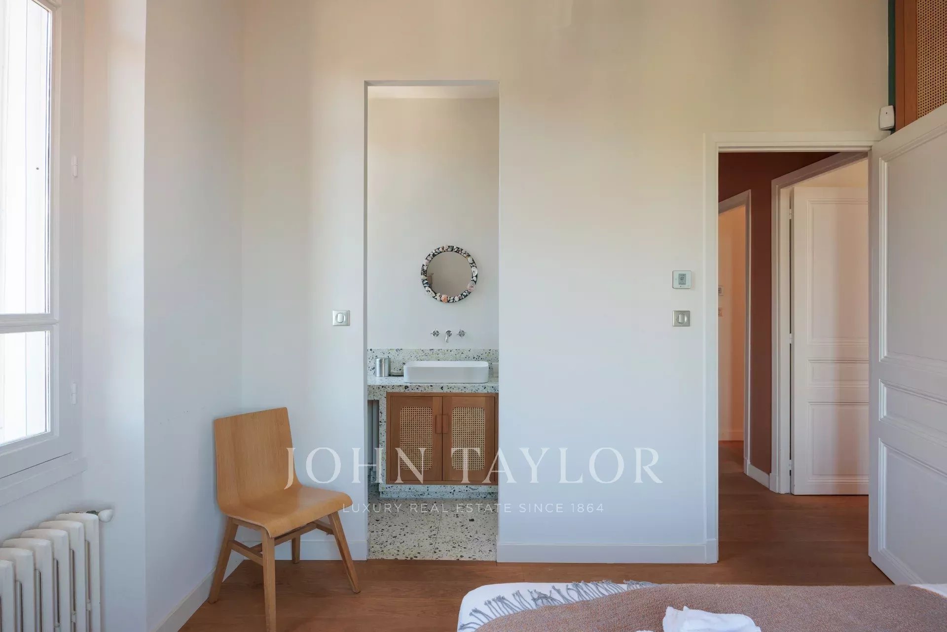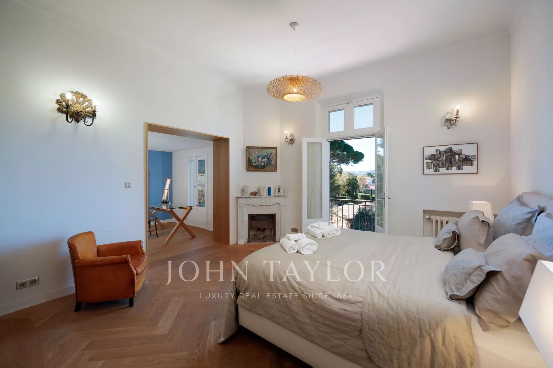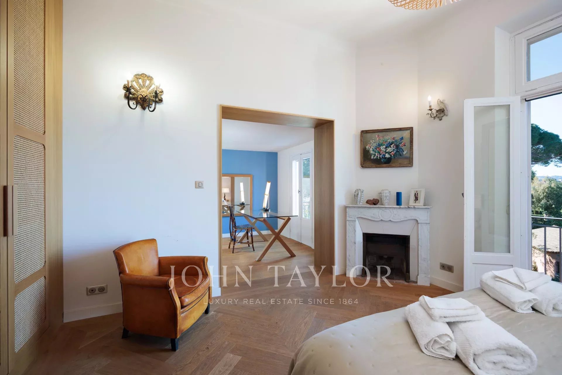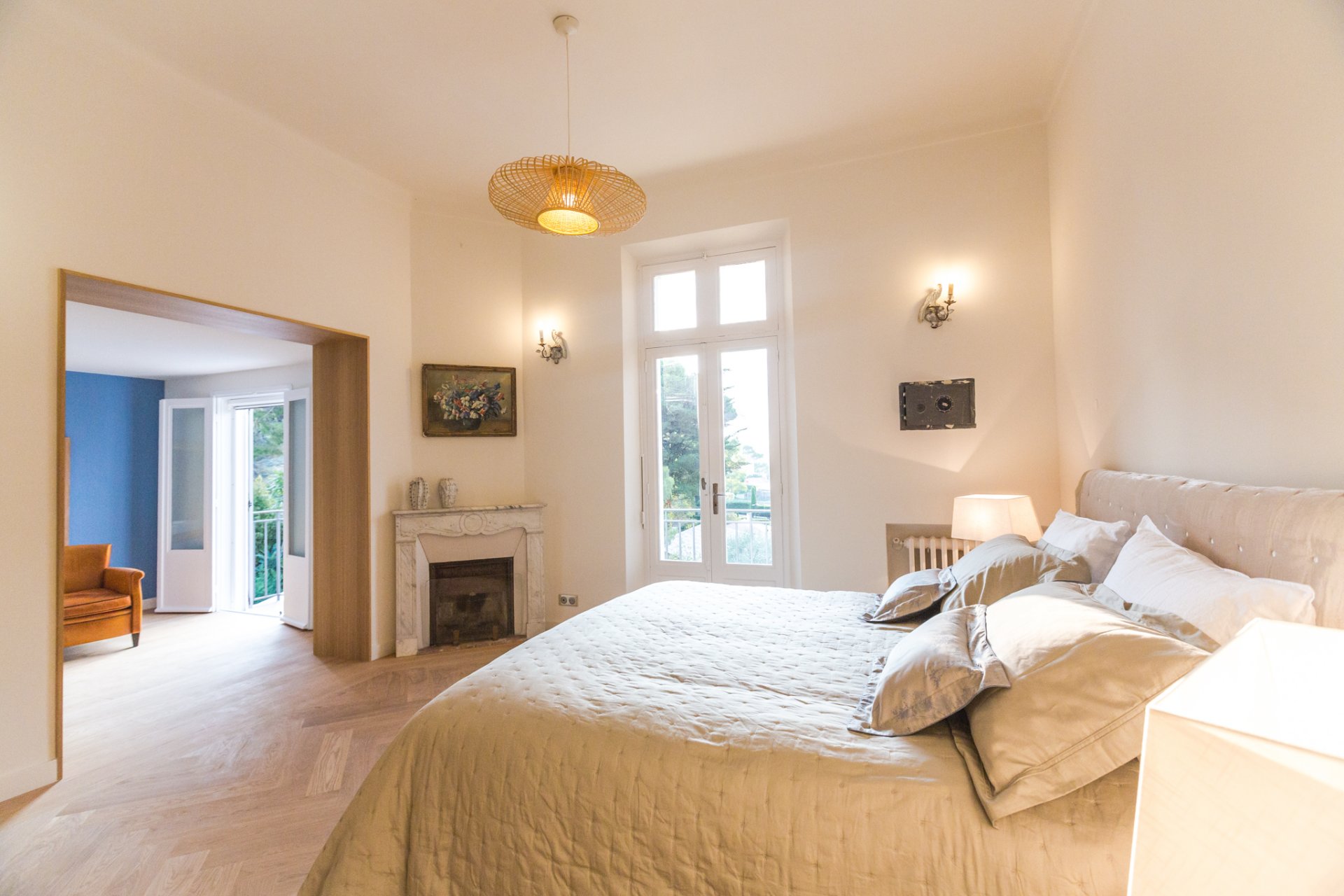 Tato vila z 30. let 20. století, která se nachází v blízkosti pláží La Garoupe a La Salis, byla v roce 2019 kompletně zrekonstruována v elegantním a moderním stylu, který respektuje stylistické prvky jejího původu, jako je freskový strop v obývacím pokoji.