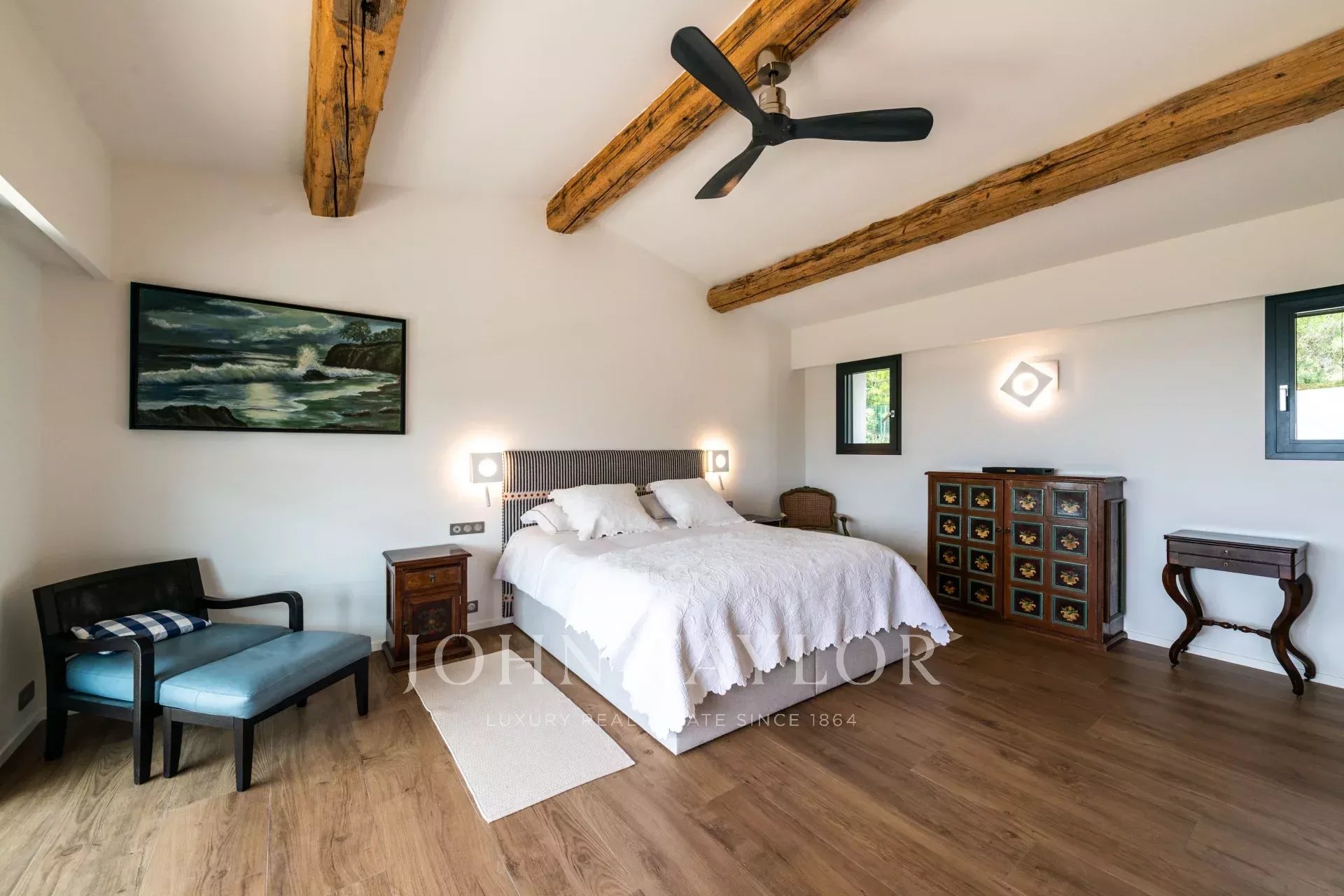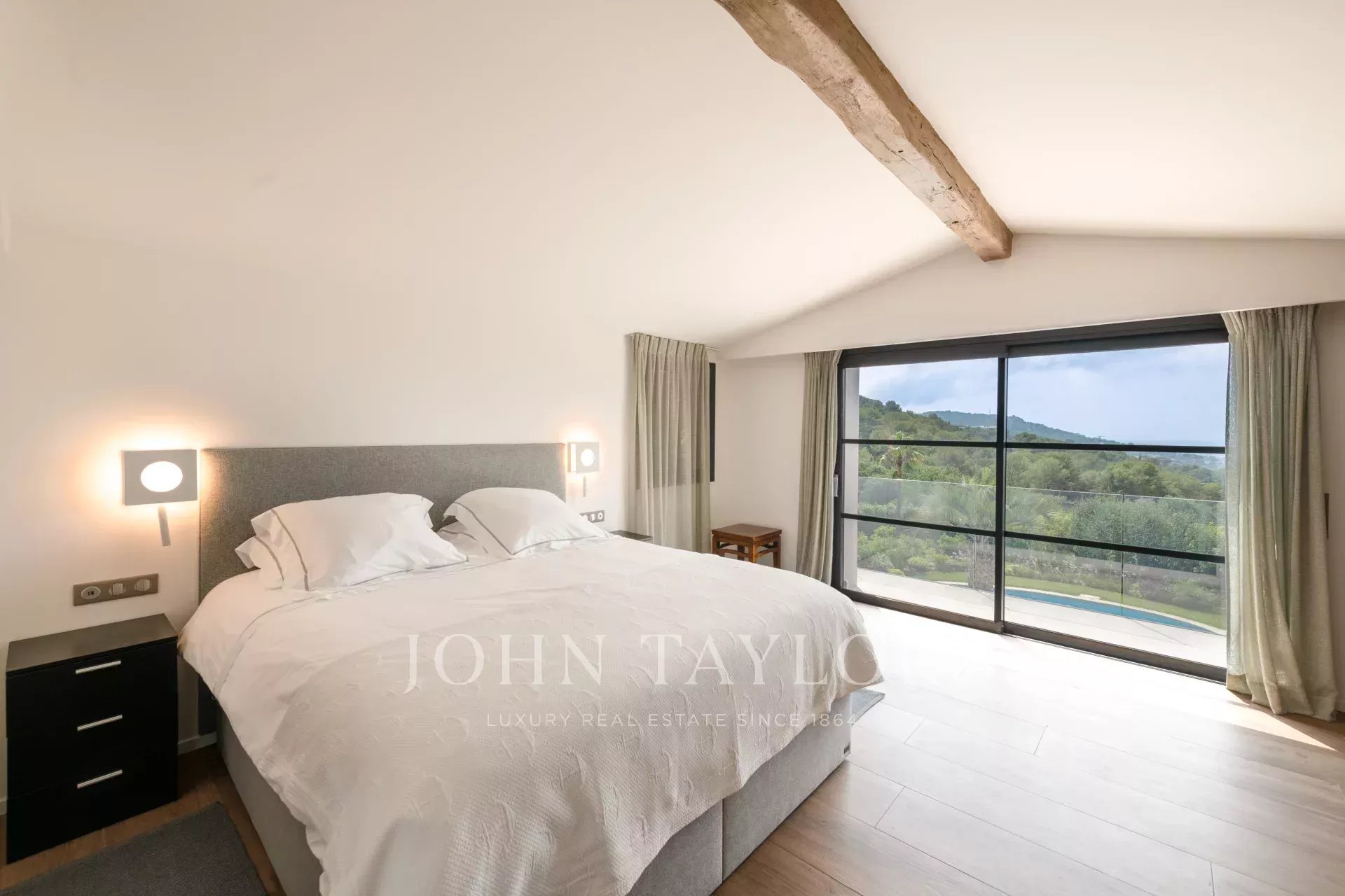 Tato luxusní klimatizovaná vila se nachází v klidné rezidenční čtvrti Mougins, v dosahu obchodů a vesnice, a nabízí ideální prostředí až pro 11 hostů. Těšit se můžete na vysokorychlostní Wi-Fi, velký zabezpečený bazén, tenisový kurt a nádherný výhled na moře ze zahrady a ložnic.