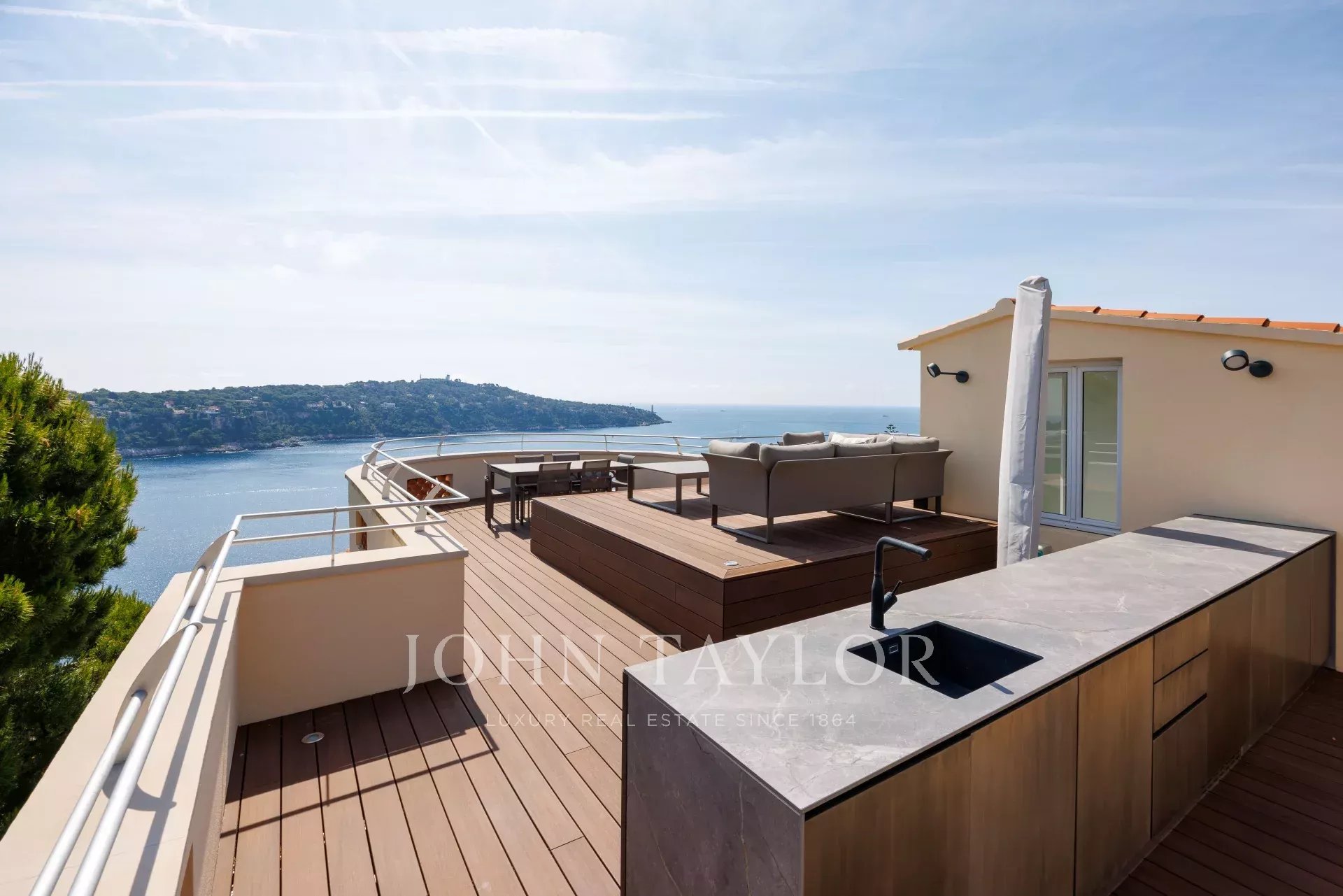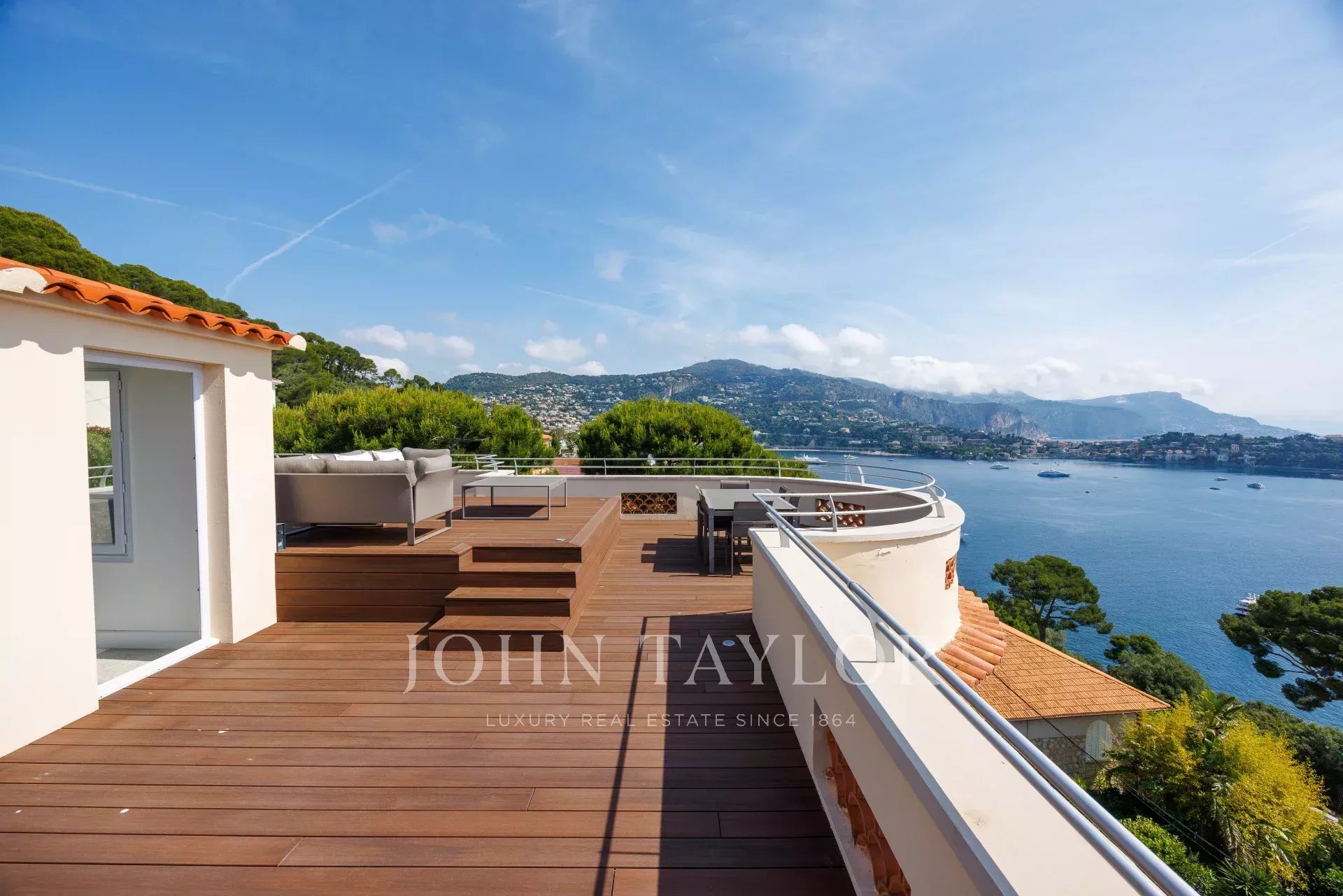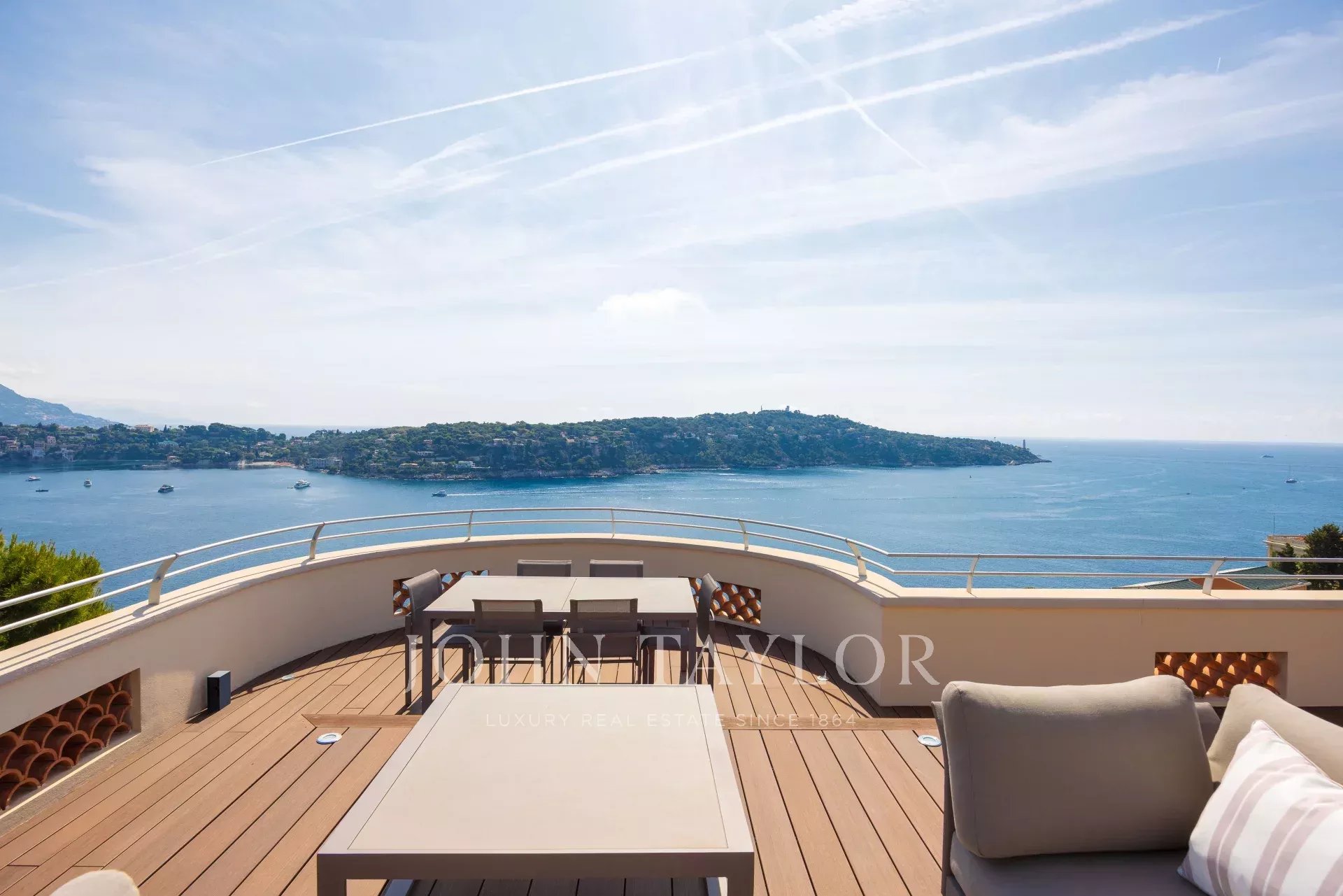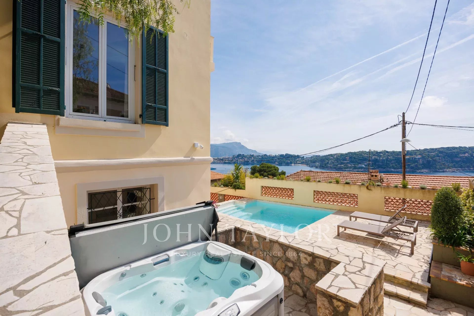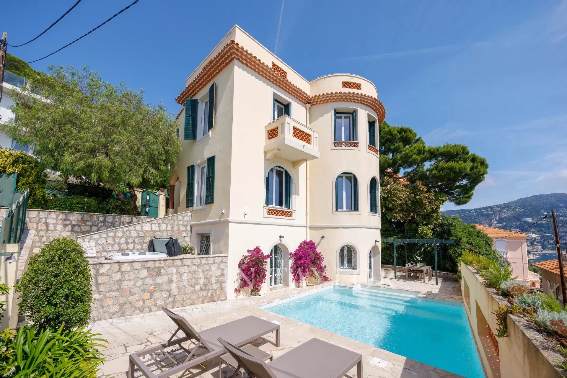Tato okouzlující, kompletně zrekonstruovaná vila o rozloze 208 m² se nachází jen pár kroků od Villefranche sur Mer a nabízí panoramatický výhled na moře a prestižní mys Cap Ferrat.