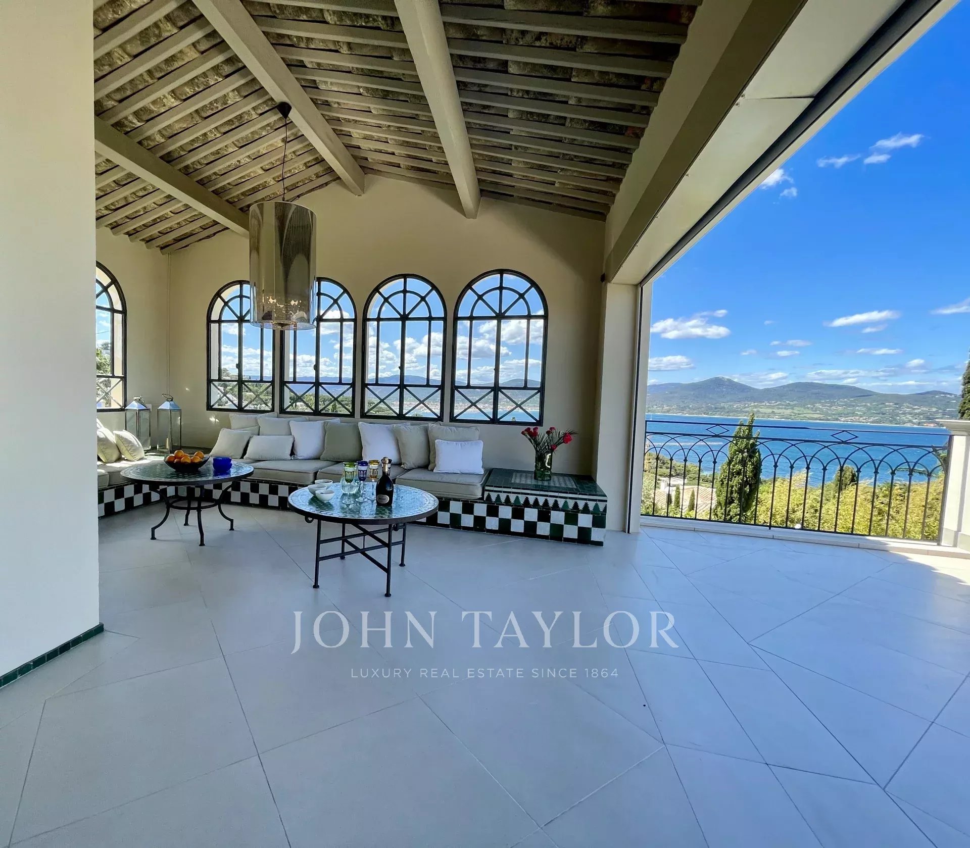 Tato krásná vila se nachází na klidném místě a nabízí dvojitý výhled na moře, Grimaud a Saint-Tropez.