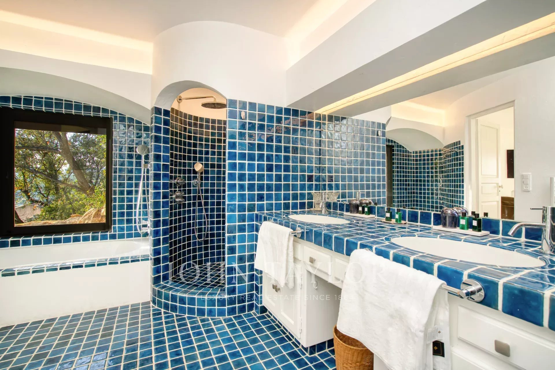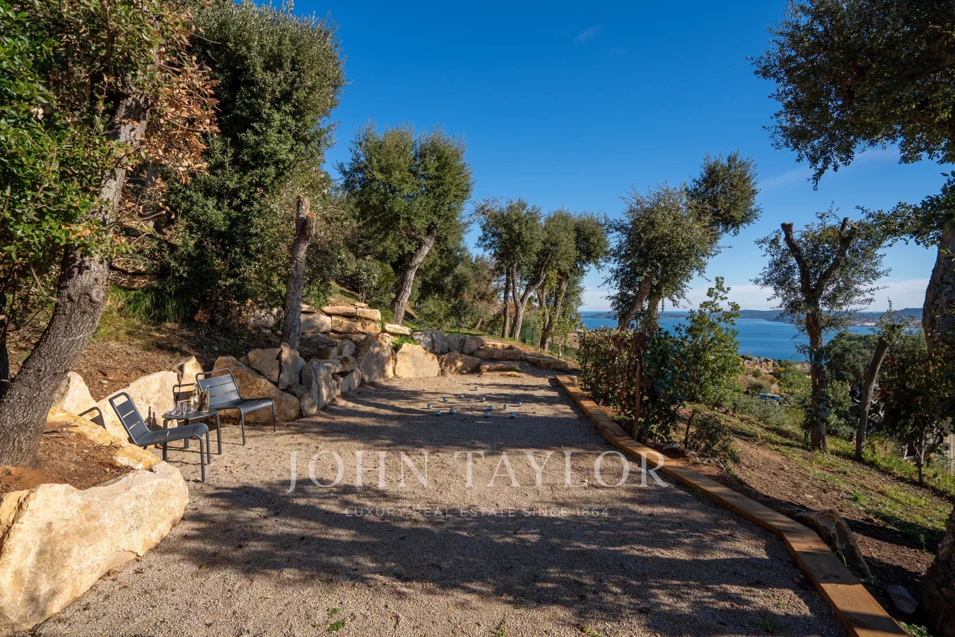 Vila se může pochlubit také bohatým exteriérem s více než 2000 m² středomořské zahrady. V dolní části zahrady se nachází hřiště na pétanque, které se stane místem společenského posezení zejména v době tradičního středomořského aperitivu. Sportovní nadšence potěší stůl na stolní tenis, stolní fotbal, vyhřívaný bazén a posilovna vybavená zařízením TechnoGym.
