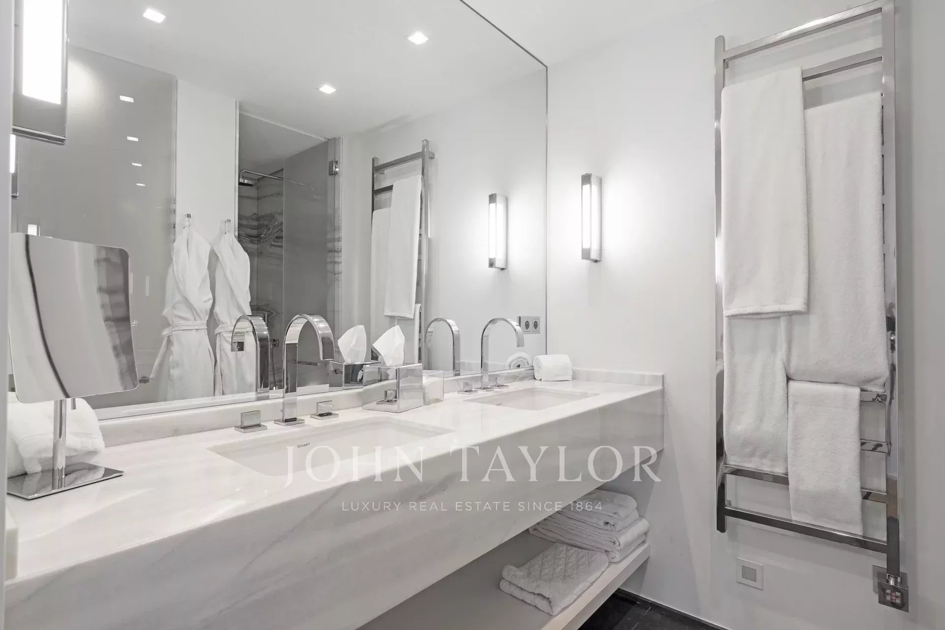Úroveň zahrady: 2 apartmány s koupelnami, 2 ložnice se sprchou, ložnice se sprchou, 2 ložnice pro personál se sprchou. Prádelna s úložným prostorem