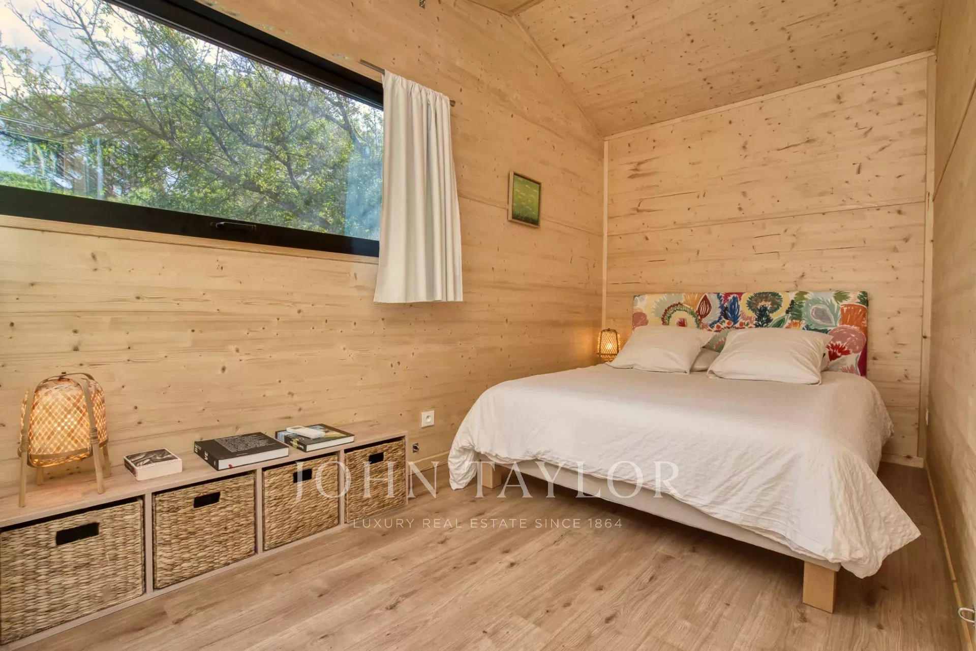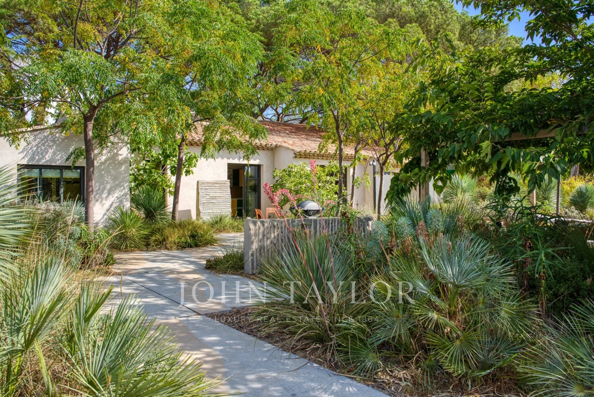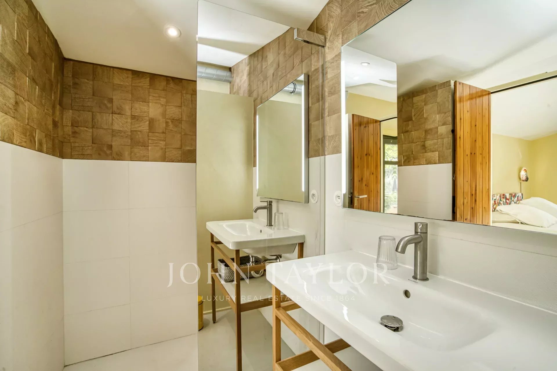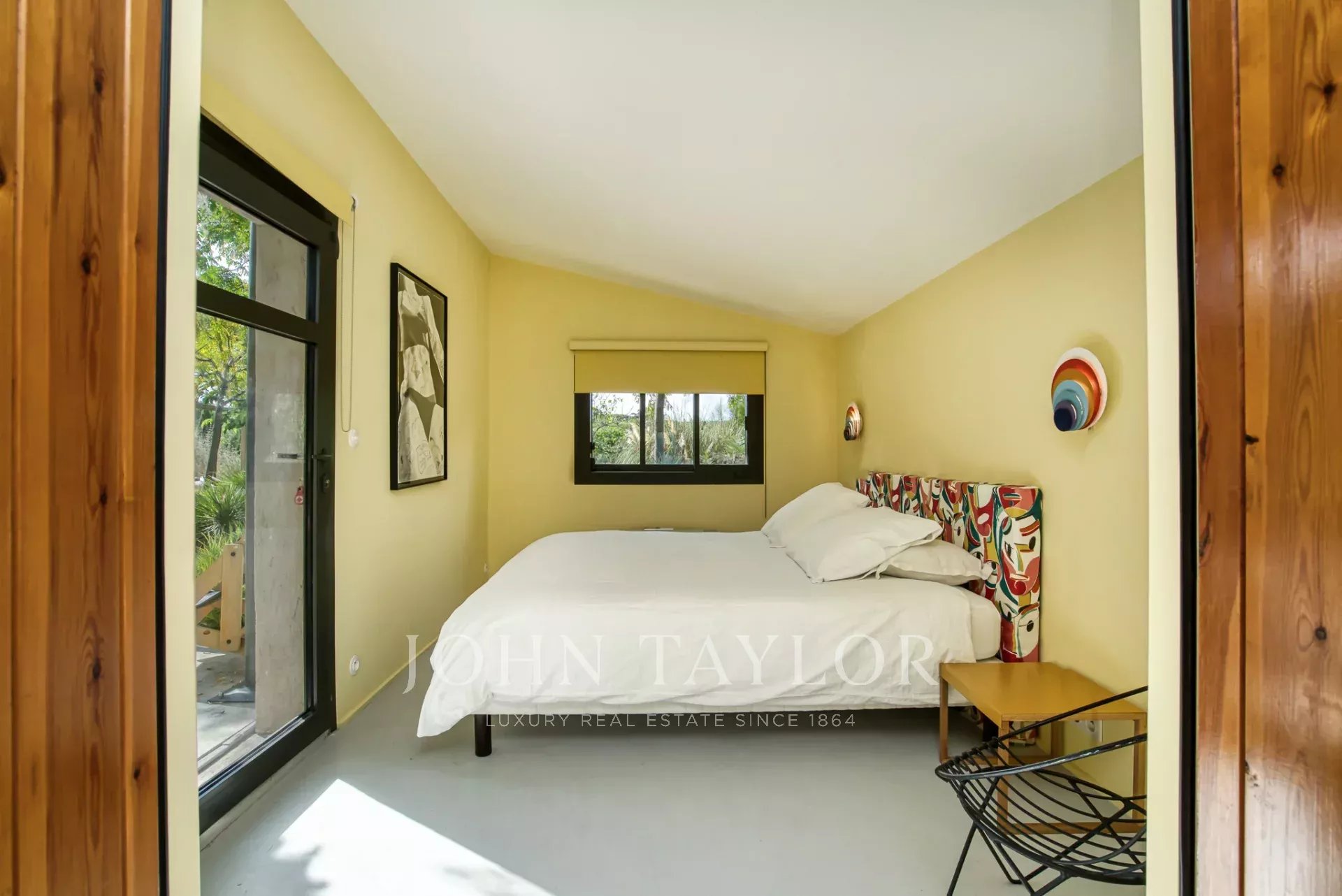 Tato pečlivě zrekonstruovaná nemovitost o rozloze 220 m2, která kdysi sloužila jako umělecký ateliér, vyzařuje charakter a šarm. Je plně klimatizovaná a pyšní se svěží zahradou o rozloze přibližně 5 000 m2, pečlivě vytvořenou renomovanými zahradníky Essard et Maurieres, s exkluzivním přístupem k zálivu Canoubiers.
