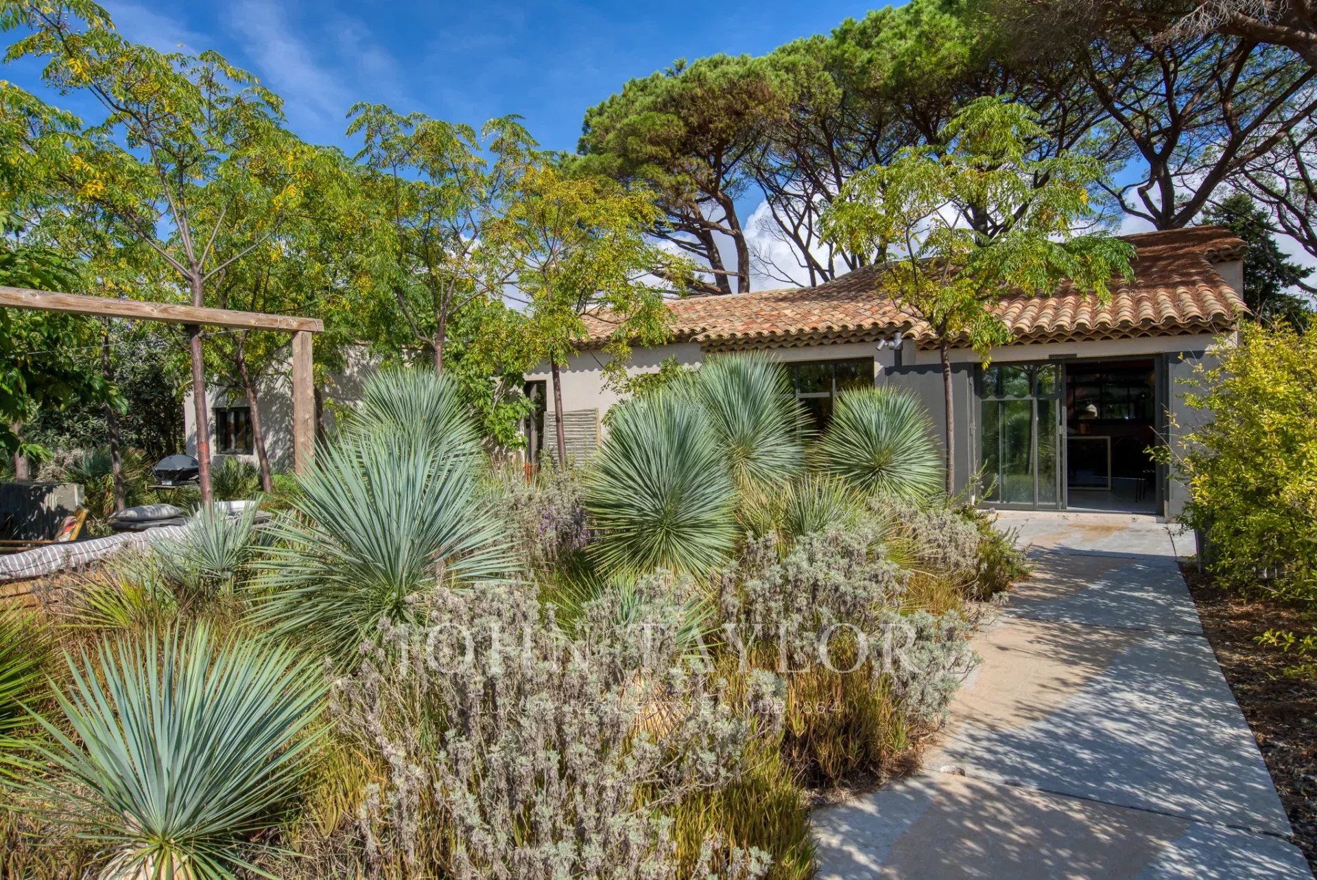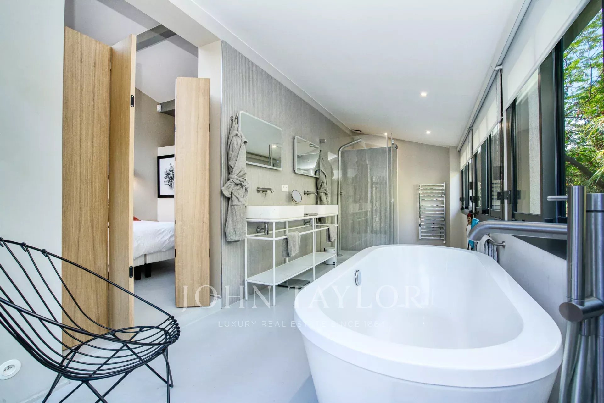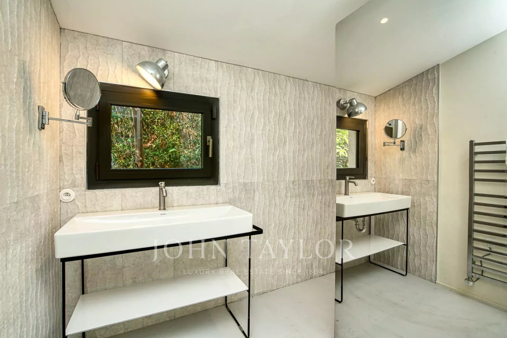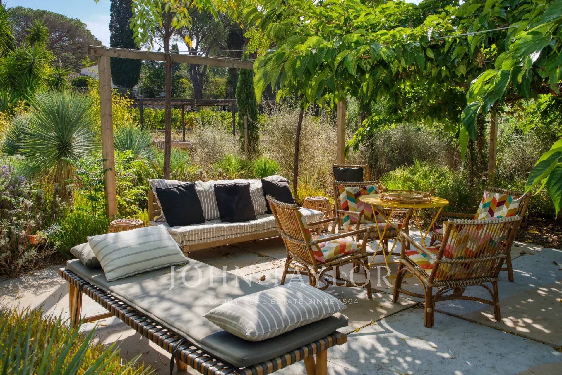 Tato pečlivě zrekonstruovaná nemovitost o rozloze 220 m2, která kdysi sloužila jako umělecký ateliér, vyzařuje charakter a šarm. Je plně klimatizovaná a pyšní se svěží zahradou o rozloze přibližně 5 000 m2, pečlivě vytvořenou renomovanými zahradníky Essard et Maurieres, s exkluzivním přístupem k zálivu Canoubiers.