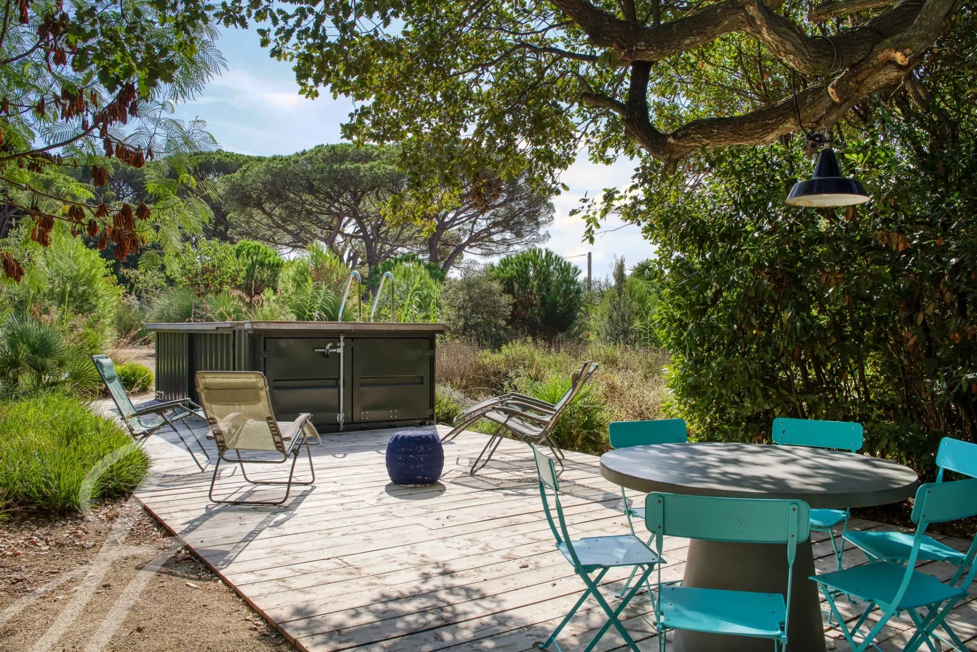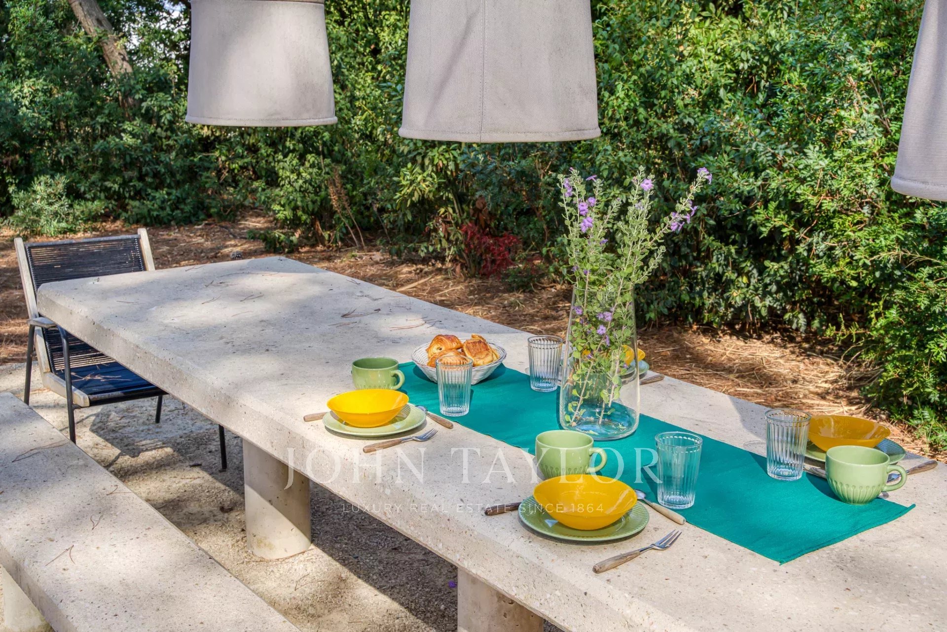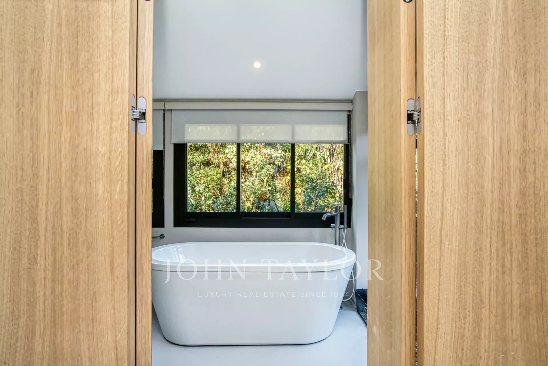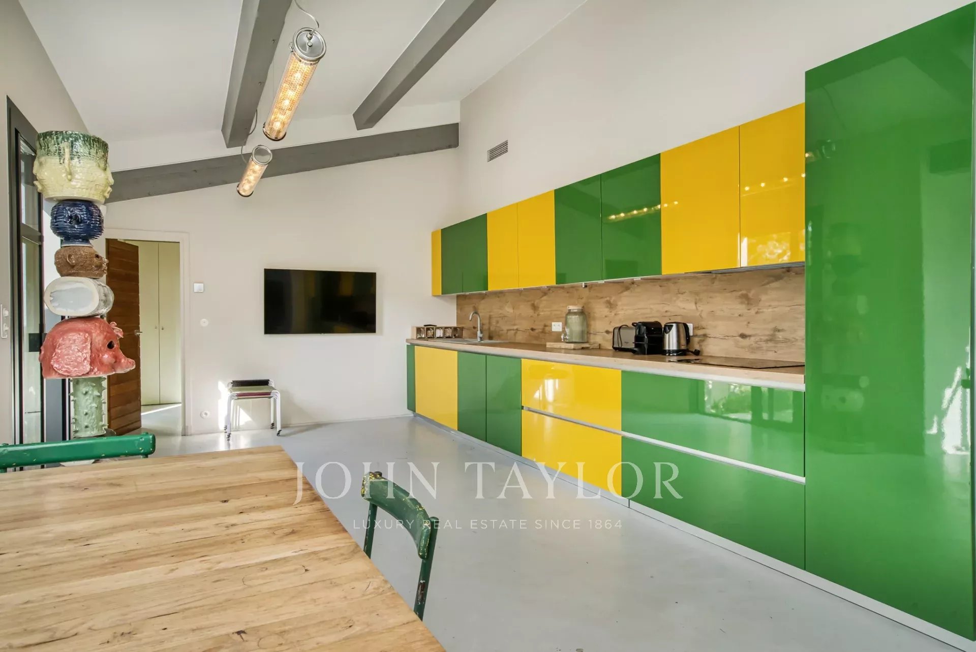 Tato pečlivě zrekonstruovaná nemovitost o rozloze 220 m2, která kdysi sloužila jako umělecký ateliér, vyzařuje charakter a šarm. Je plně klimatizovaná a pyšní se svěží zahradou o rozloze přibližně 5 000 m2, pečlivě vytvořenou renomovanými zahradníky Essard et Maurieres, s exkluzivním přístupem k zálivu Canoubiers.