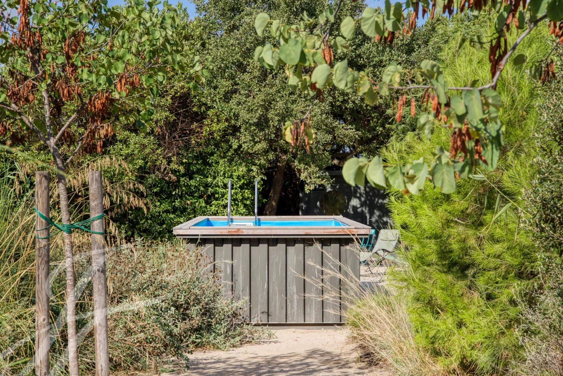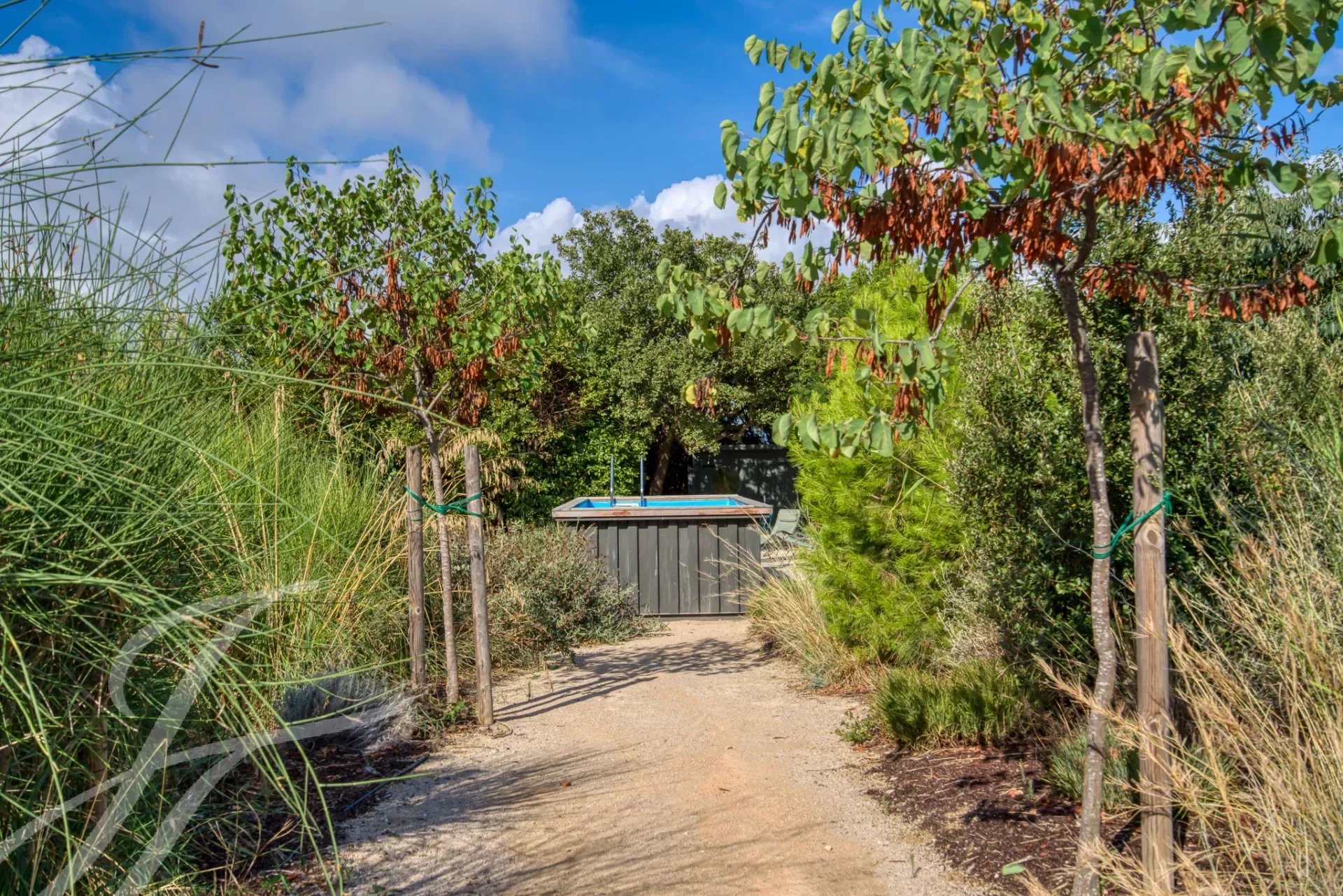 Samostatný modul navíc zahrnuje ložnici s vlastní sprchou. Bazén dodává nemovitosti jedinečný nádech.