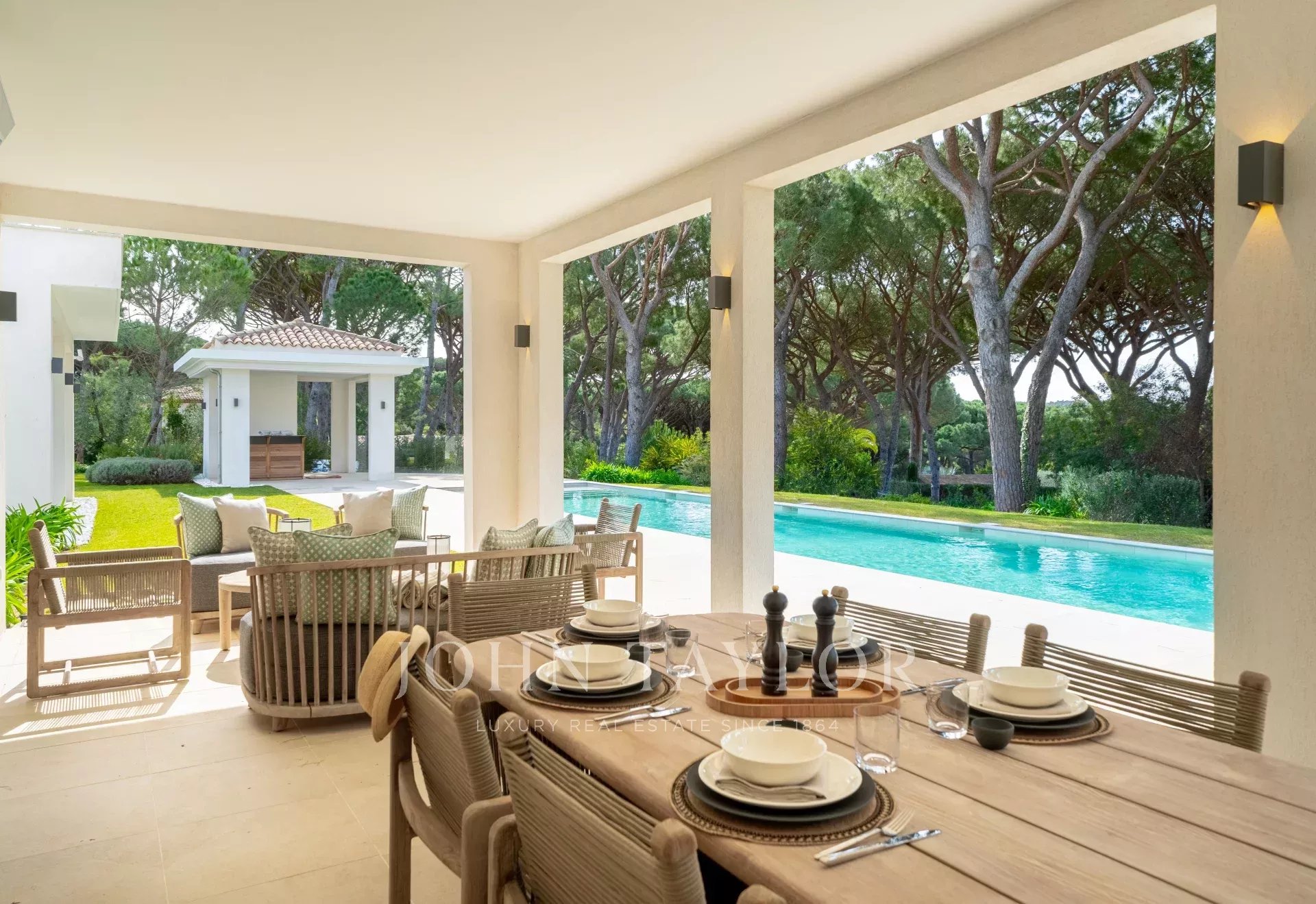 Vynikající novostavba v klidné slepé uličce v Parcs de Saint-Tropez nabízí idylické rodinné bydlení, které se skládá z :