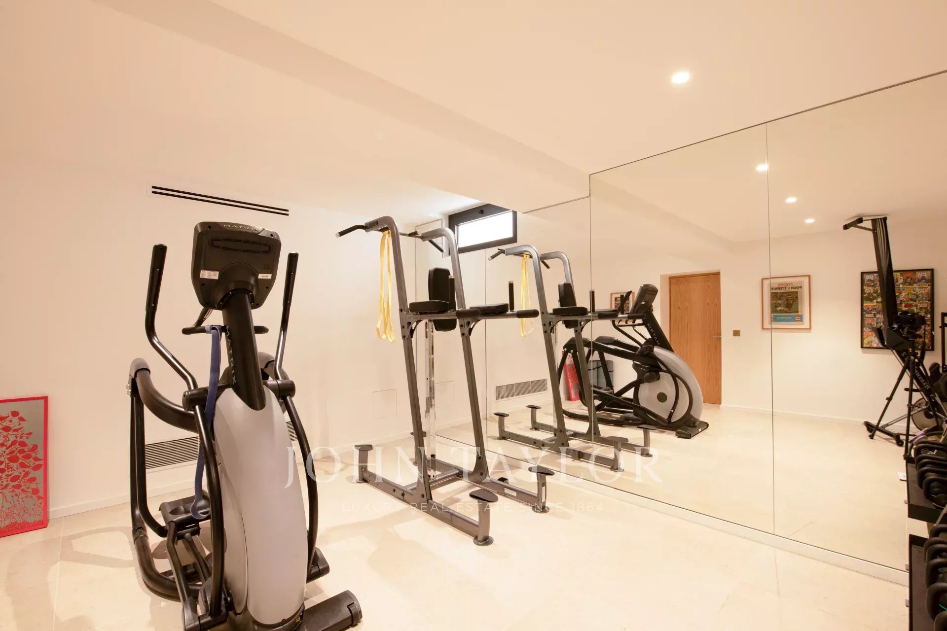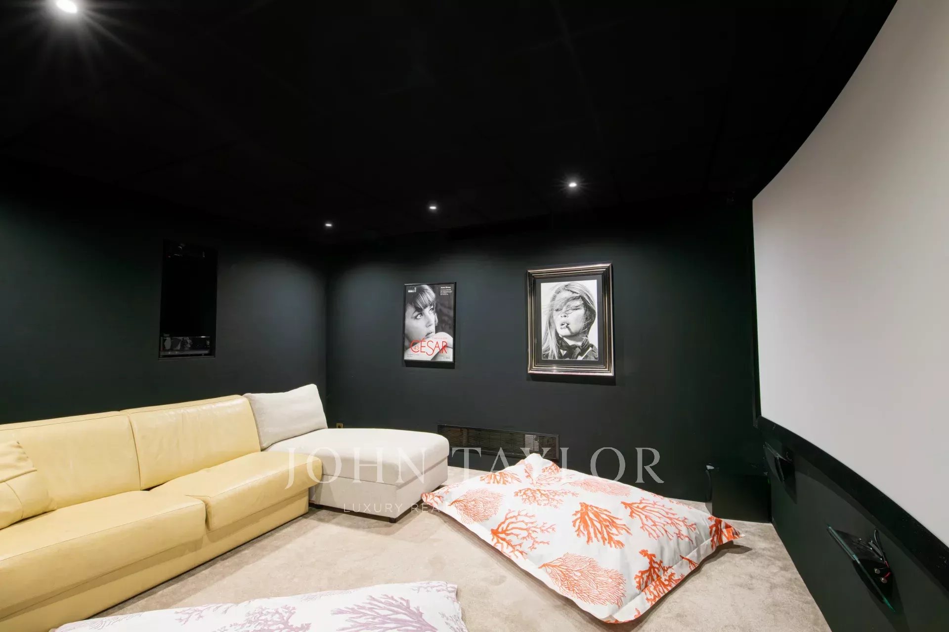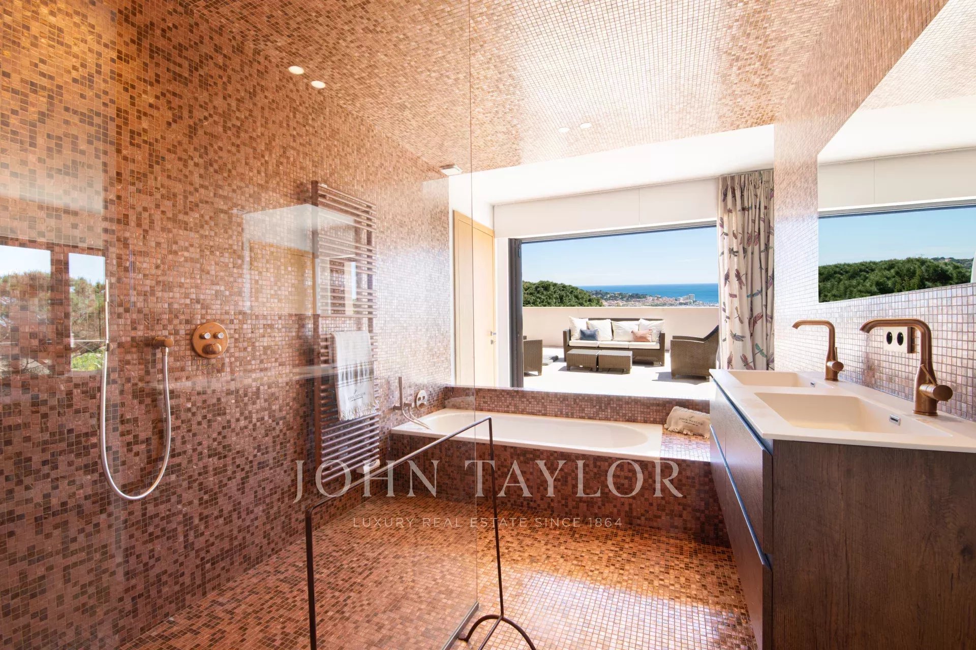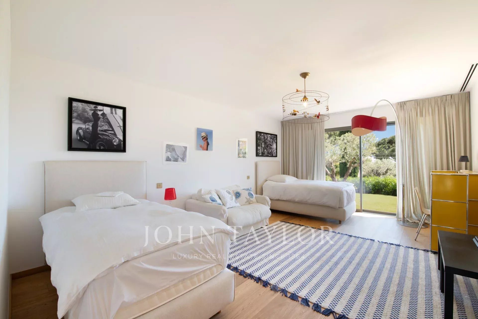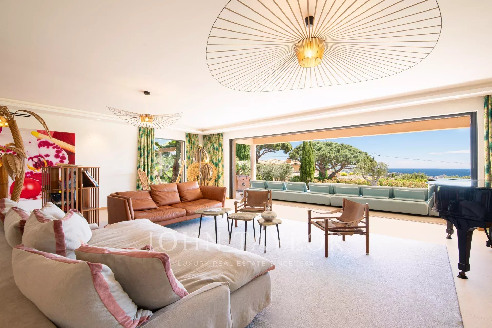 Tento moderní dům se otevírá do velkého obývacího pokoje, jídelny a plně vybavené kuchyně (dvě myčky, dvě lednice, trouba, mikrovlnná trouba, indukční varná deska, mrazák a veškeré kuchyňské náčiní). Obývací pokoj s velkými okny, která se zcela otevírají, nabízí úchvatný výhled do zahrady a na Středozemní moře.