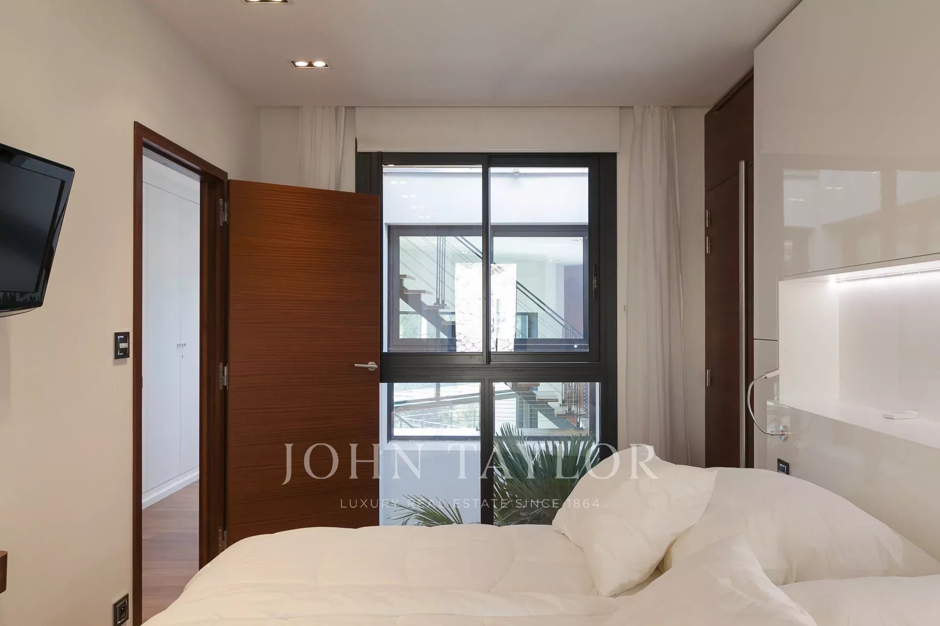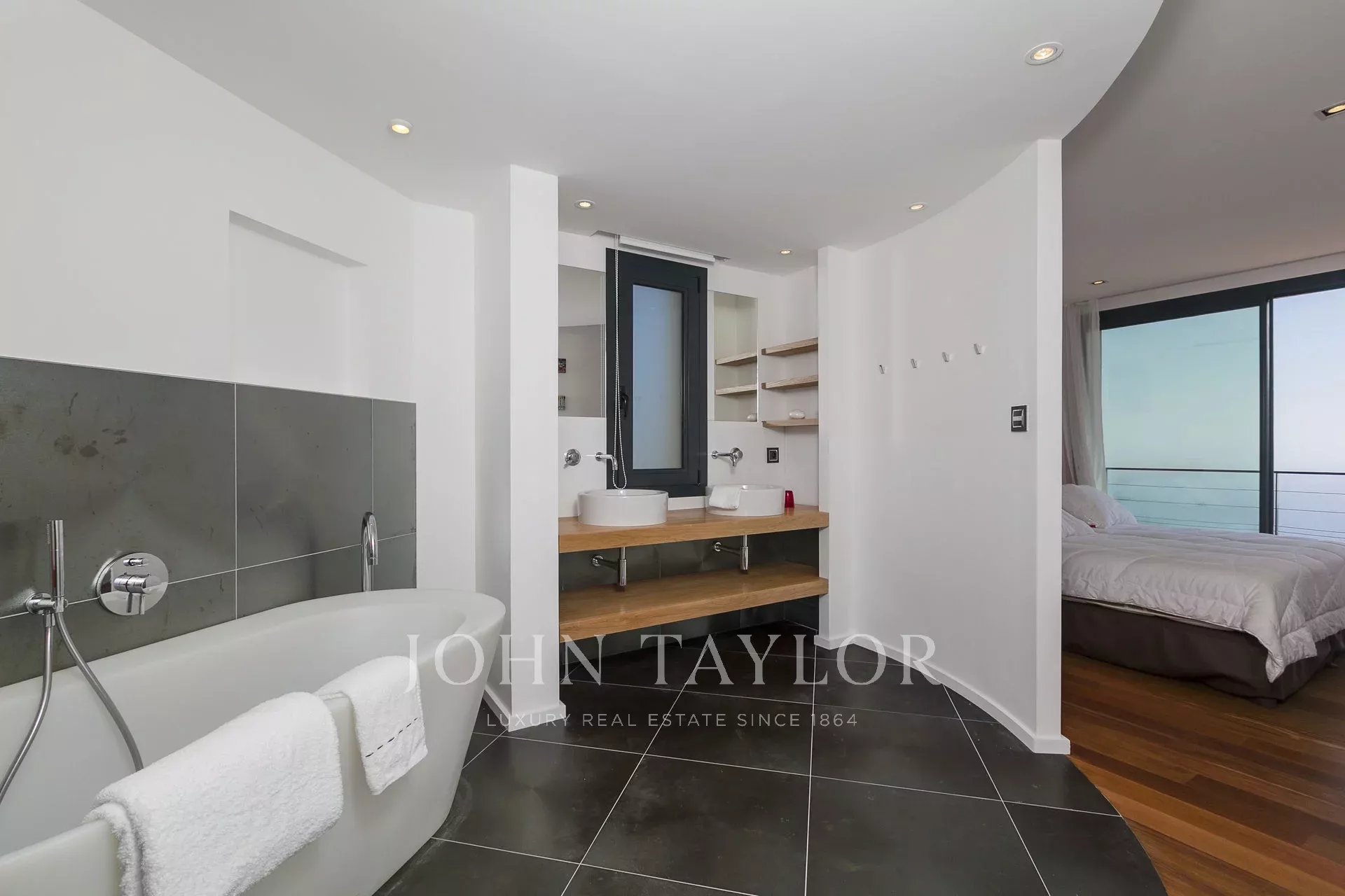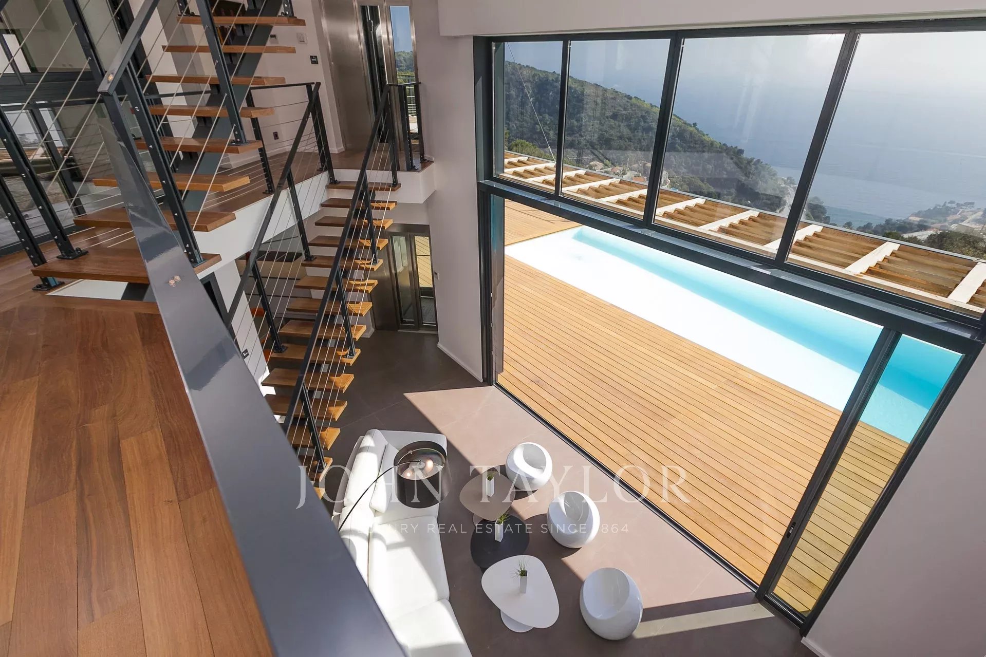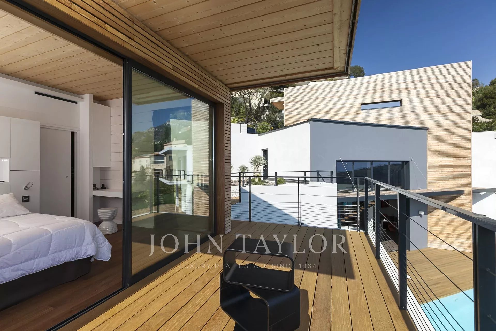 Vynikající moderní vila s obytnou plochou cca 350 m² na pozemku o rozloze 2 200 m², která se nachází na výšinách Eze v rezidenční čtvrti s nádherným výhledem na moře a kopce. Vila se skládá z 5 ložnic, z nichž každá má vlastní koupelnu nebo sprchový kout, obývacího pokoje otevřeného na rozlehlou terasu s vyhřívaným bazénem, jídelního koutu, plně vybavené kuchyně s poloprofesionální kuchyňskou linkou. Dům pro hosty s ložnicí a vlastní sprchou.