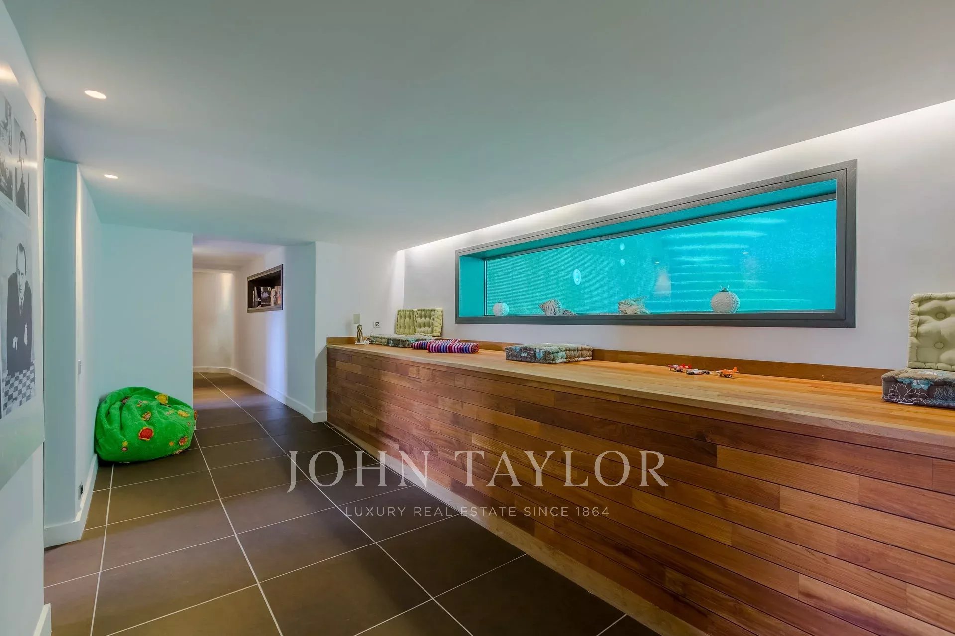 Skládá se z obývacího pokoje, jídelny, plně vybavené kuchyně, pěti ložnic, pěti koupelen, spousty úložných prostor a vyhřívaného bazénu.