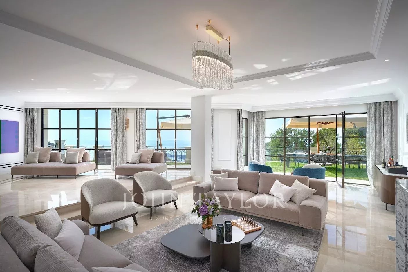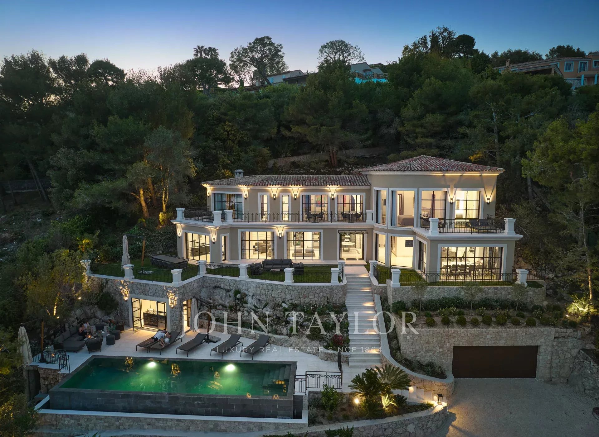 Tato vynikající vila o rozloze 450 m², která se nachází na mimořádně bezpečném pozemku v kopcích nad Villefranche Sur Mer, prošla kompletní rekonstrukcí a může se pochlubit jedním z nejkrásnějších výhledů na Azurovém pobřeží.