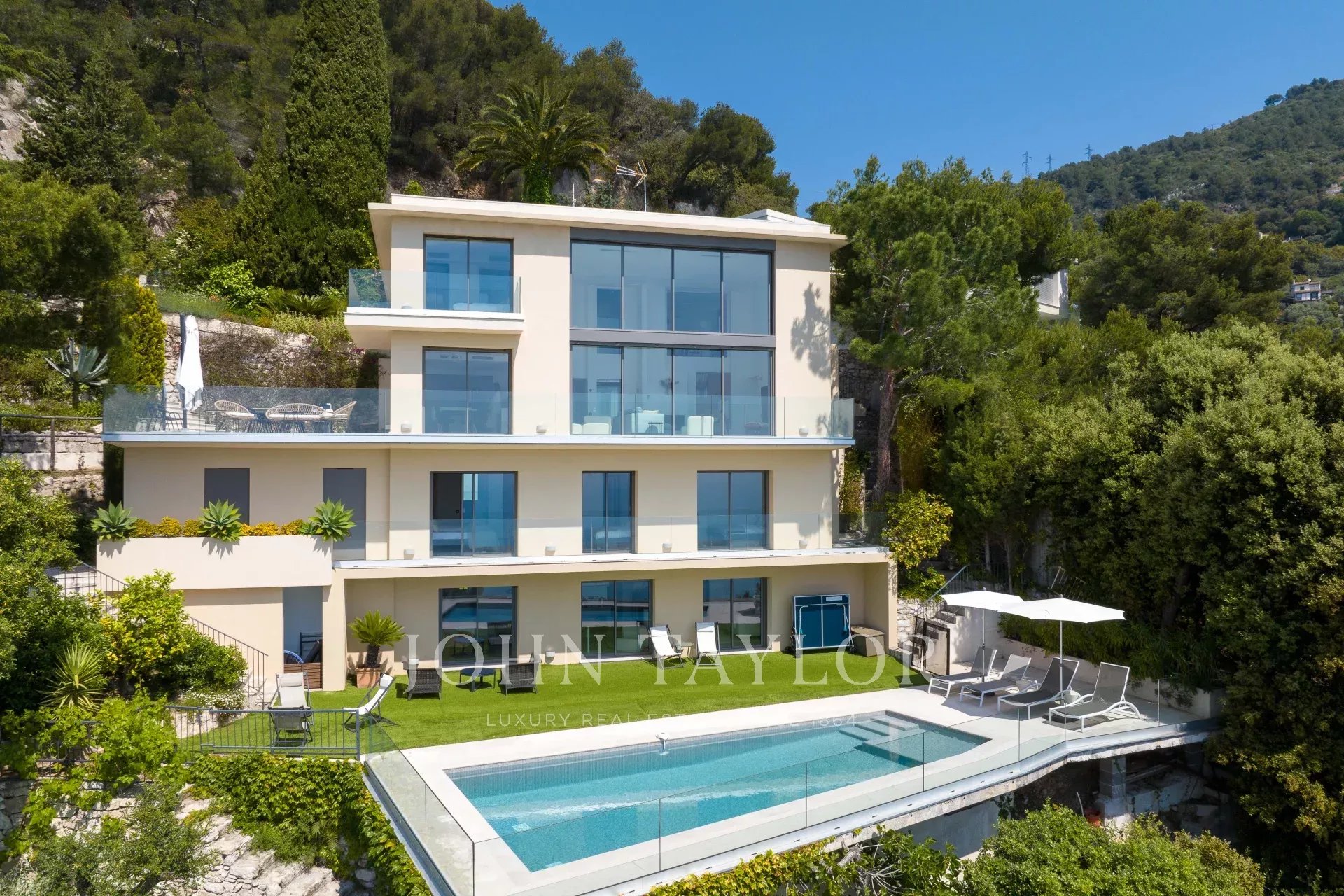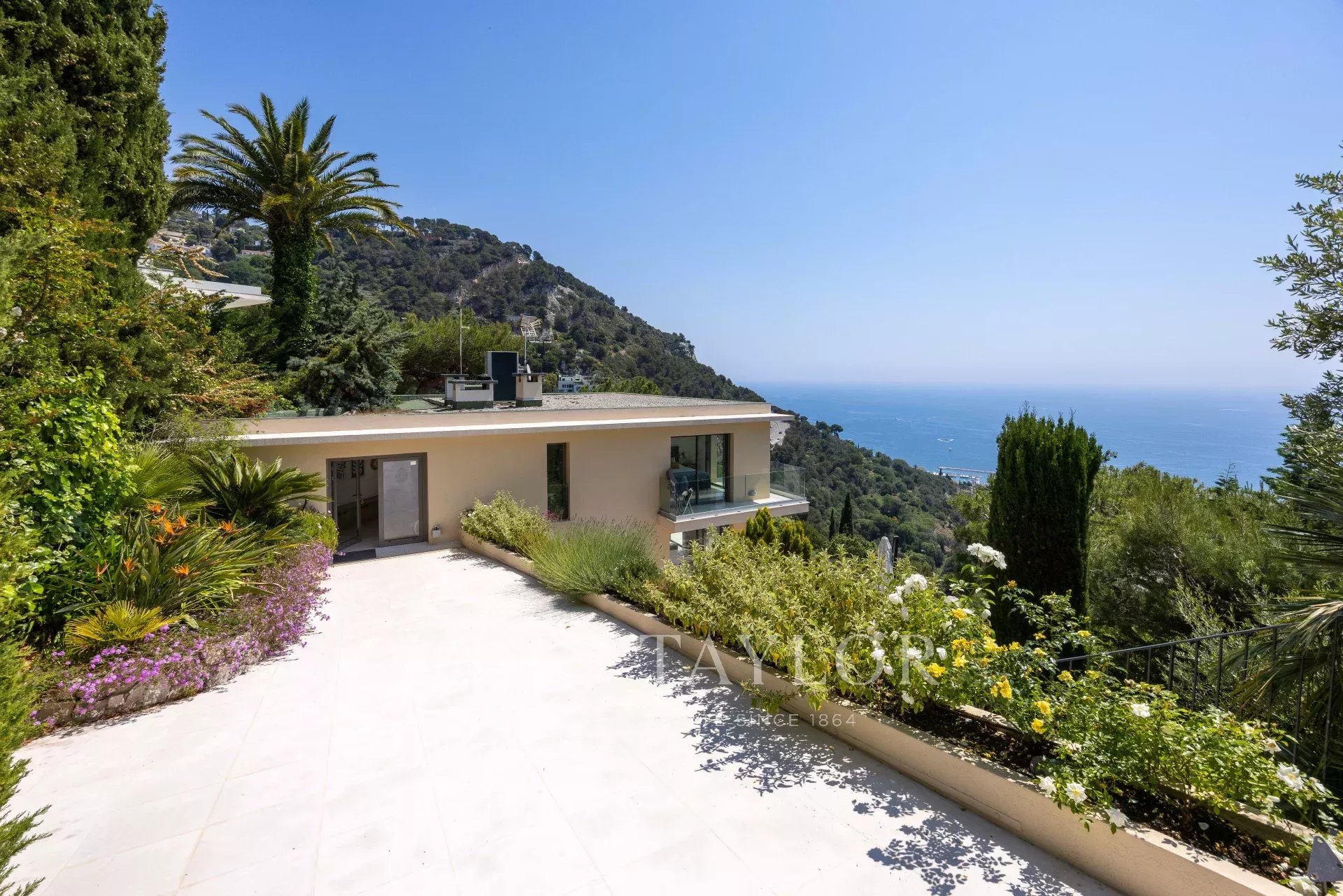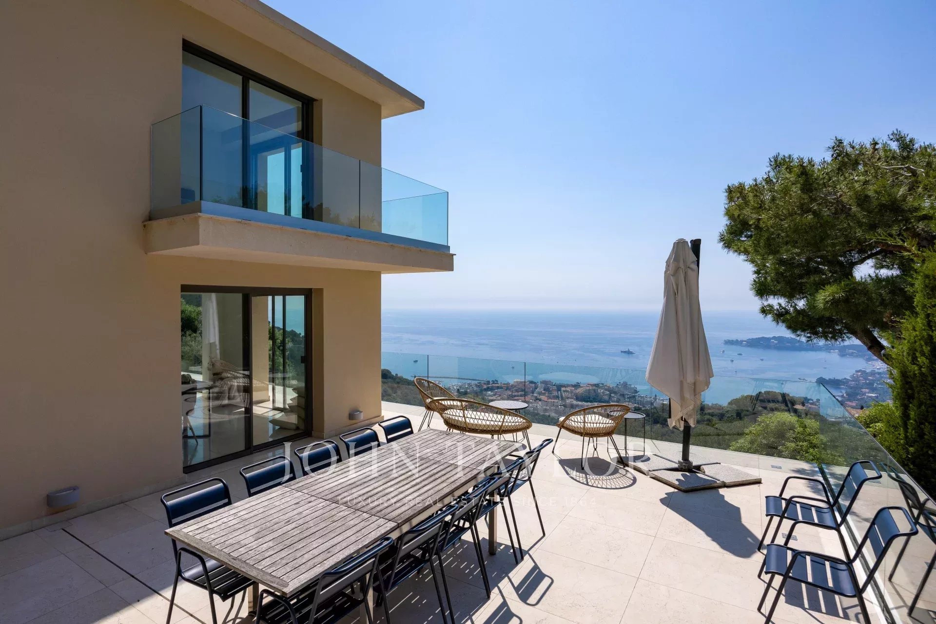 Vynikající moderní vila v kopcích nad Villefranche s nádherným výhledem na moře.