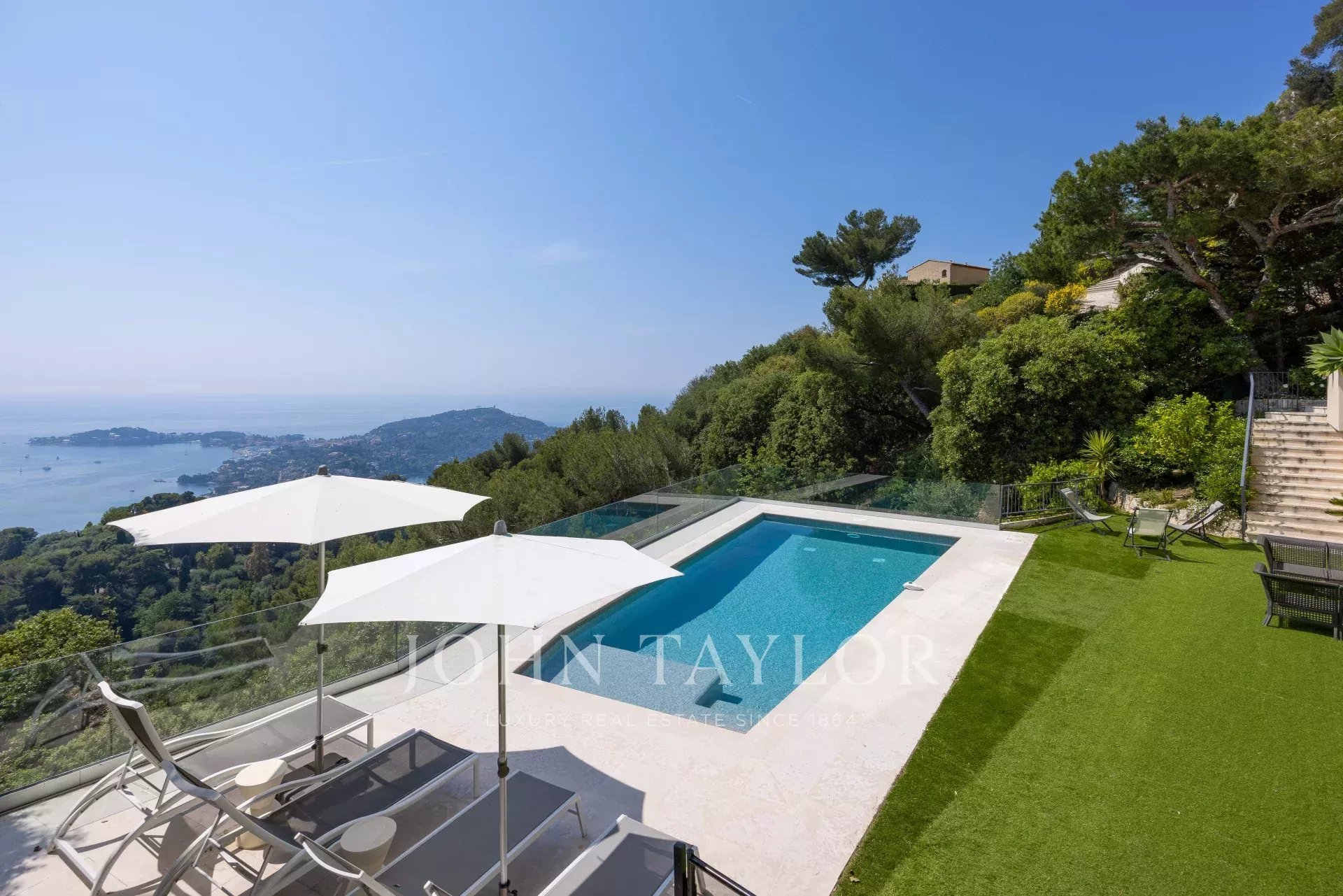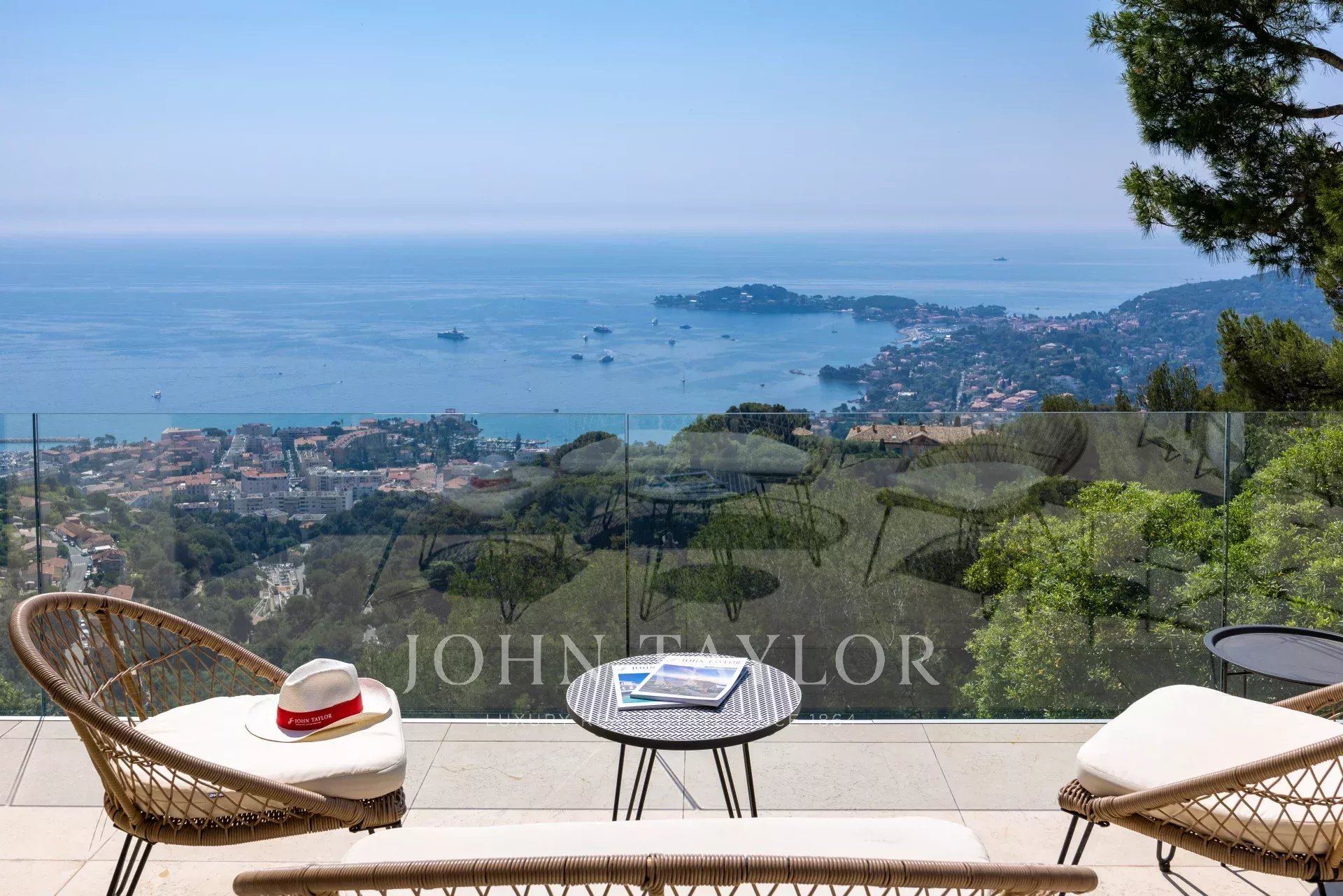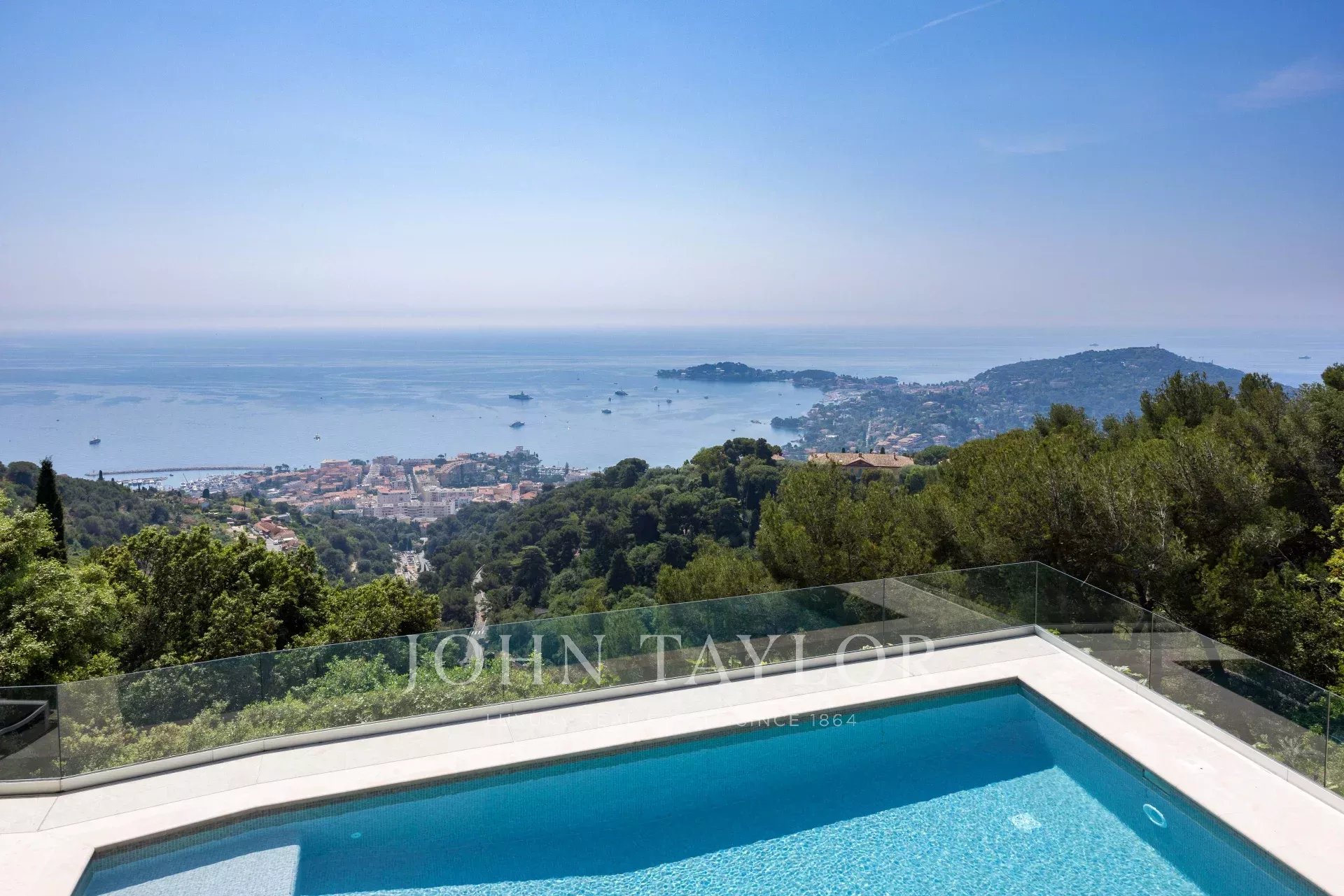 Vynikající moderní vila v kopcích nad Villefranche s nádherným výhledem na moře.