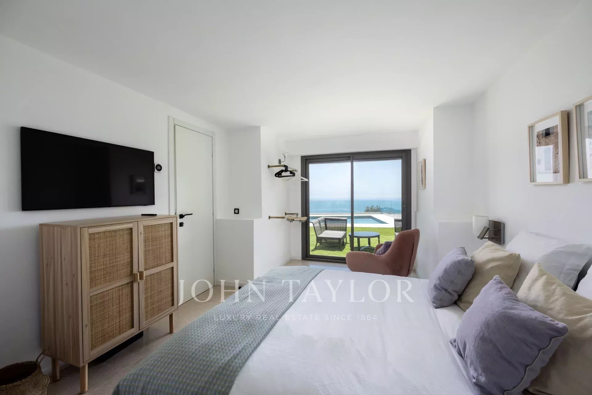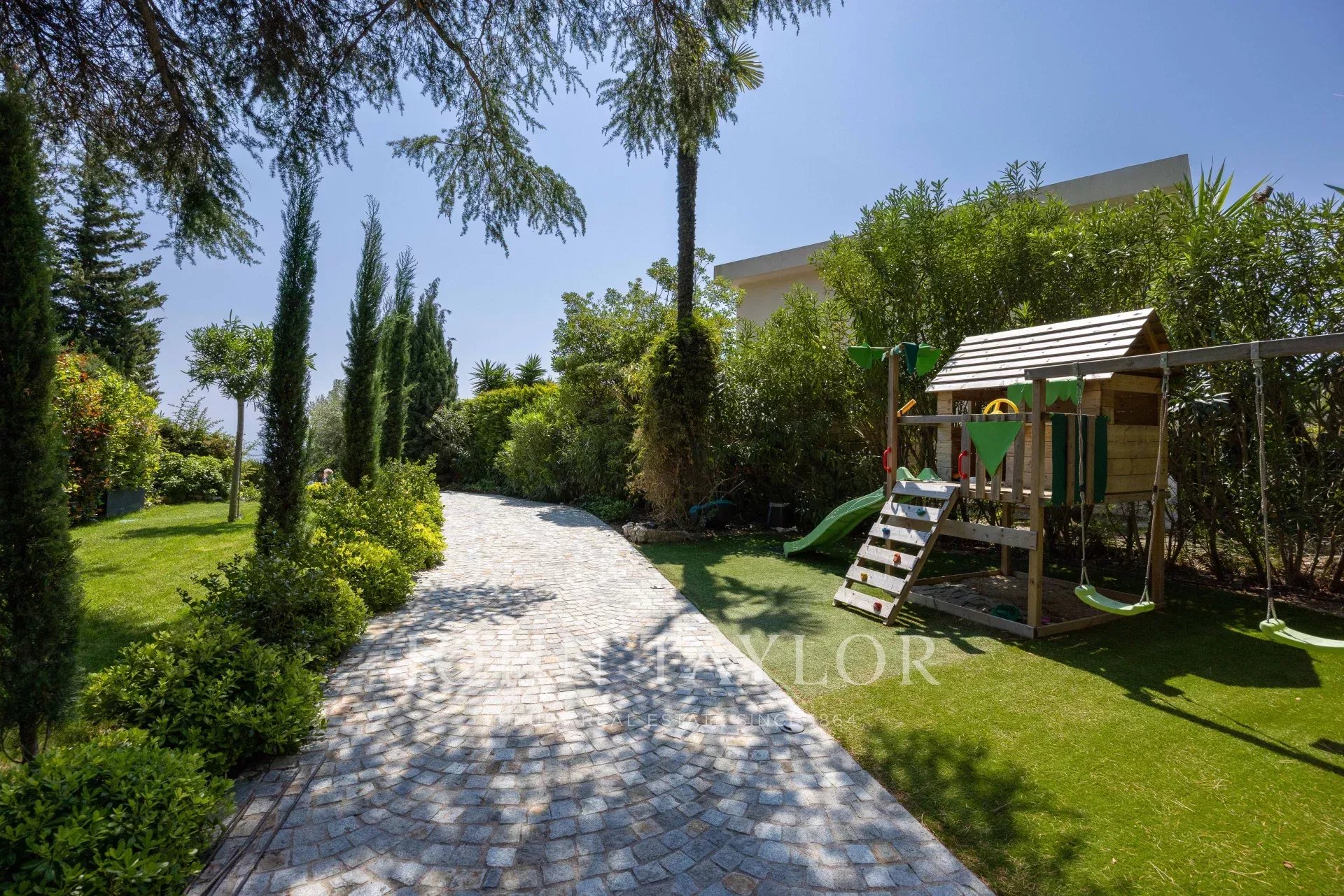 Vybavení: zahrada. Bazén (může být vyhřívaný). 2 uzavřená parkovací místa. Parkování pro 5 aut. Alarmový systém - internet - reverzibilní klimatizace - výtah do všech úrovní vily.