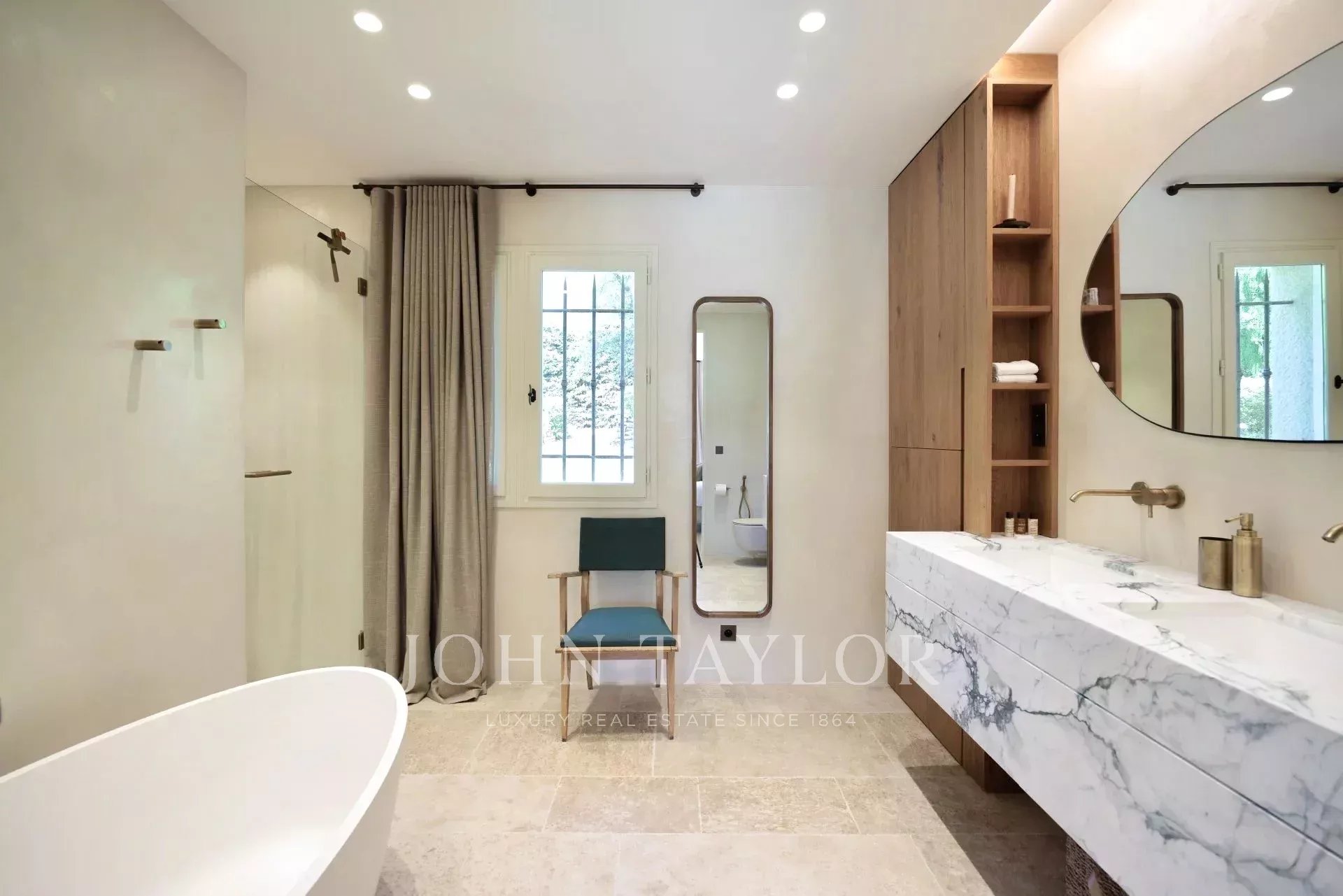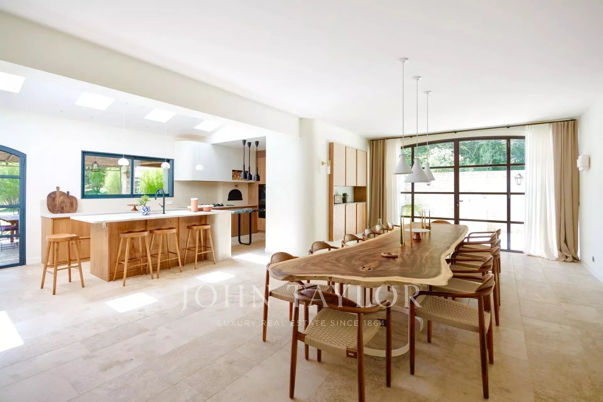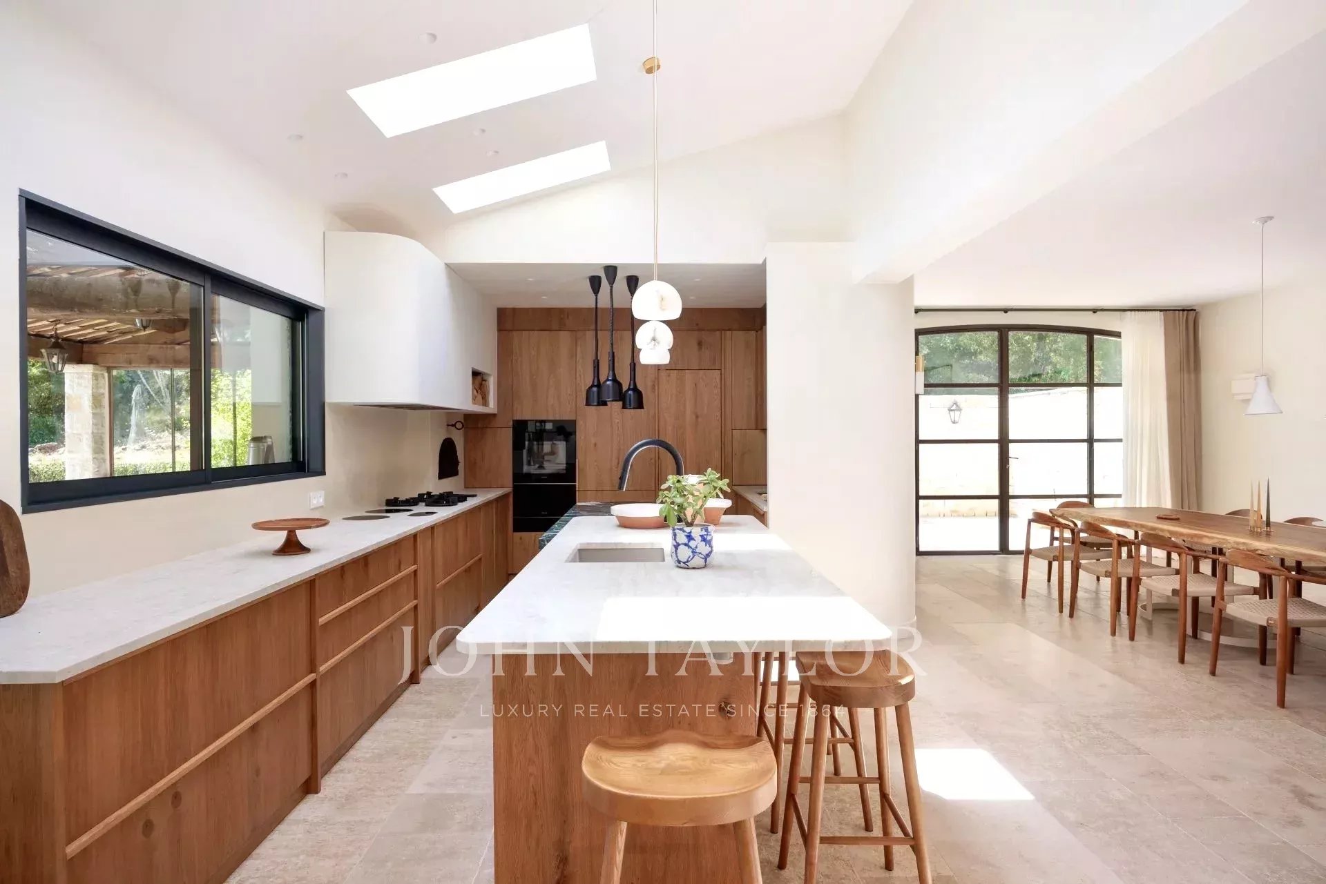 Dům vás okamžitě osloví svým vytříbeným, vřelým interiérem. Každý pokoj byl pečlivě promyšlen a kombinuje harmonické barvy, vkusně vybraný nábytek a ušlechtilé materiály. Přírodní kámen, kvalitní dřevo, jemné tkaniny: vše zde vyzařuje pohodlí a rafinovanost.