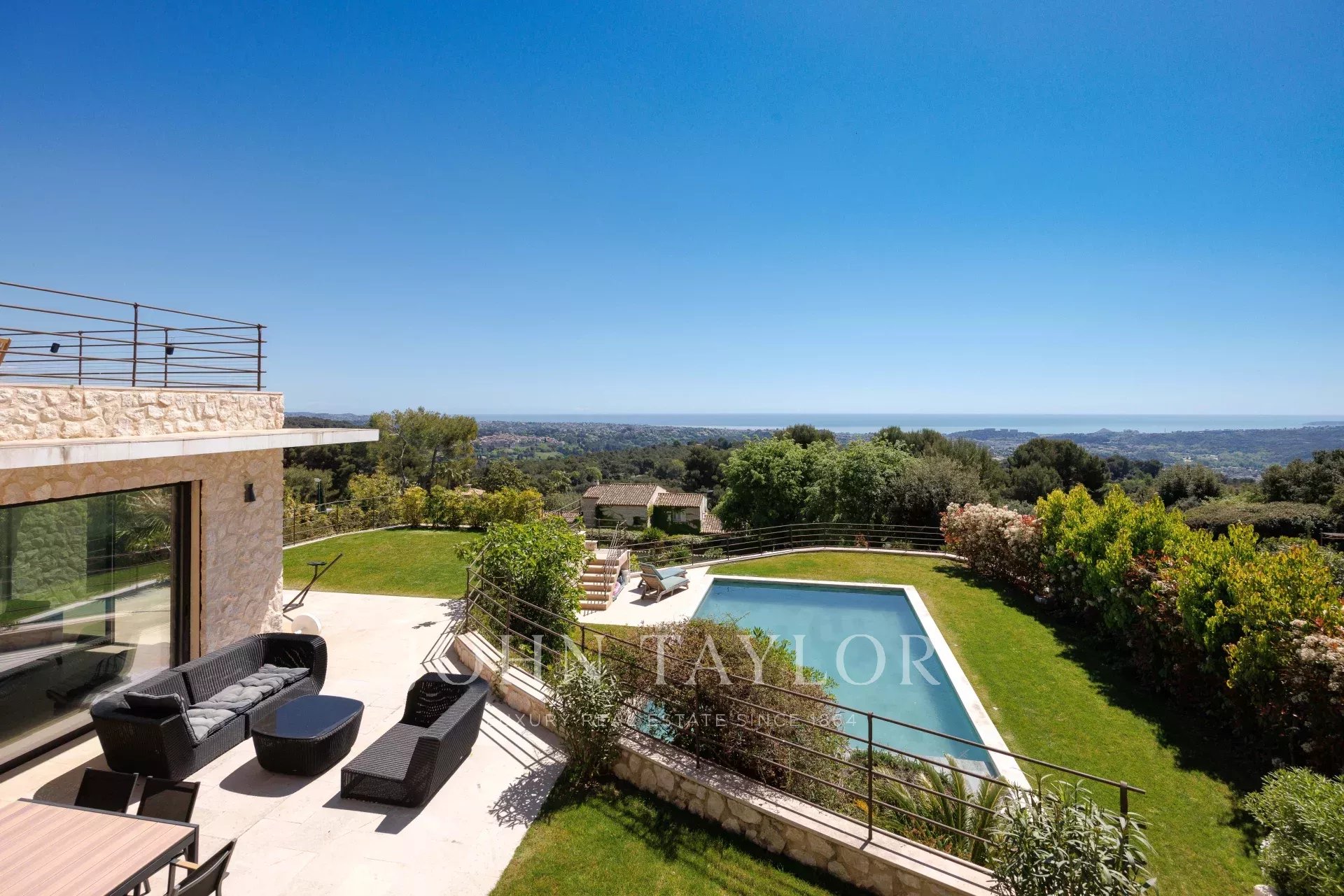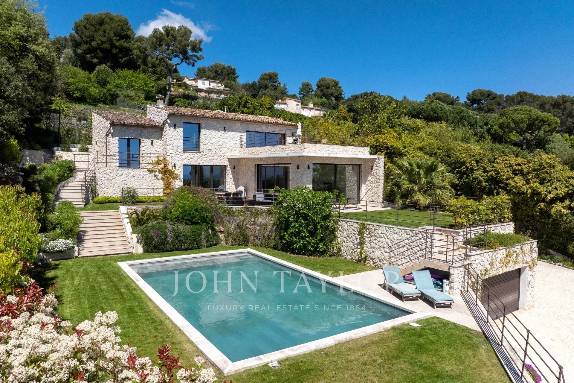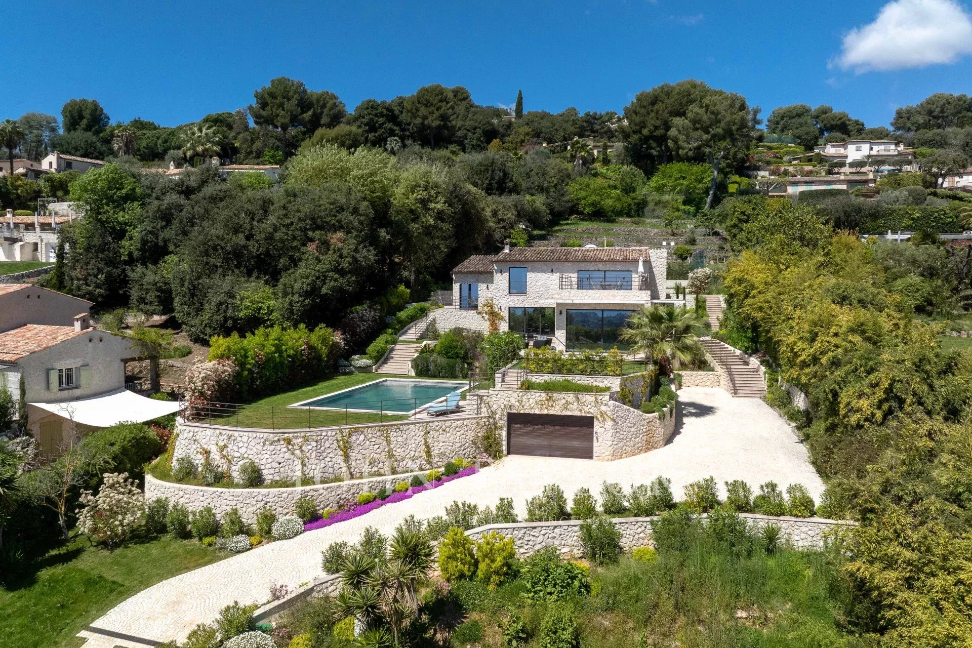 Tato vynikající kamenná vila o rozloze 260 m² se nachází v jedné z nejprestižnějších částí Saint-Paul de Vence na 2 180 m² upraveného pozemku s bazénem a tenisovým kurtem. Pyšní se úchvatným panoramatickým výhledem na moře a Francouzskou riviéru a nabízí výjimečné životní prostředí, které v sobě spojuje eleganci a klid.