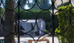 Na druhé straně domu, v druhé části zahrady, která nabízí zcela jiný pocit, více nedotčenou a ošetřovanou jako provensálská zahrada, se nachází společenská letní kuchyně/jídelna (s klavírem Lecornue).