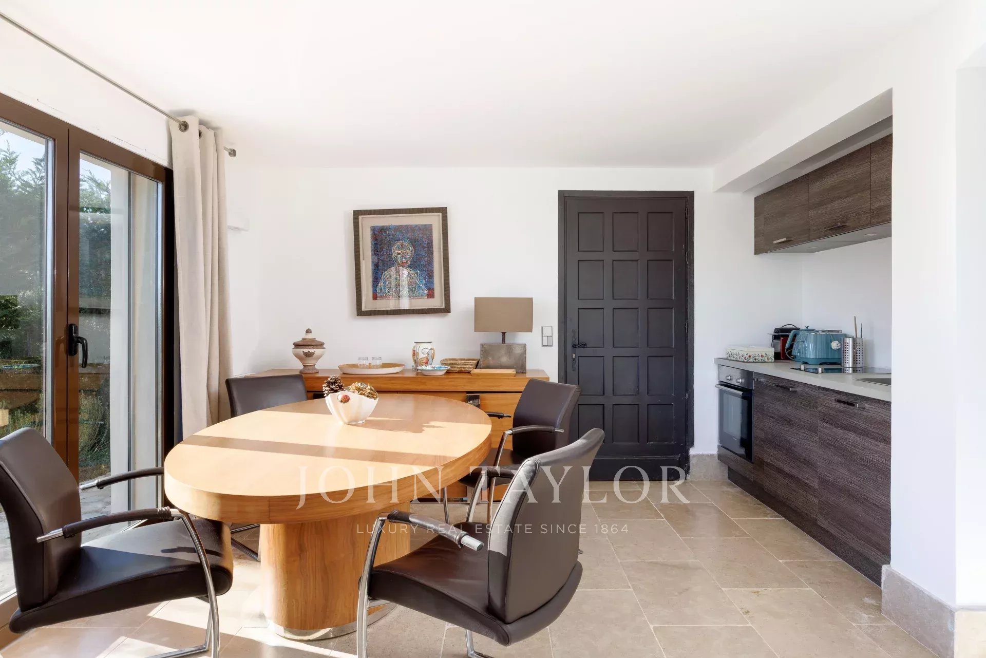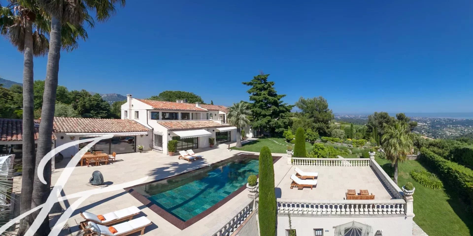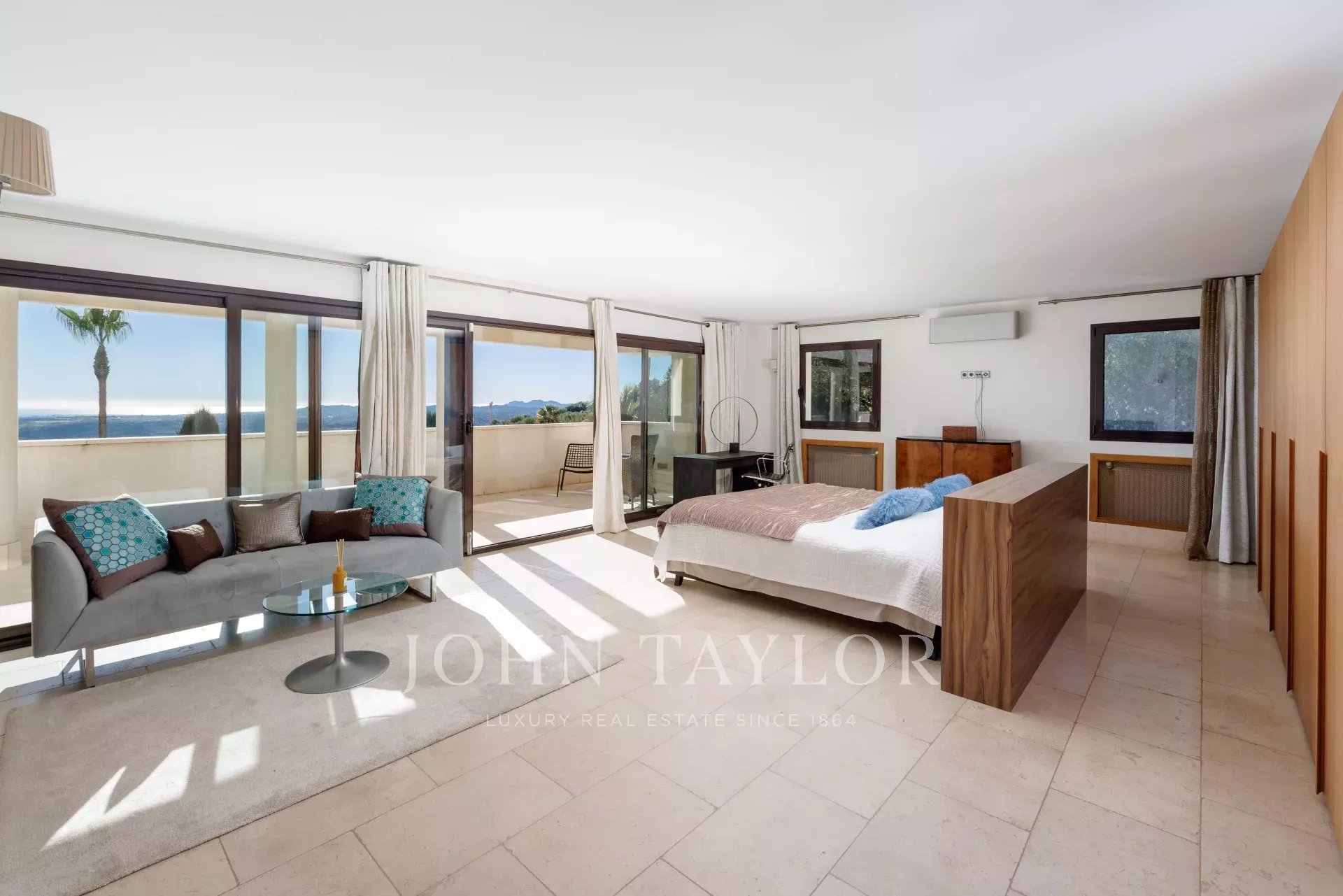 Tato honosná moderní vila se nachází na dominantním místě v srdci prestižního a bezpečného sídla Hauts de Saint-Paul a nabízí nádherný výhled na Středozemní moře.