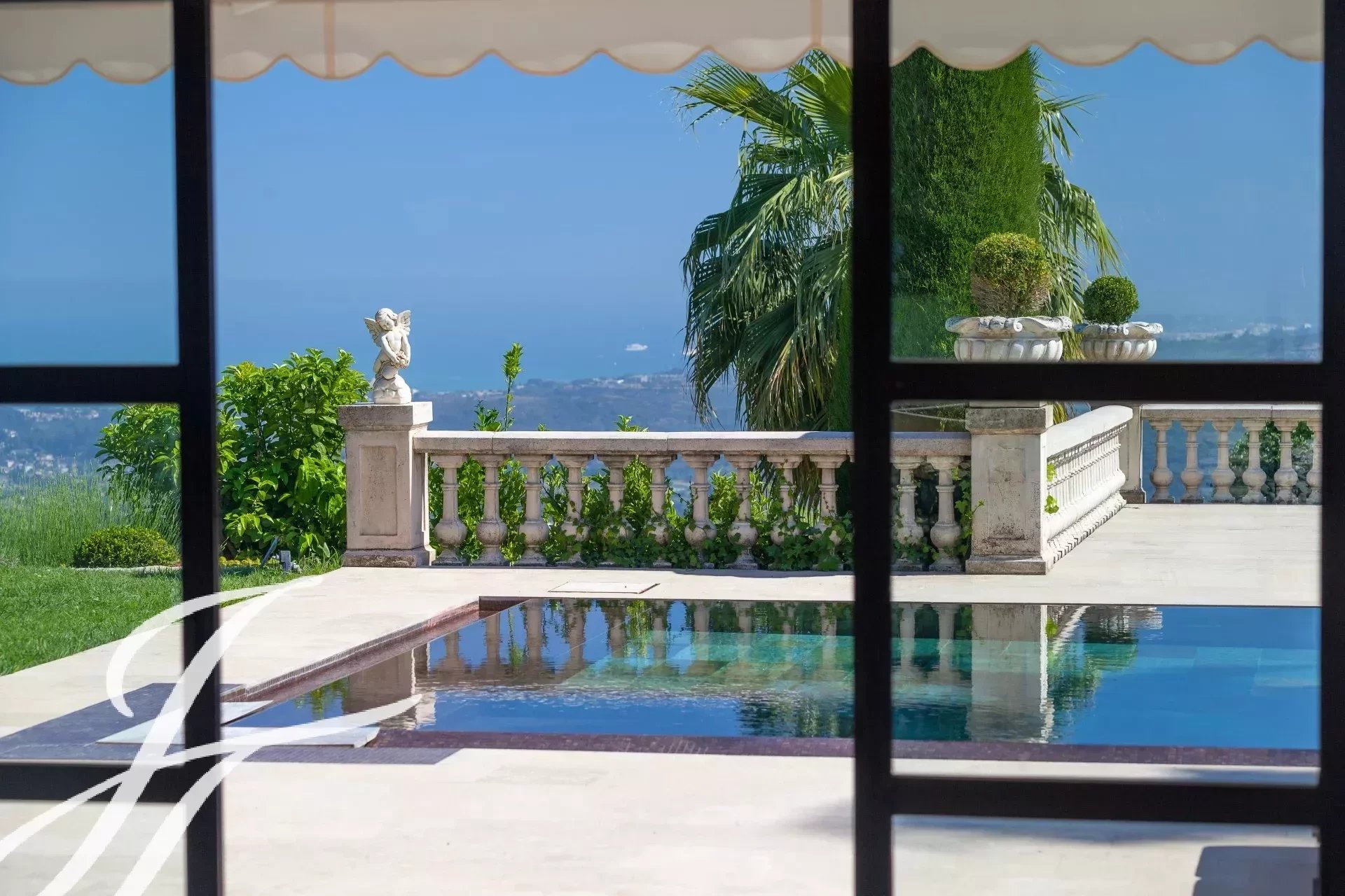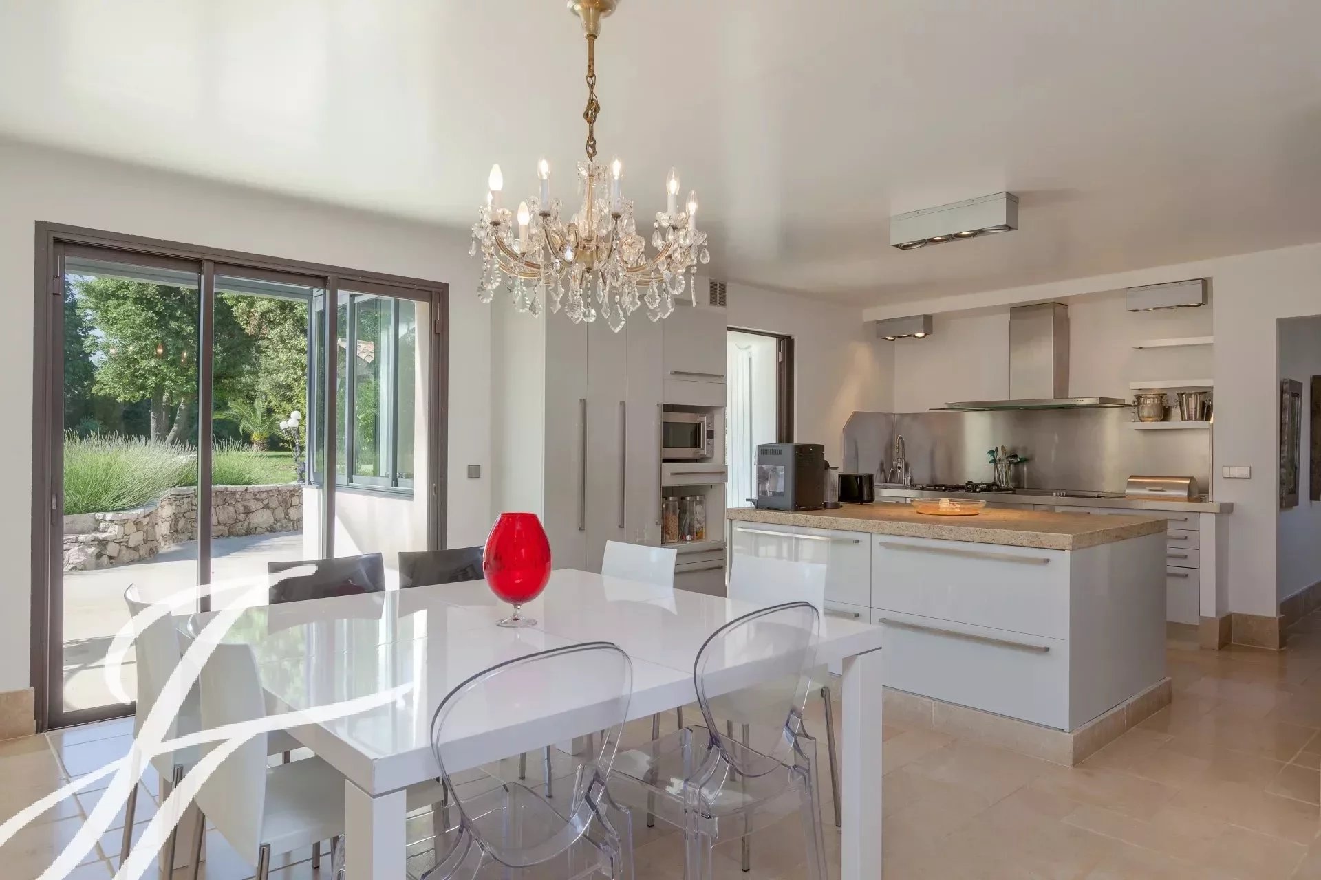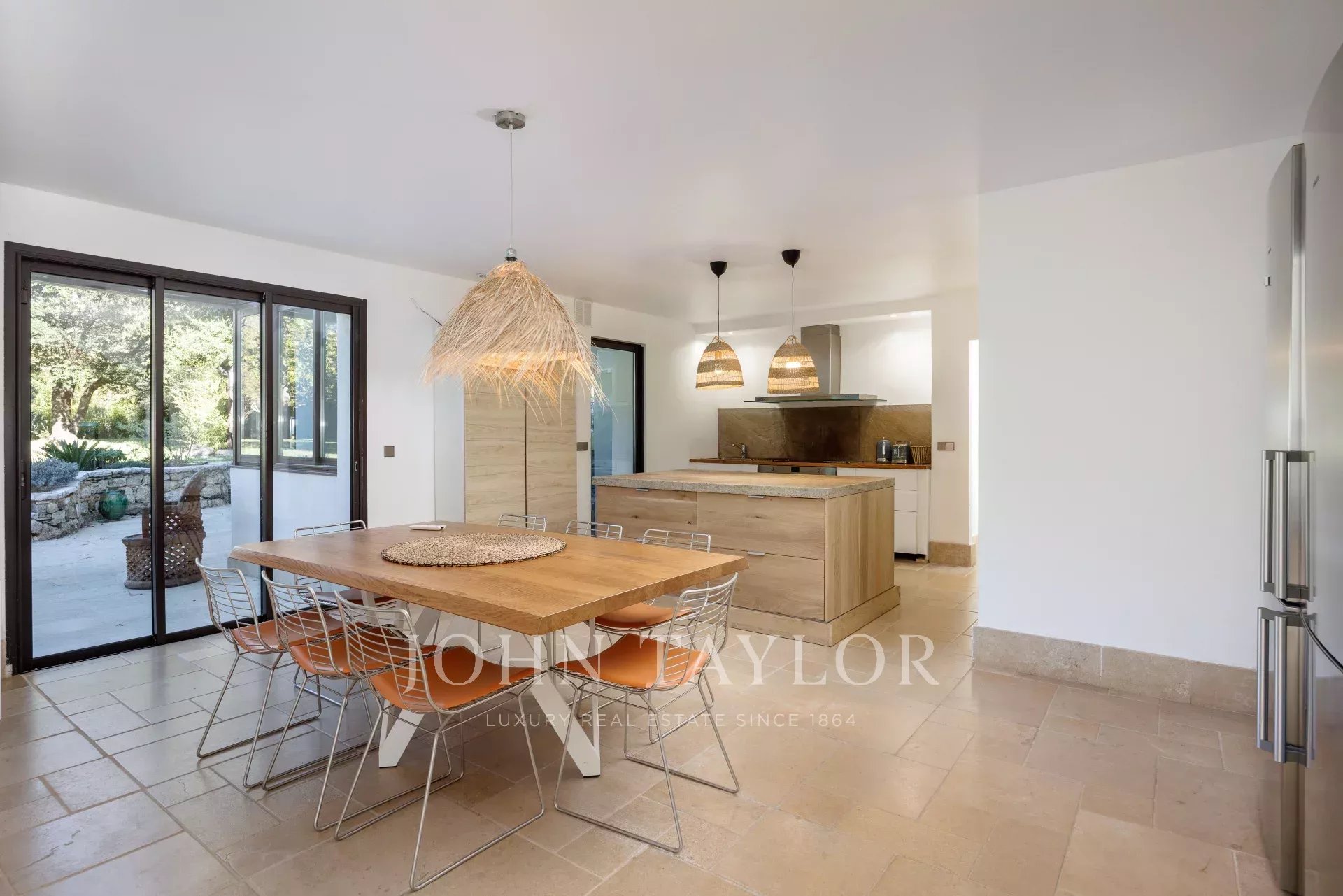 Tato honosná moderní vila se nachází na dominantním místě v srdci prestižního a bezpečného sídla Hauts de Saint-Paul a nabízí nádherný výhled na Středozemní moře.