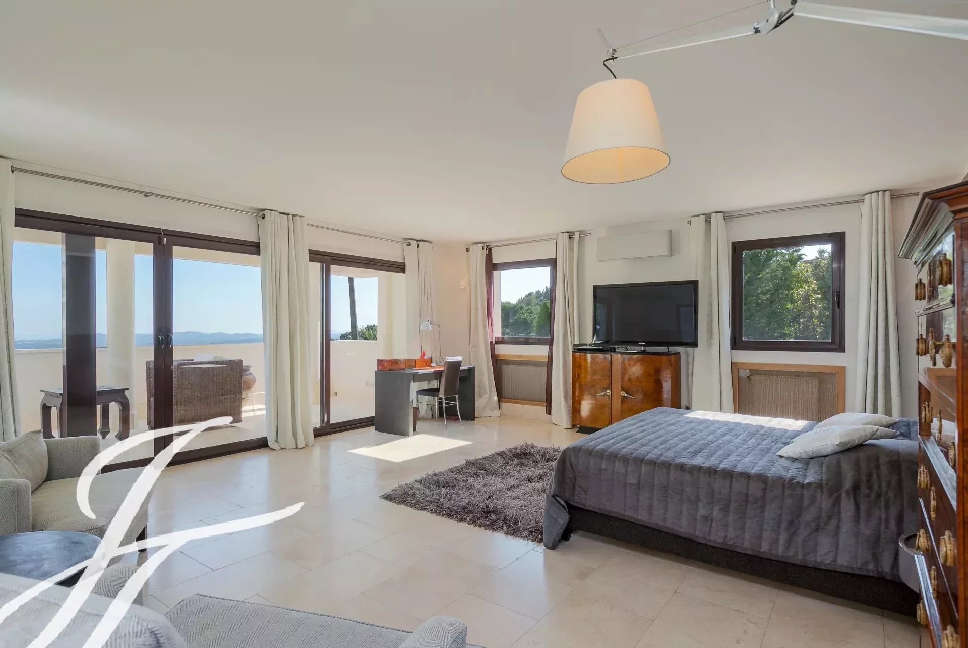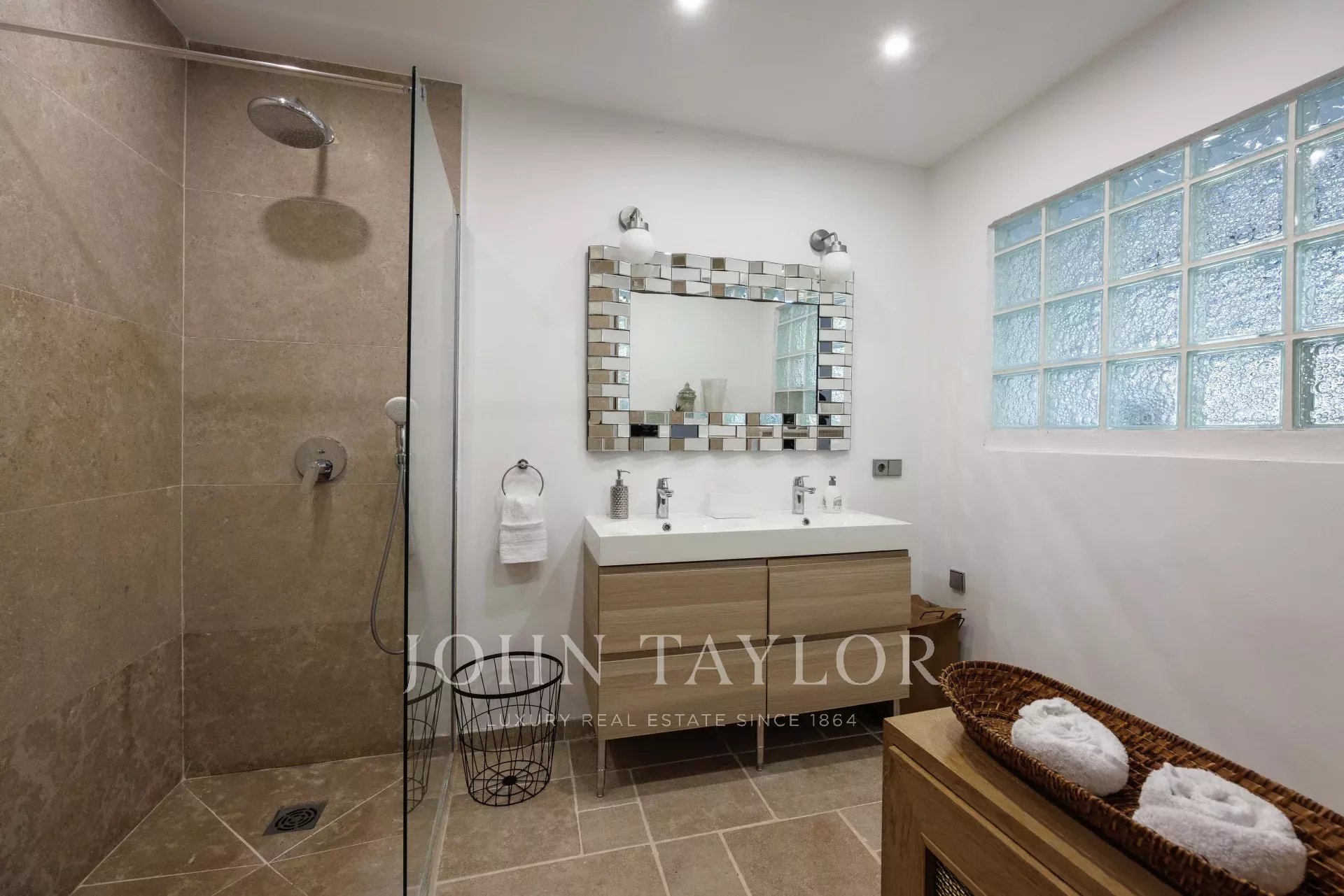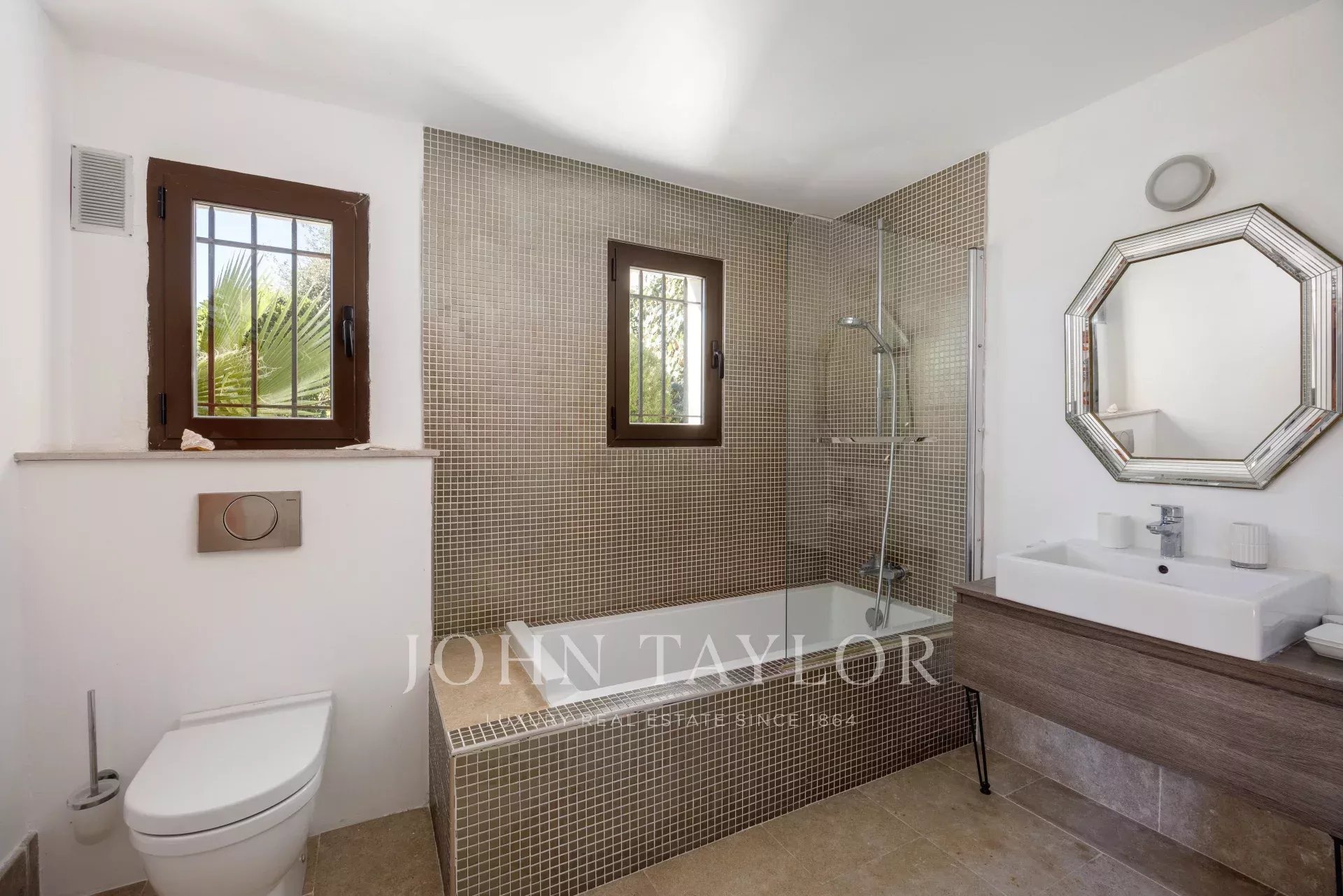 V patře se dvě ložnice, každá s vlastní sprchou, dělí o obrovskou terasu s výhledem na moře, včetně vynikajícího hlavního apartmá se sprchou, vanou a výjimečným panoramatickým výhledem.