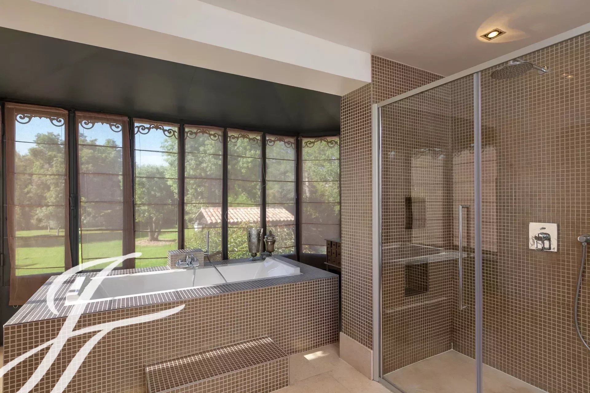 Díky své poloze na jih je tato nemovitost zalitá světlem a pyšní se 460 m² moderní elegance zasazenými do rovinatého, upraveného pozemku o rozloze 3 500 m².