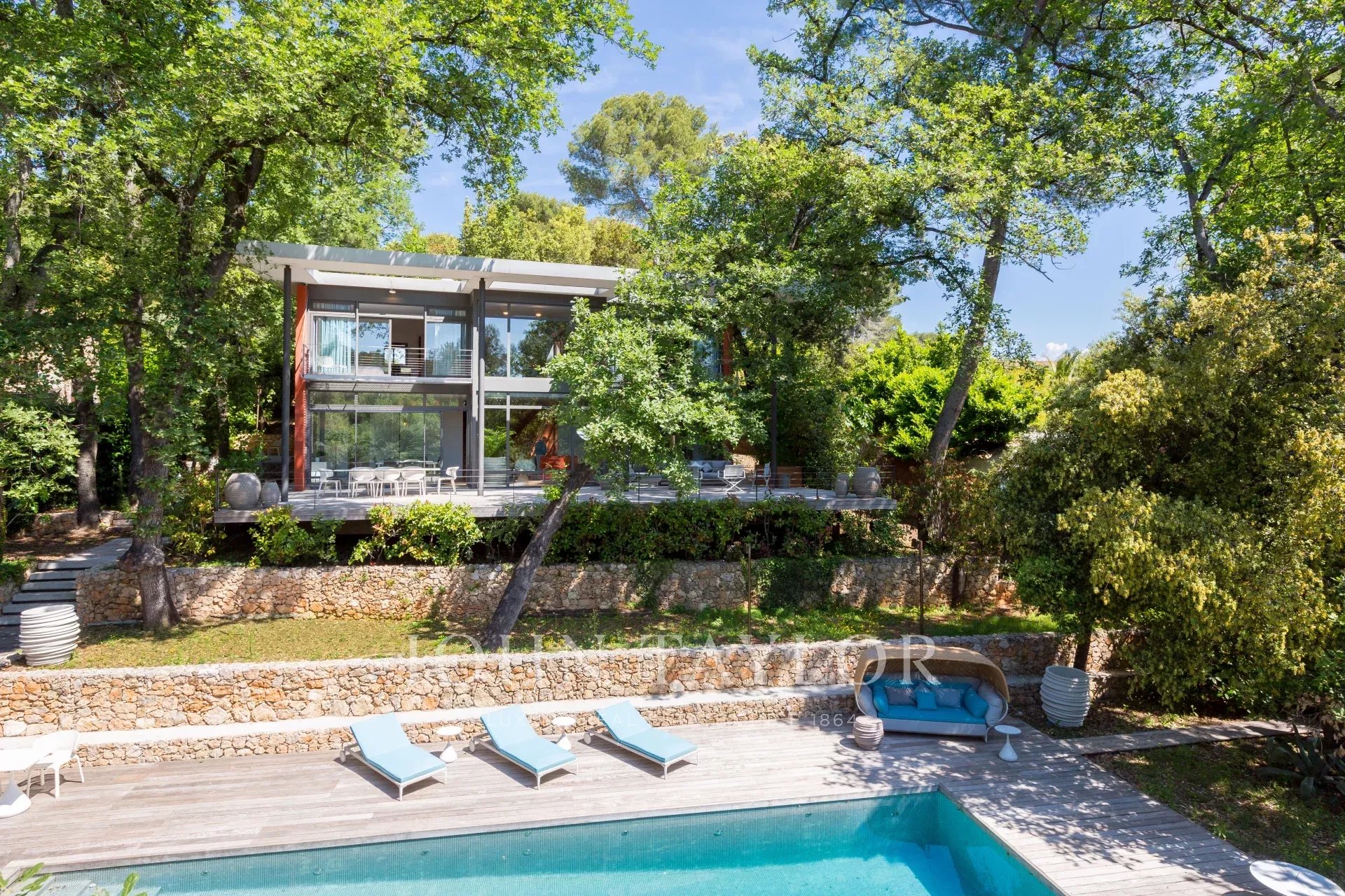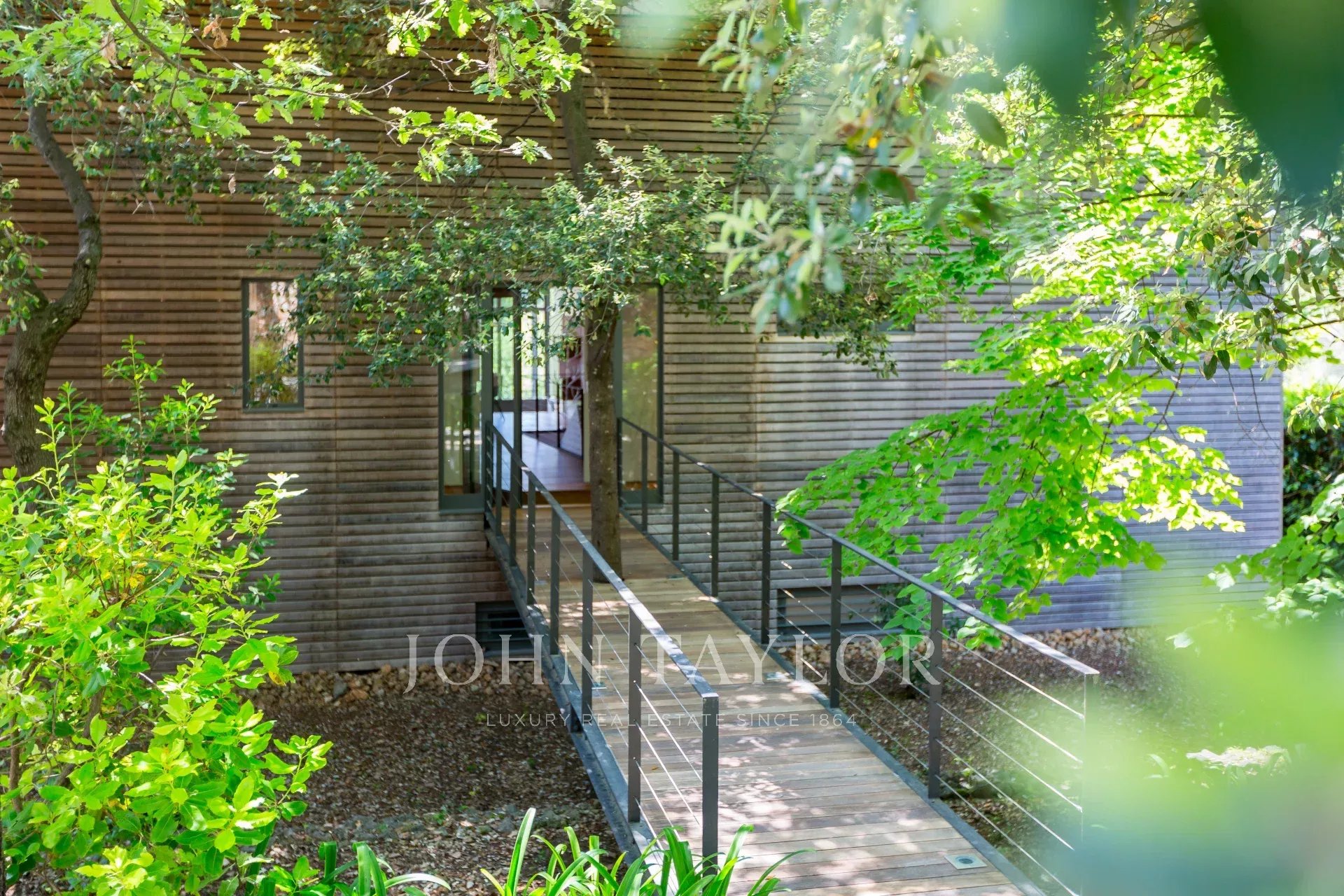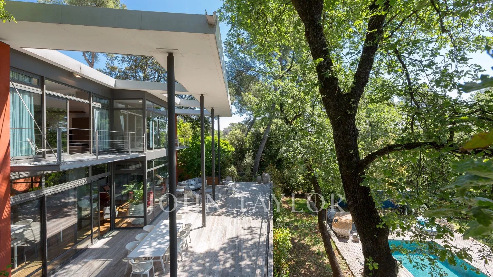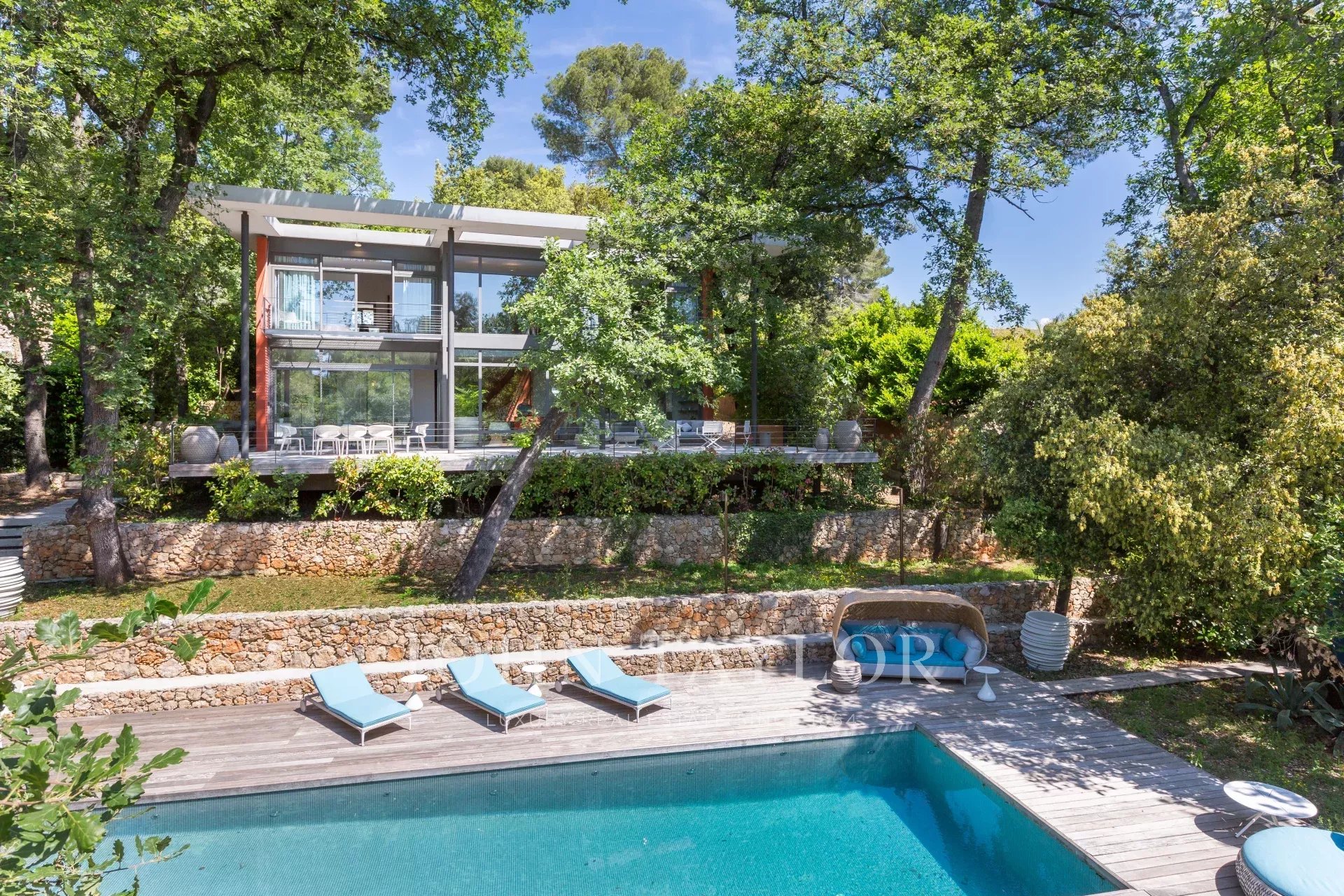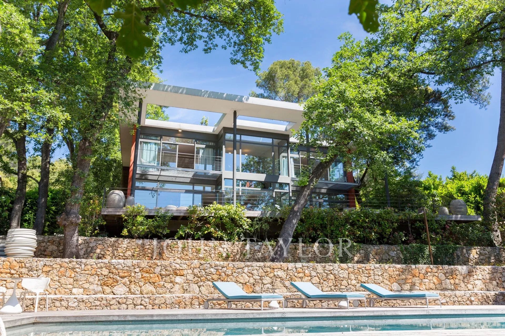 Tento moderní objekt o rozloze 350 m² se nachází v zalesněném areálu s nádhernými duby a borovicemi, jen několik metrů od nadace Fondation Maeght. Tato vila, kterou v roce 2002 navrhl italský architekt Antonino Cascio, je vzorem moderní architektury, zejména pro své inovativní bioklimatické prvky.