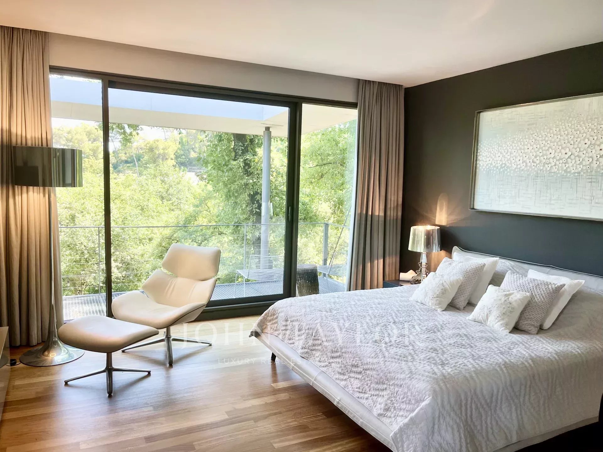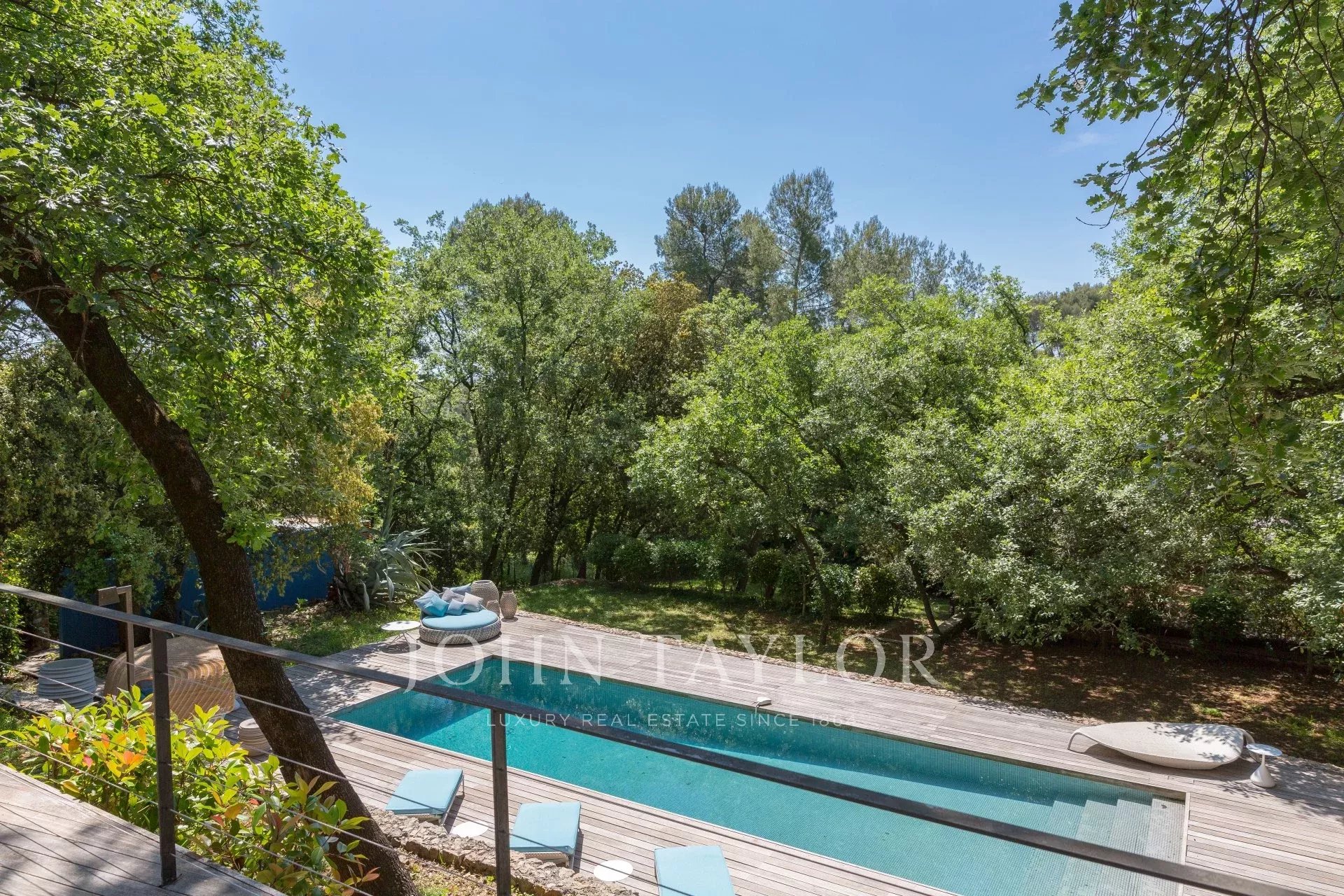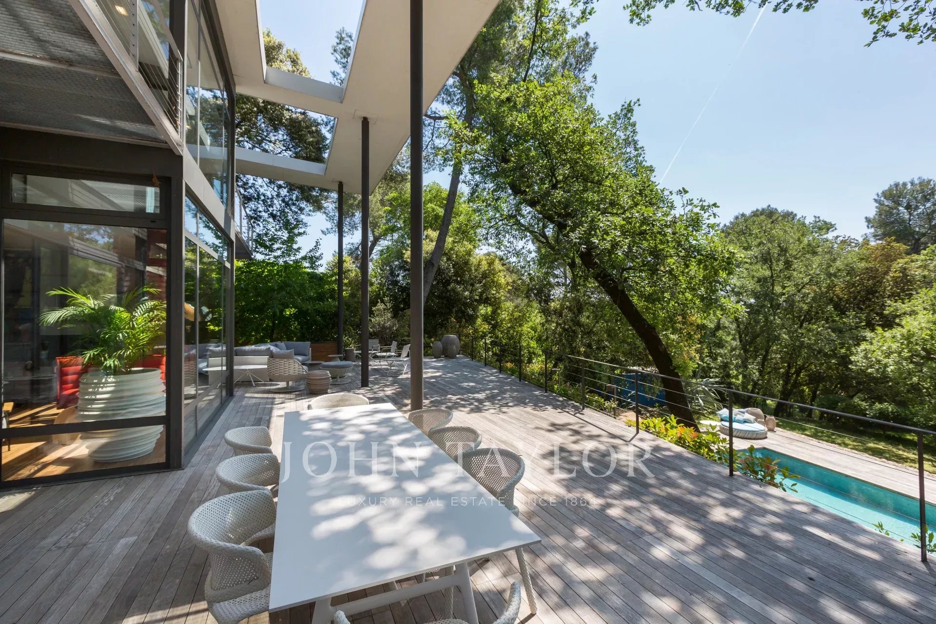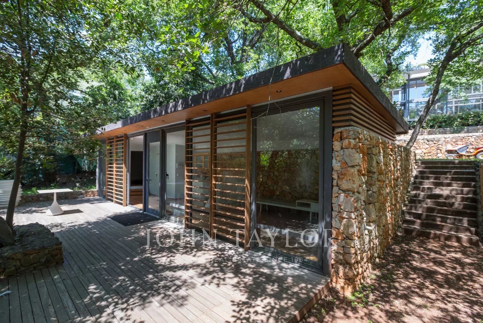 Tento moderní objekt o rozloze 350 m² se nachází v zalesněném areálu s nádhernými duby a borovicemi, jen několik metrů od nadace Fondation Maeght. Tato vila, kterou v roce 2002 navrhl italský architekt Antonino Cascio, je vzorem moderní architektury, zejména pro své inovativní bioklimatické prvky.