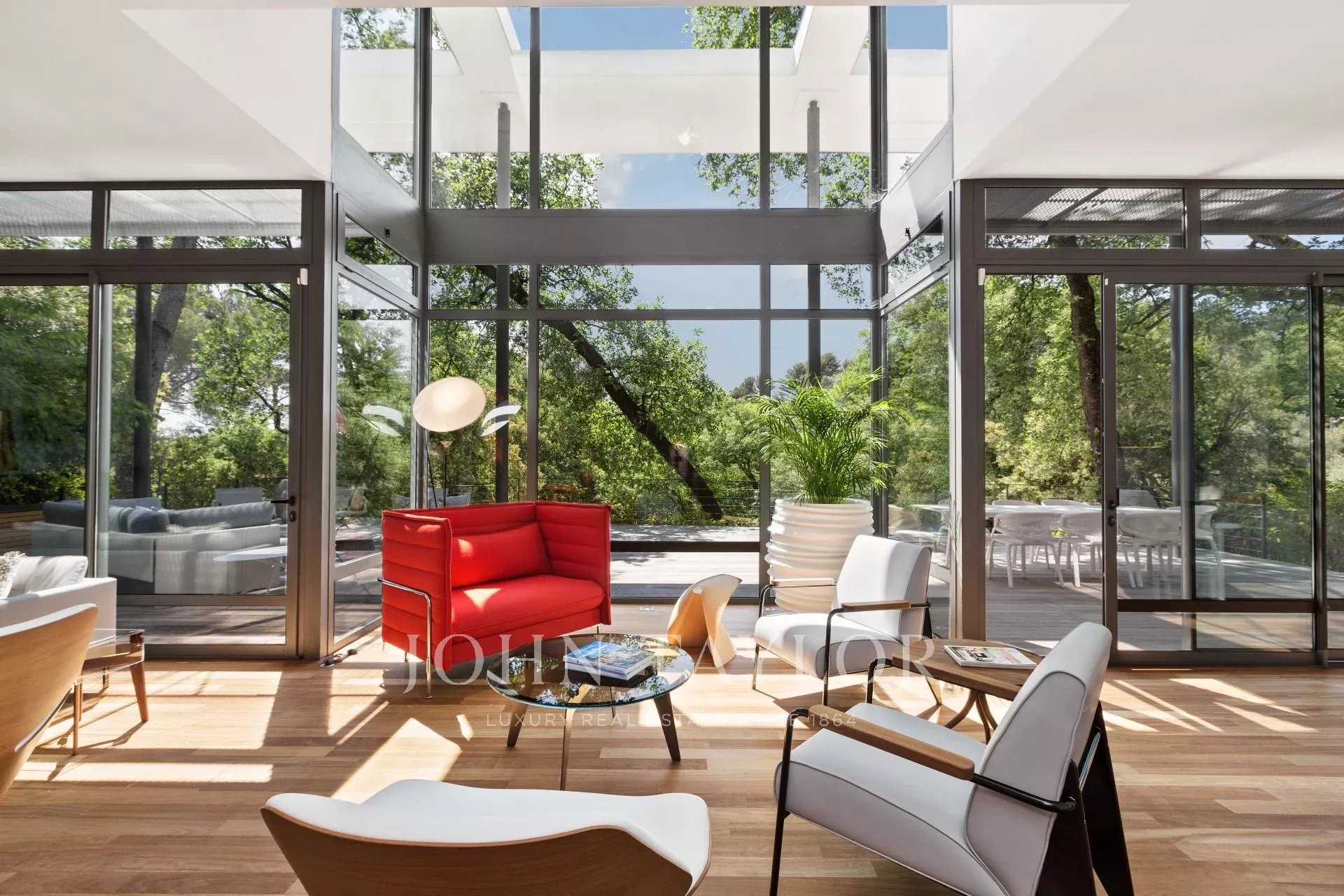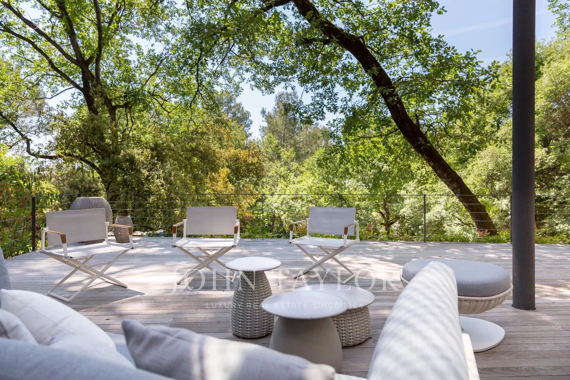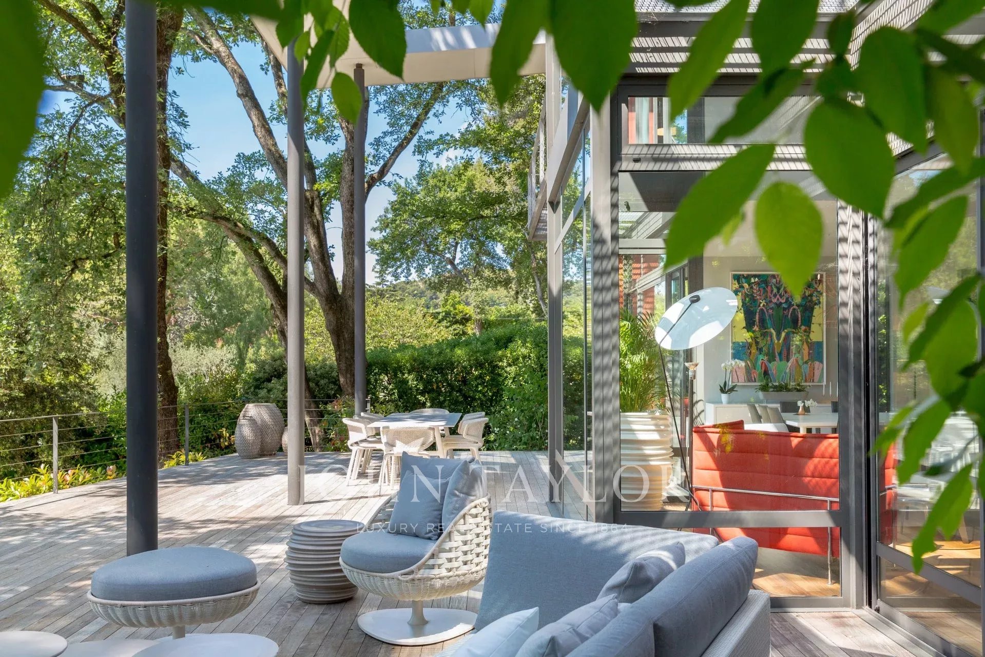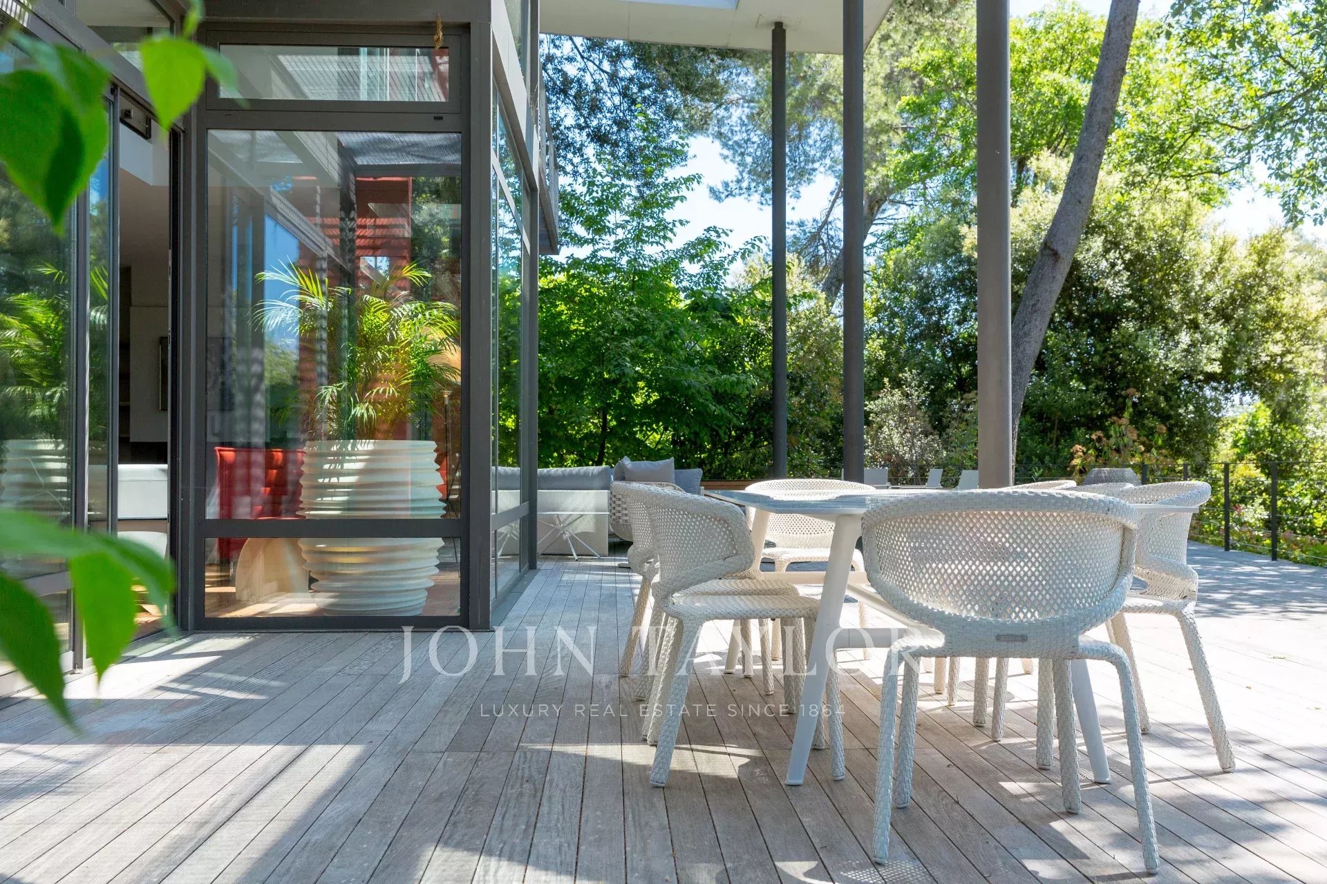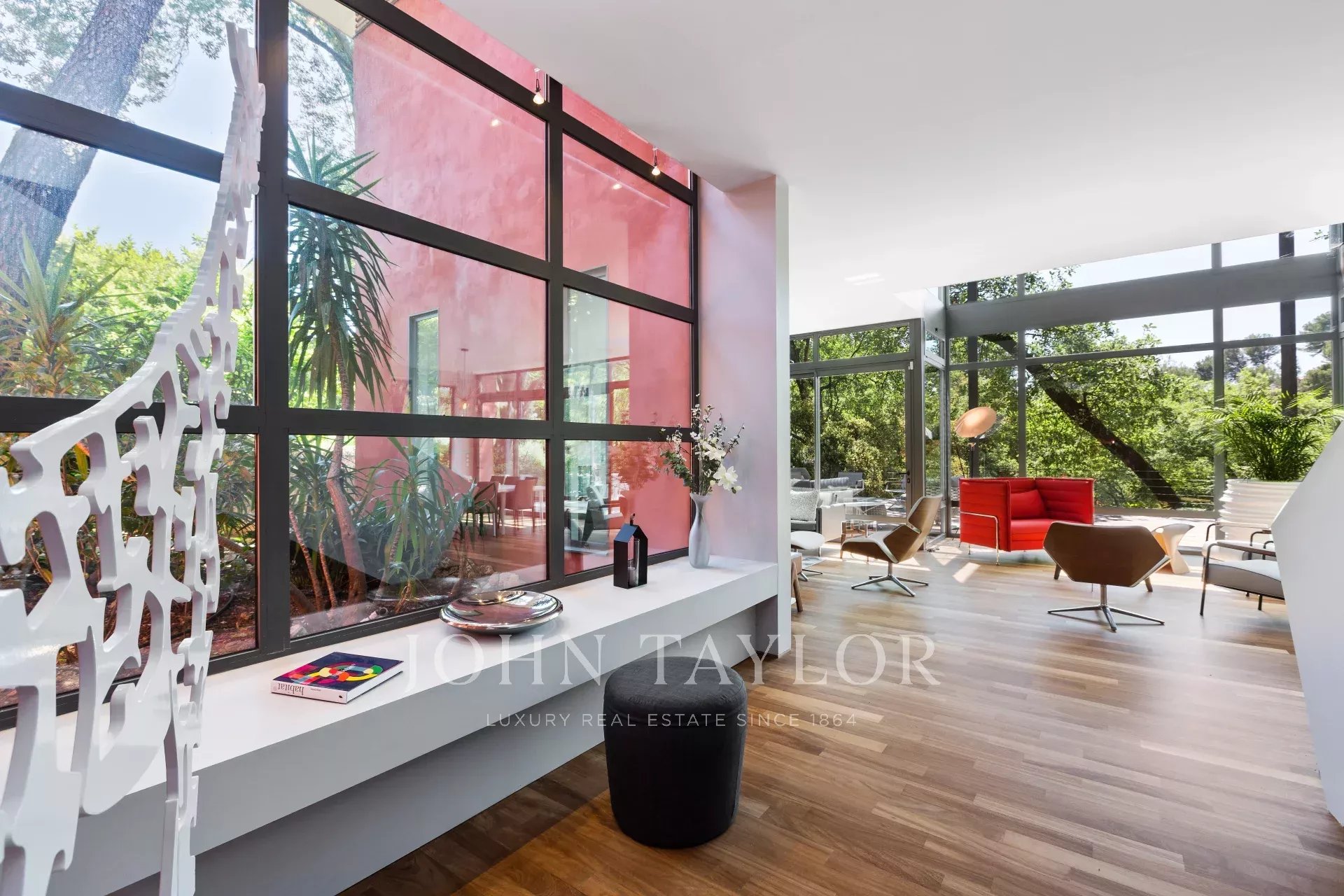 Tento moderní objekt o rozloze 350 m² se nachází v zalesněném areálu s nádhernými duby a borovicemi, jen několik metrů od nadace Fondation Maeght. Tato vila, kterou v roce 2002 navrhl italský architekt Antonino Cascio, je vzorem moderní architektury, zejména pro své inovativní bioklimatické prvky.